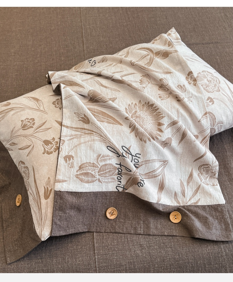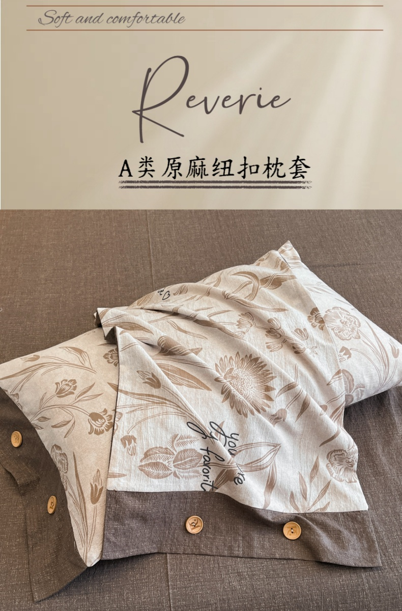 商品名称:梦舒羽 2025新款原麻纽扣枕套宿舍单只枕芯套枕头套一对装枕芯内胆套 向阳花开