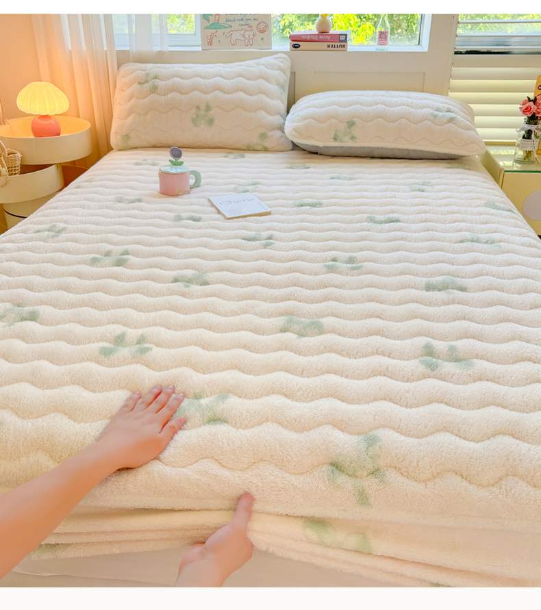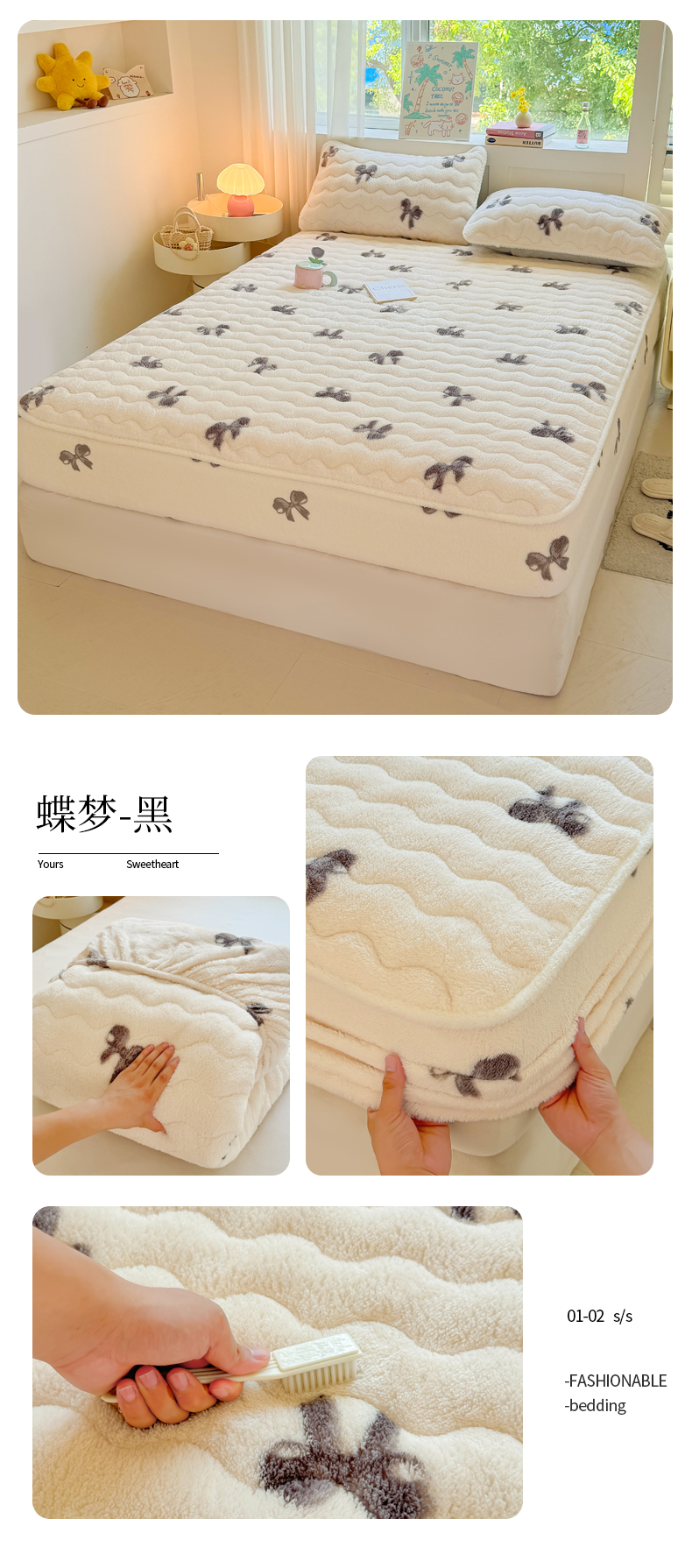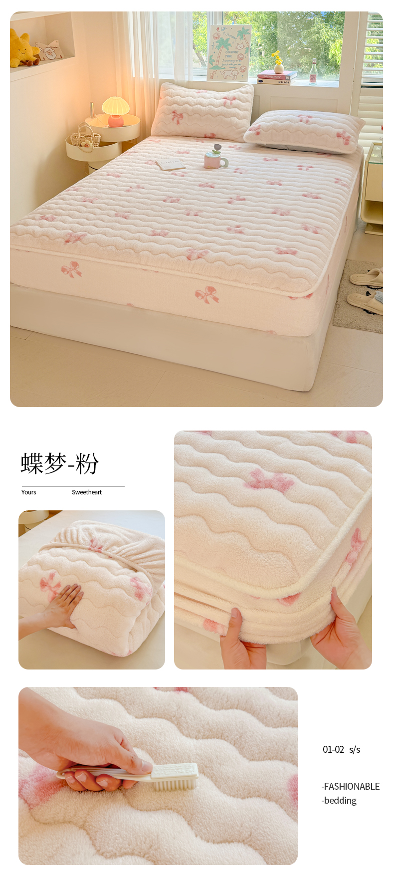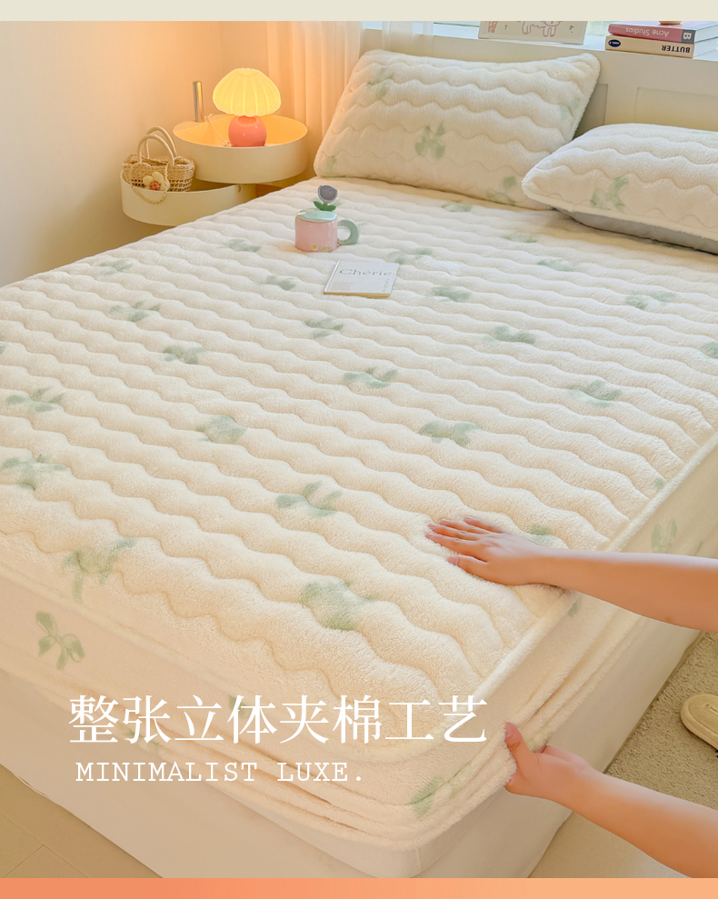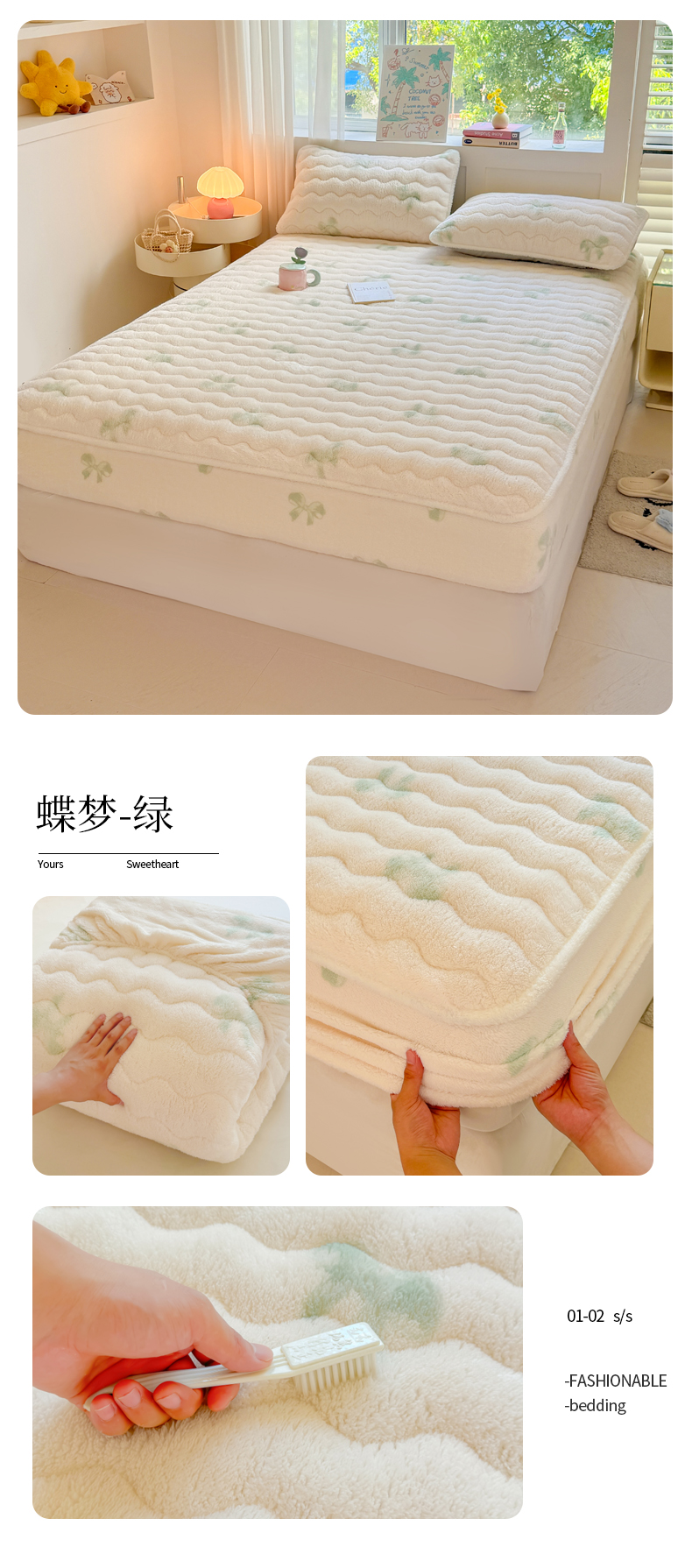 • 91家纺网 家纺一手货源 找家纺 LIFE.丽芙 2025秋冬新款北极绒加厚夹棉单床笠款床垫子保护套牛奶绒保暖床罩子三件套 蝶梦-绿