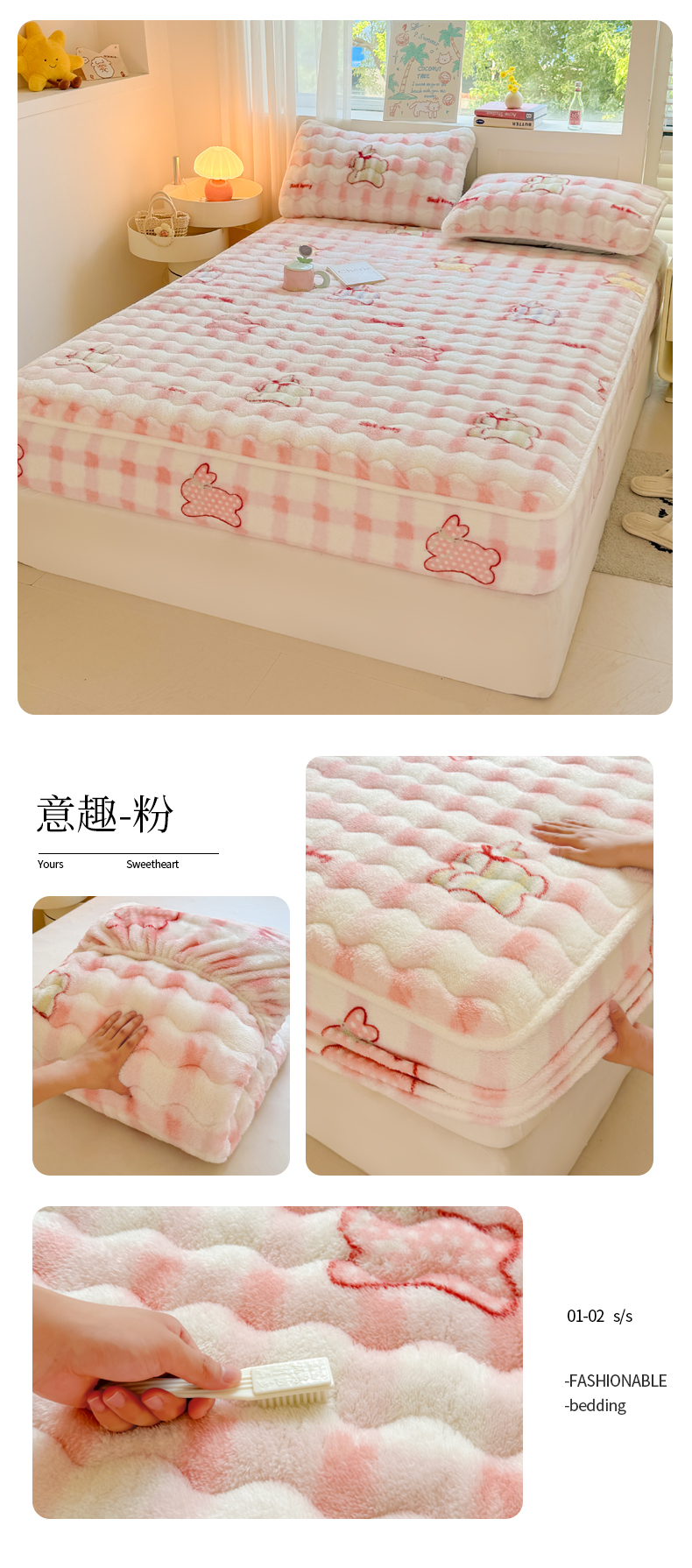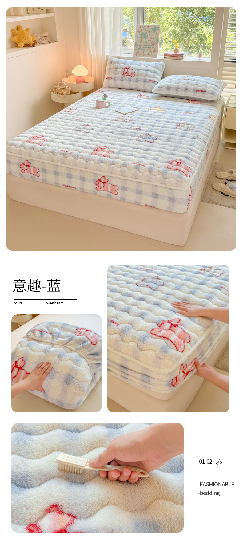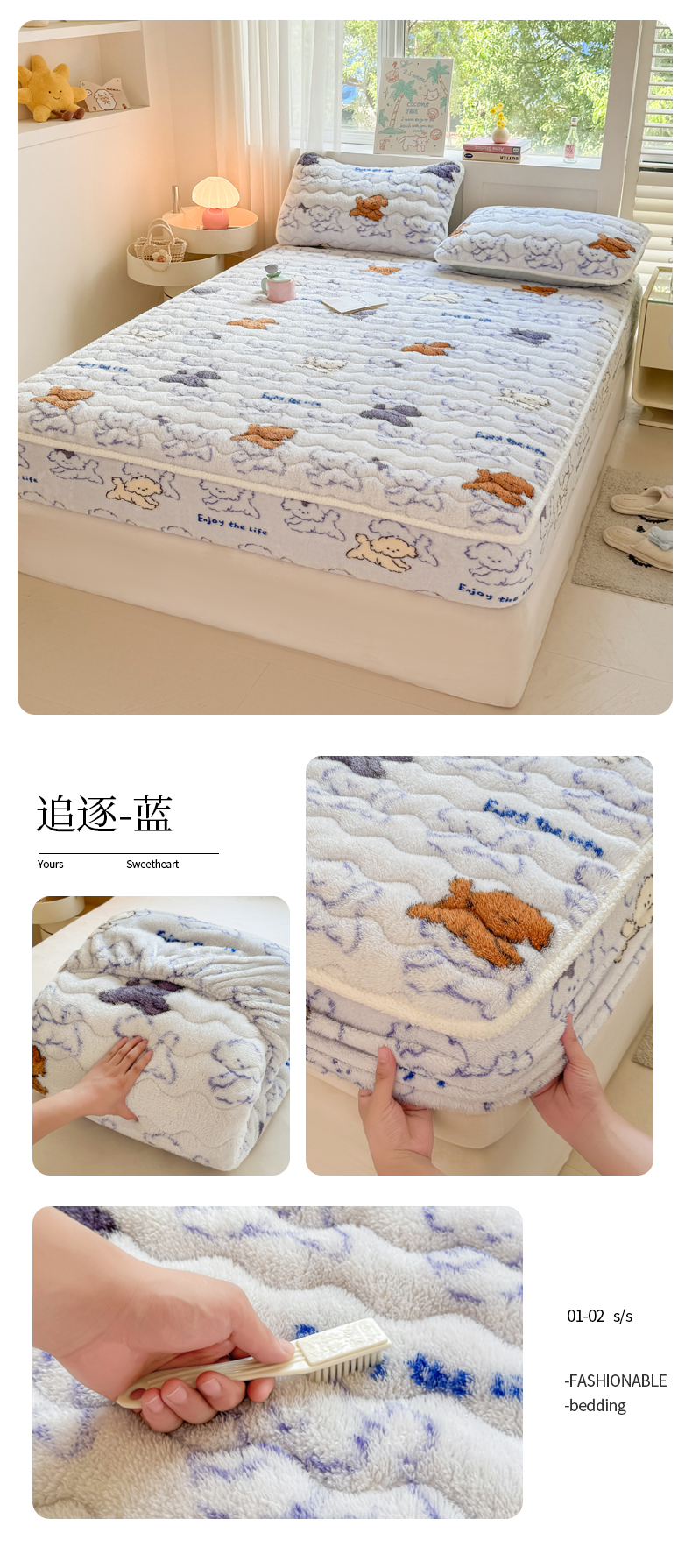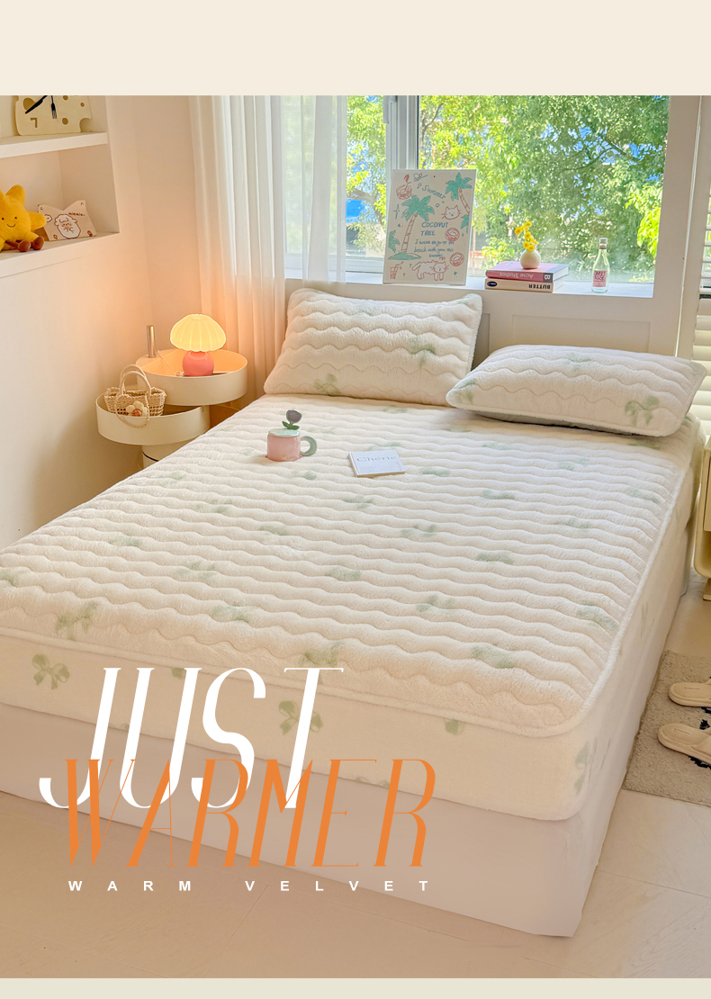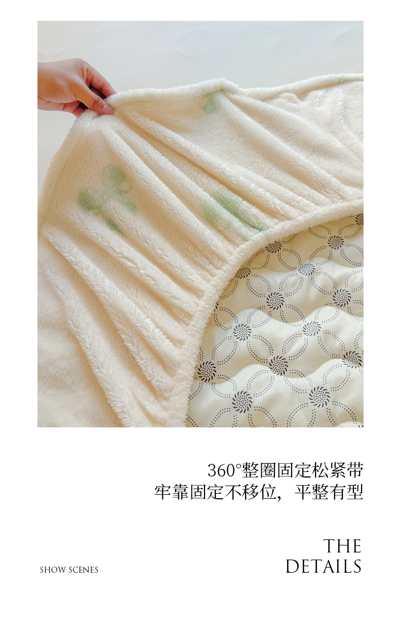 • 91家纺网 家纺一手货源 找家纺 LIFE.丽芙 2025秋冬新款北极绒加厚夹棉单床笠款床垫子保护套牛奶绒保暖床罩子三件套 蝶梦-绿