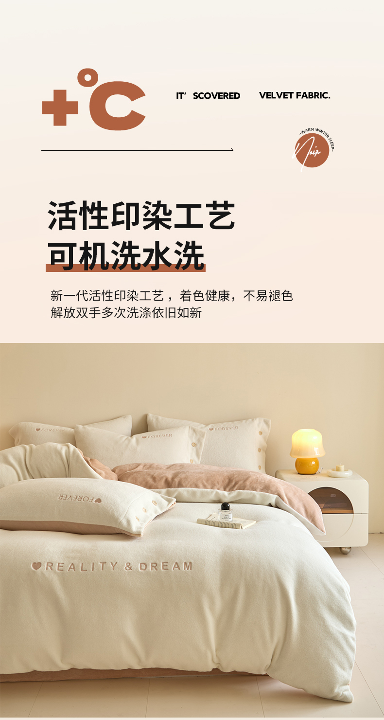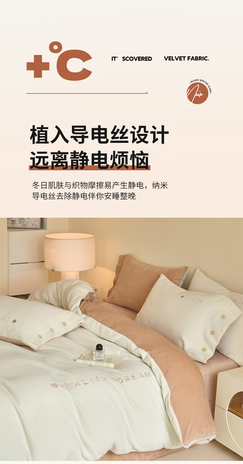 商品名称:吾诺家居 2025新款刺绣款羊驼绒云朵系列四件套 浅驼-亮桔