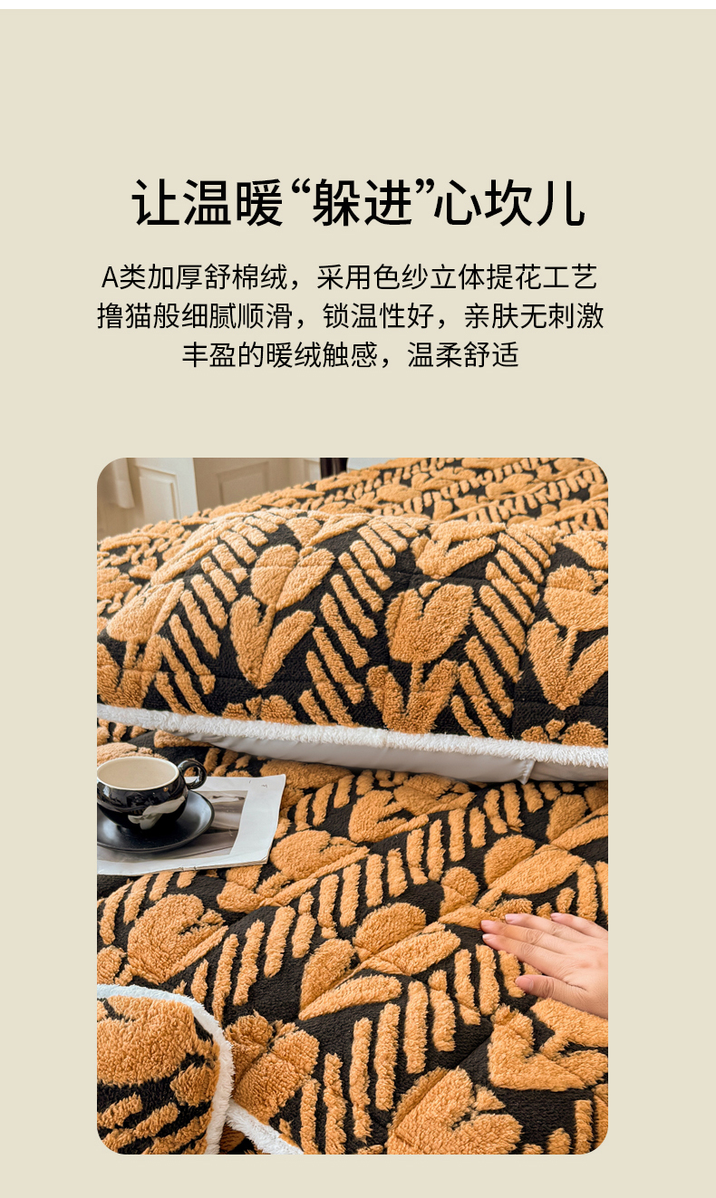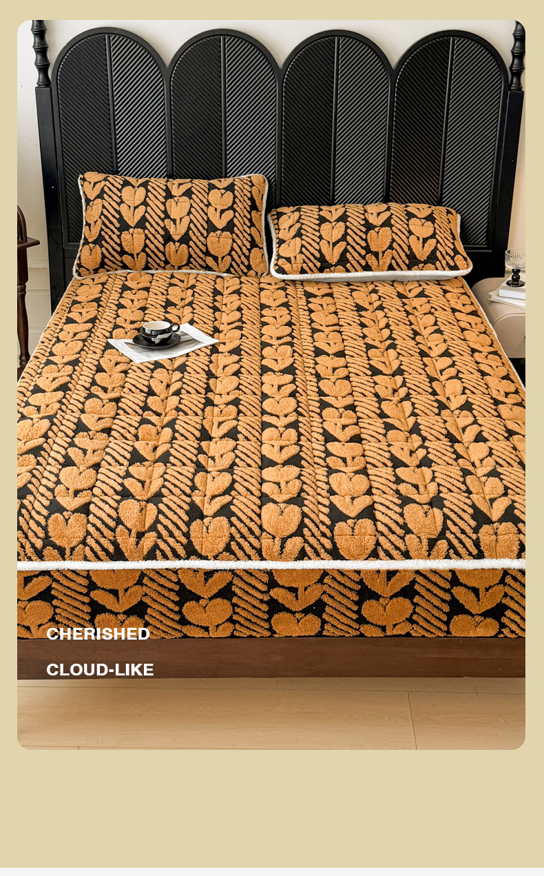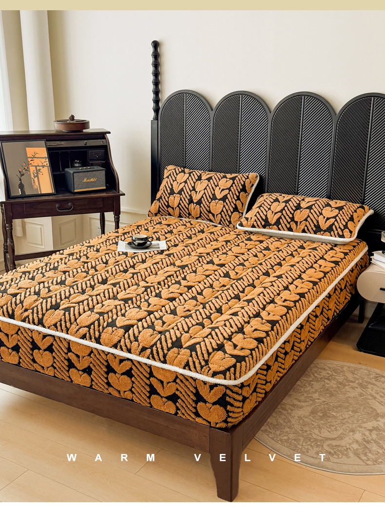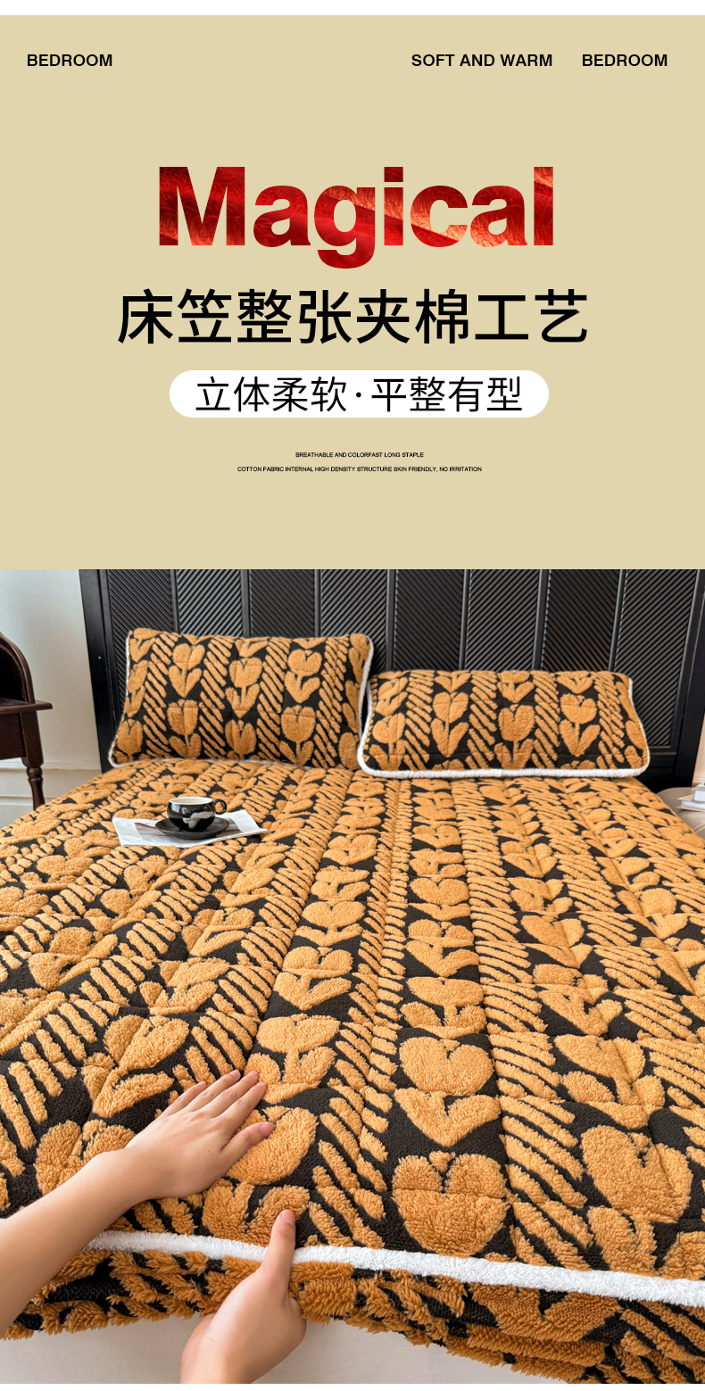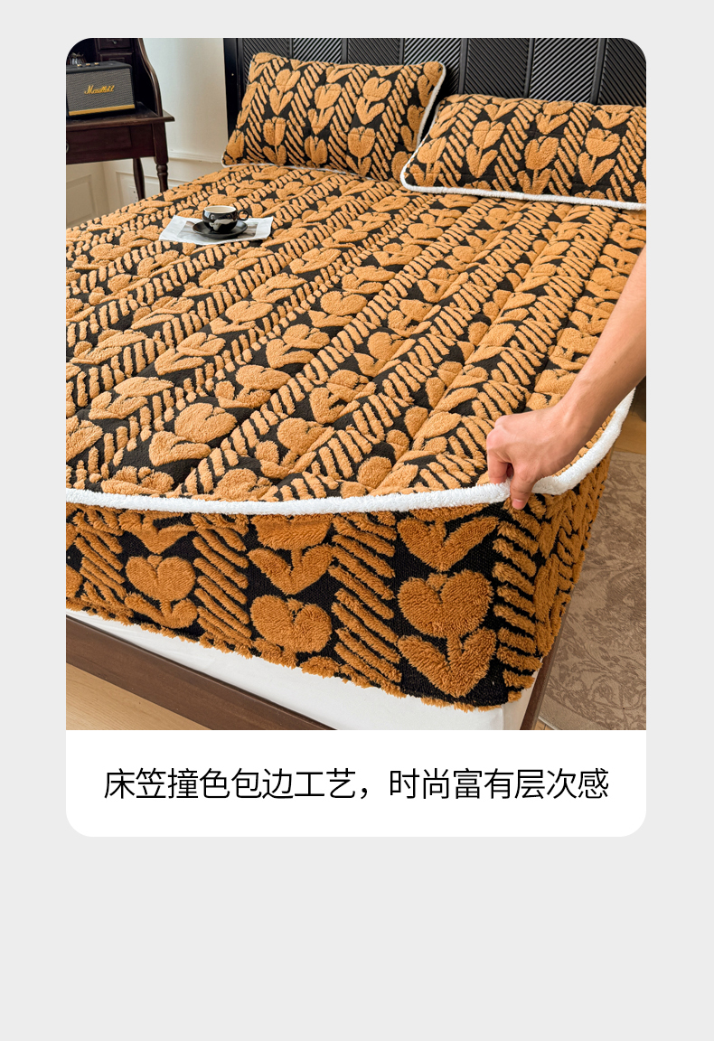 • 91家纺网 家纺一手货源 找家纺 LIFE.丽芙 2025秋冬新款色纱提花舒棉绒加厚夹棉单床笠款床垫子保护套保暖床罩子三件套 郁金香-黄棕