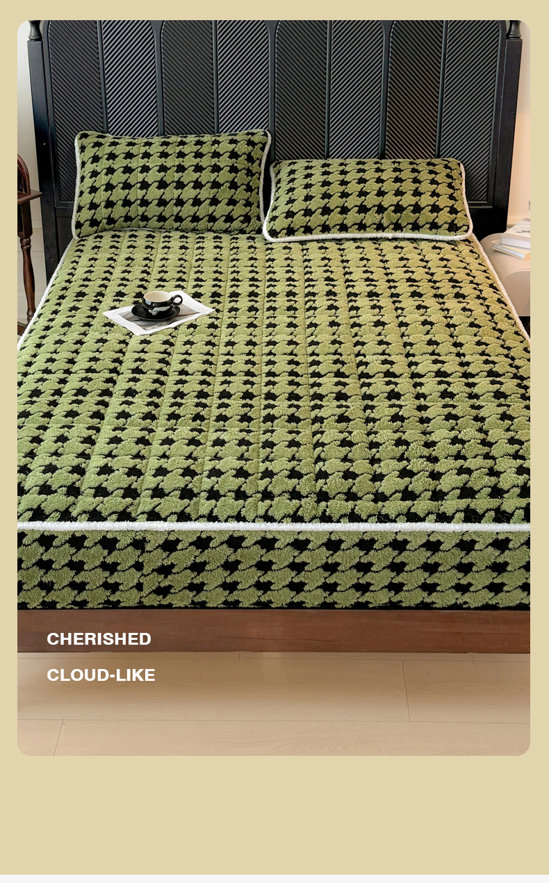 当前位置: 91家纺网 > 商品网购 > 床上用品 > 床笠 > LIFE.丽芙 2025秋冬新款色纱提花舒棉绒加厚夹棉单床笠款床垫子保护套保暖床罩子三件套 千鸟格-草绿