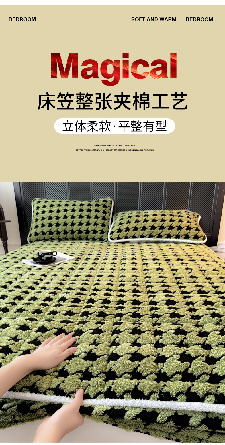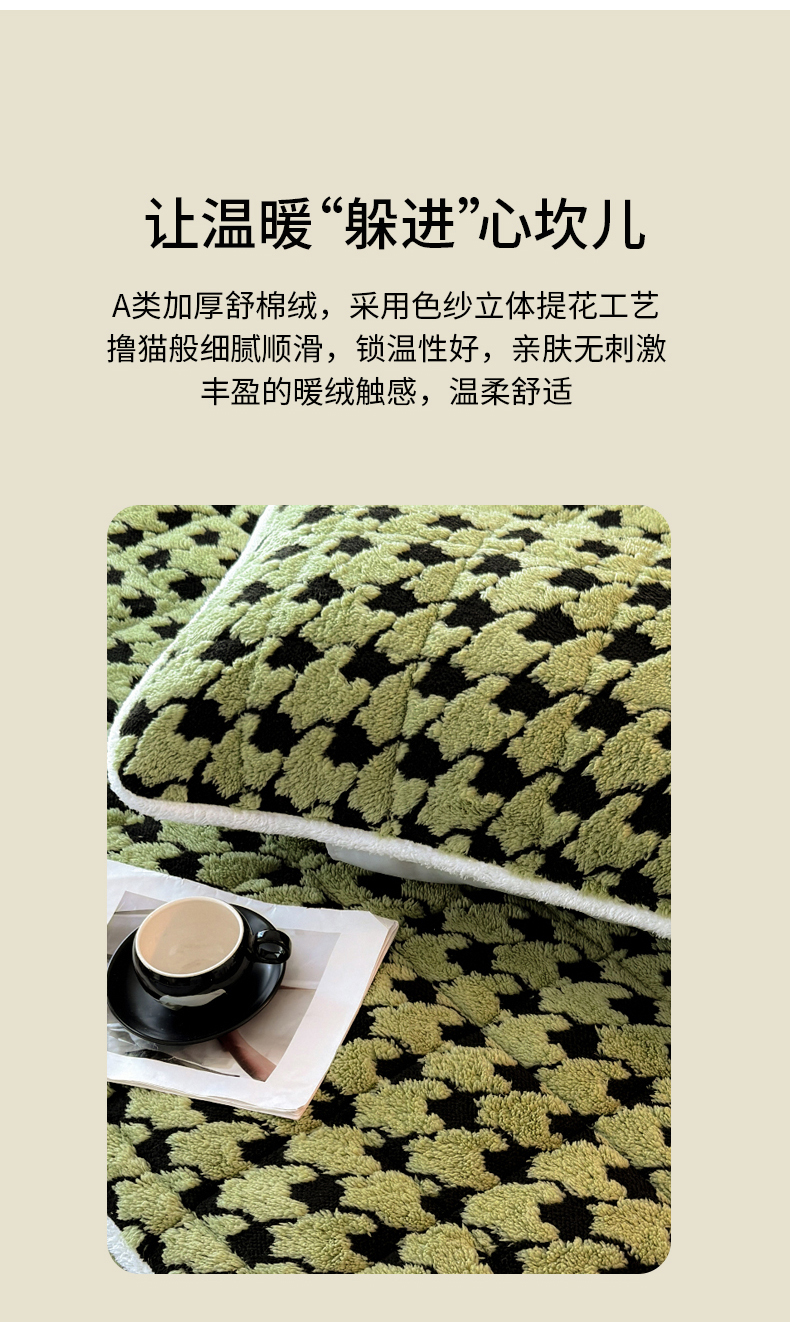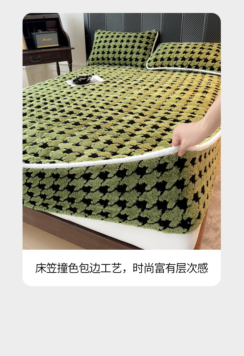 • 91家纺网 家纺一手货源 找家纺 LIFE.丽芙 2025秋冬新款色纱提花舒棉绒加厚夹棉单床笠款床垫子保护套保暖床罩子三件套 千鸟格-草绿