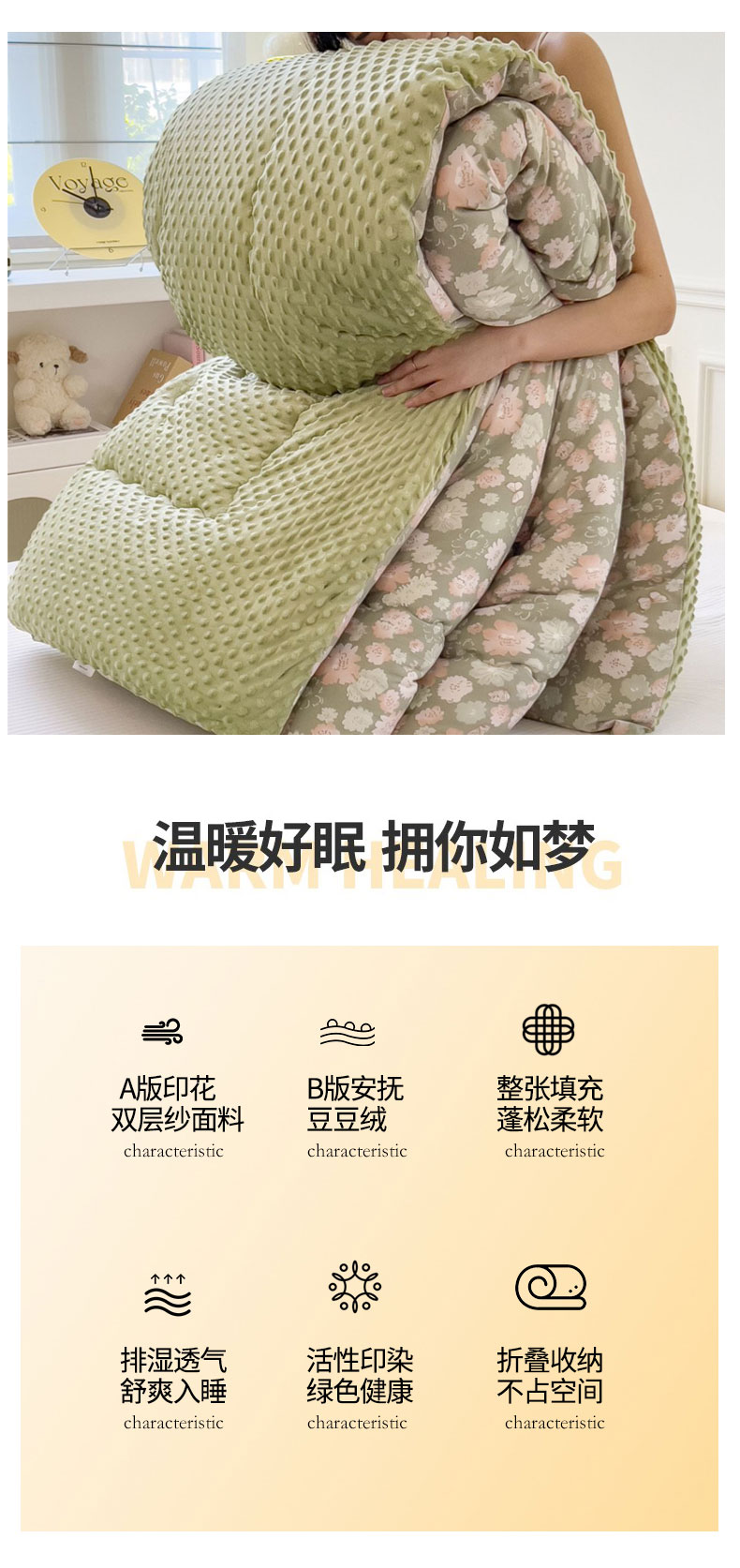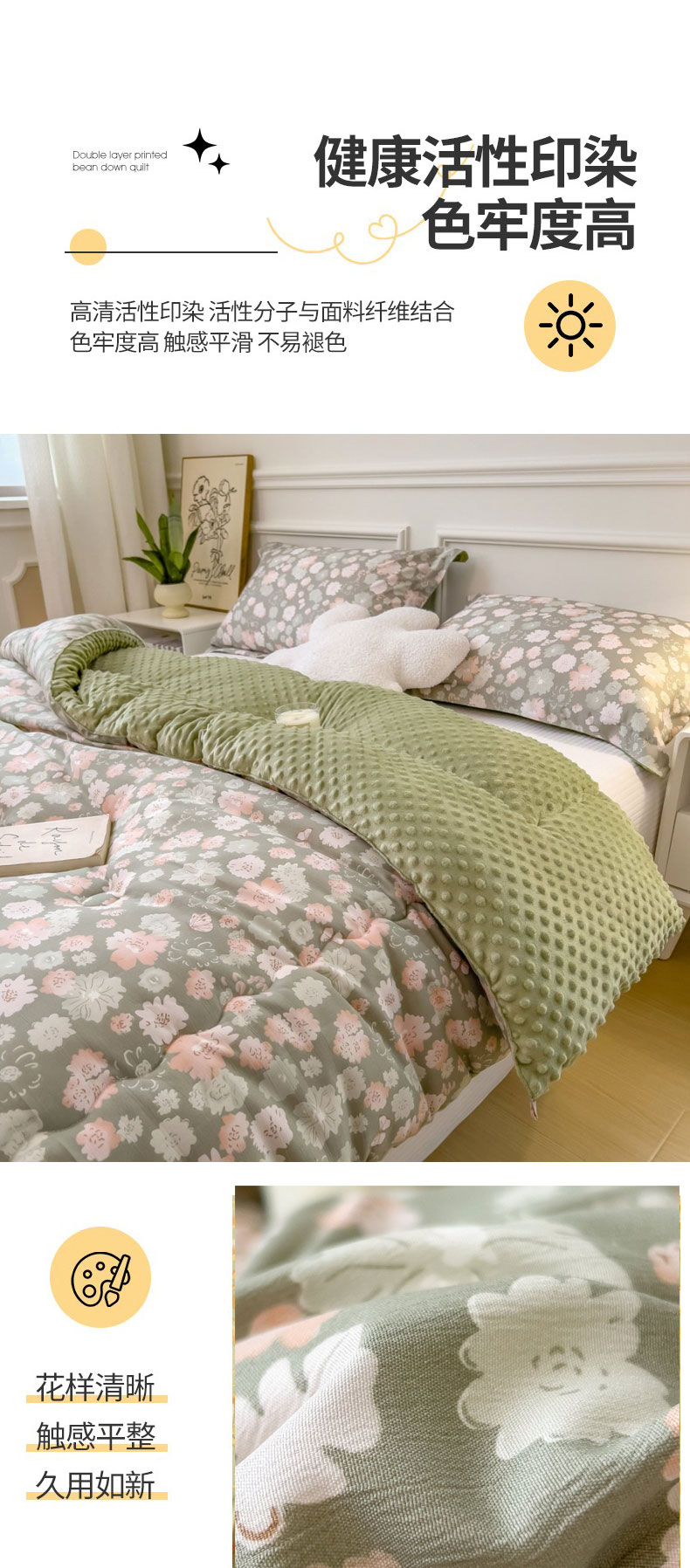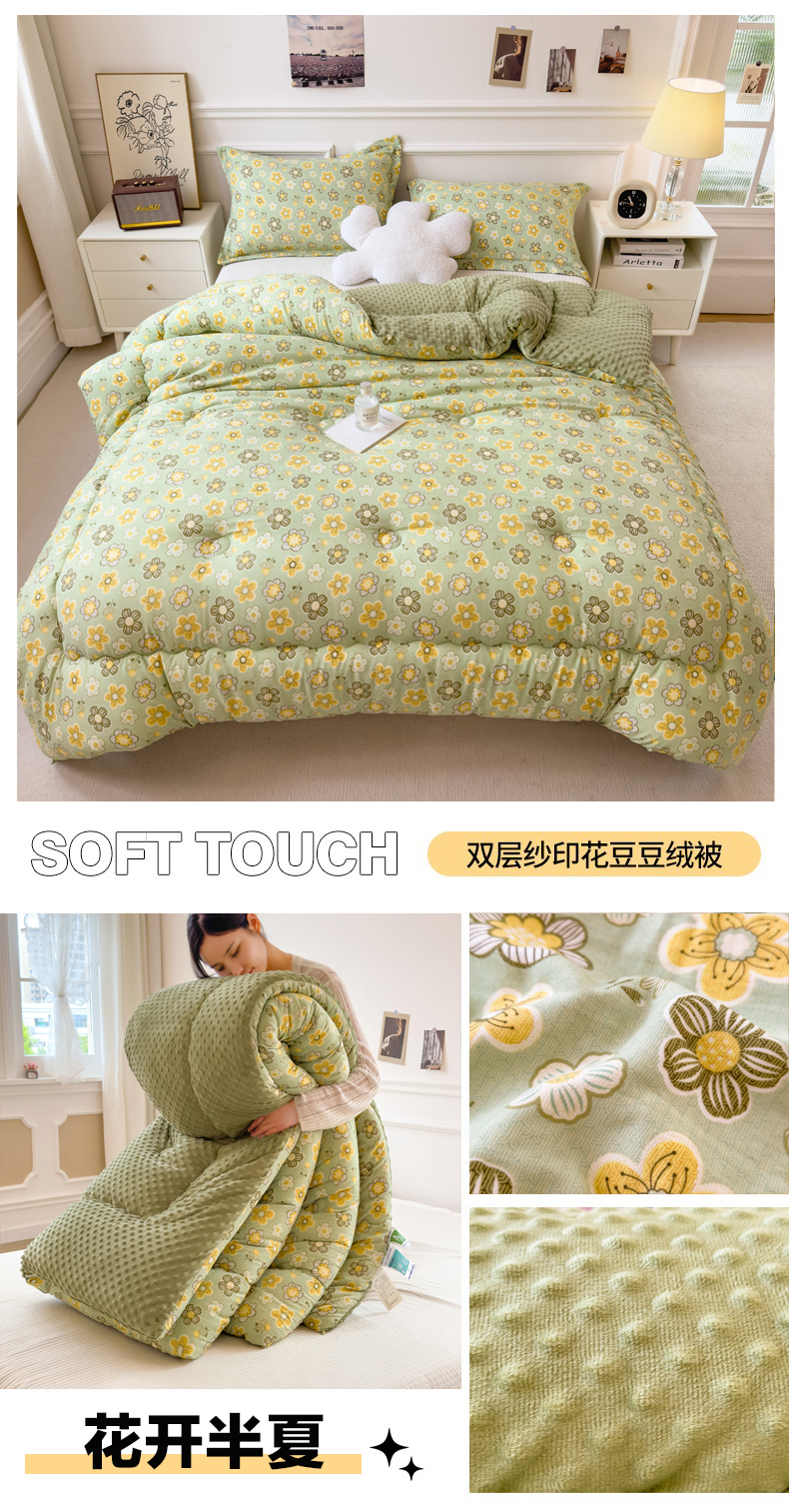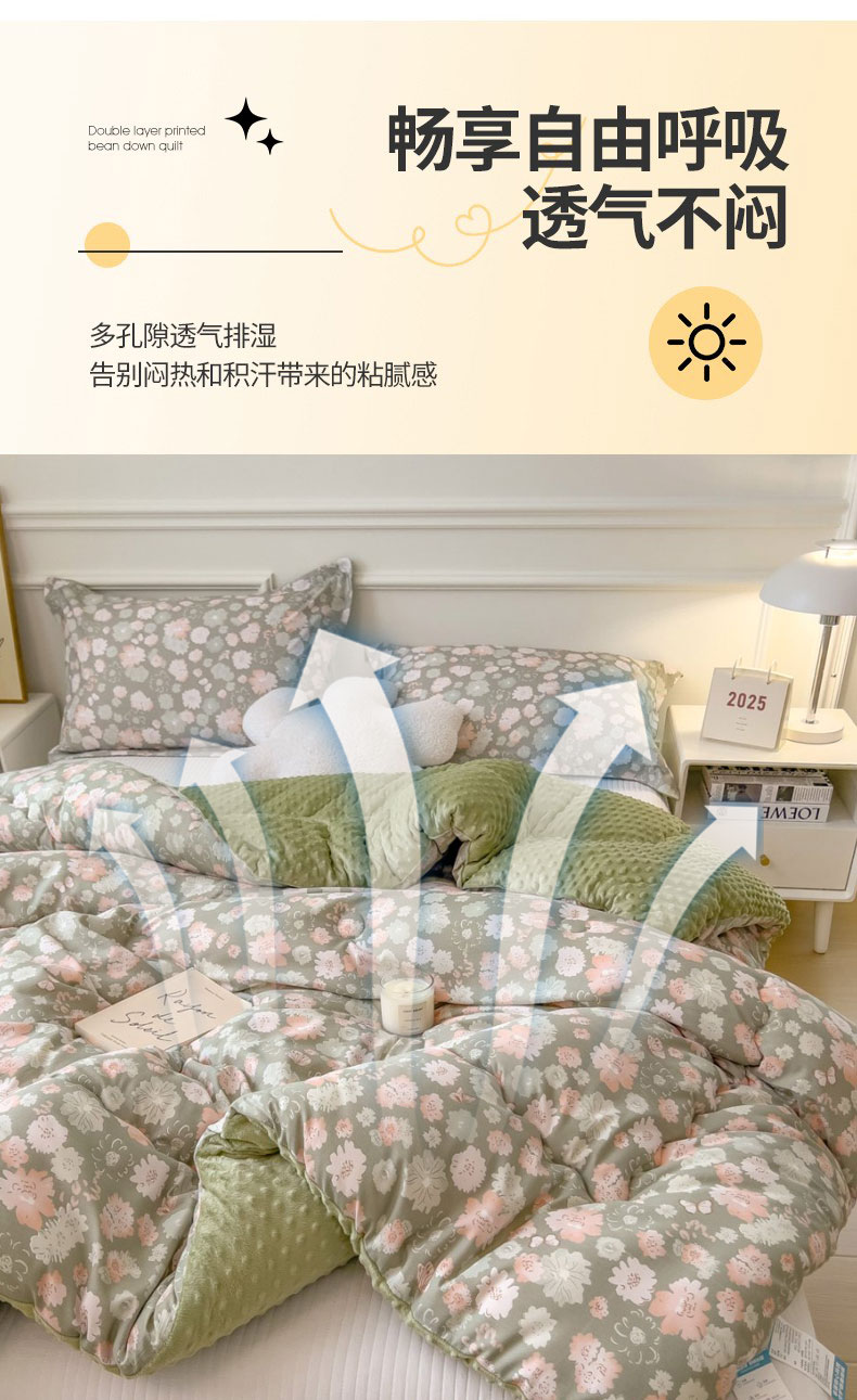 • 91家纺网 家纺一手货源 找家纺 梵克保罗 2025秋冬新品10A抗菌豆豆绒冬被被子被芯 花韵