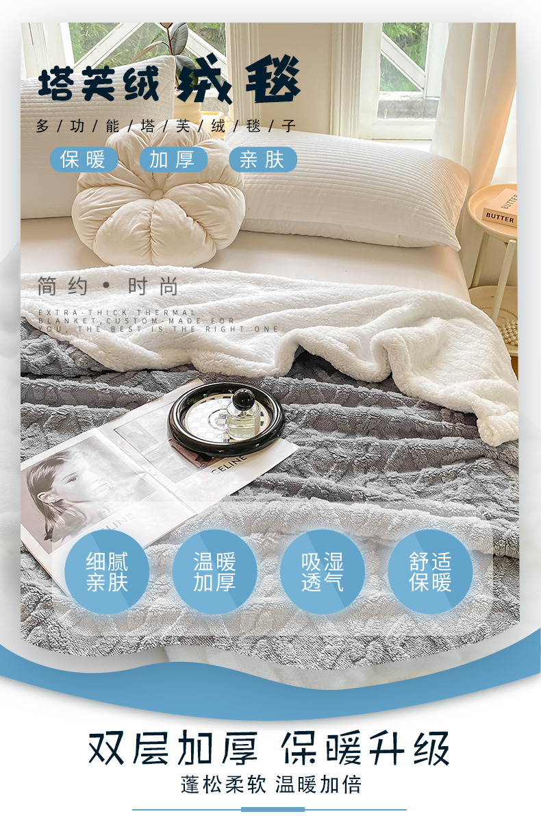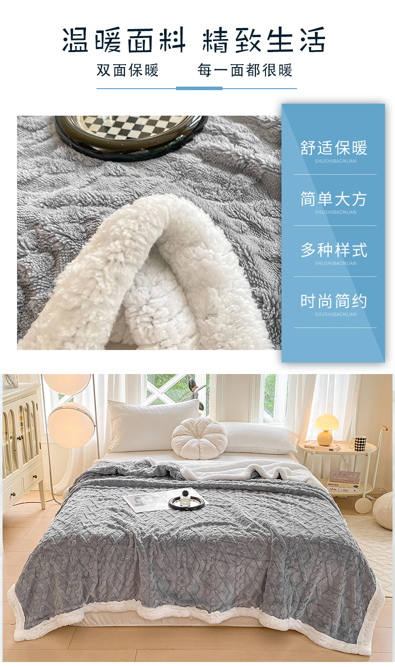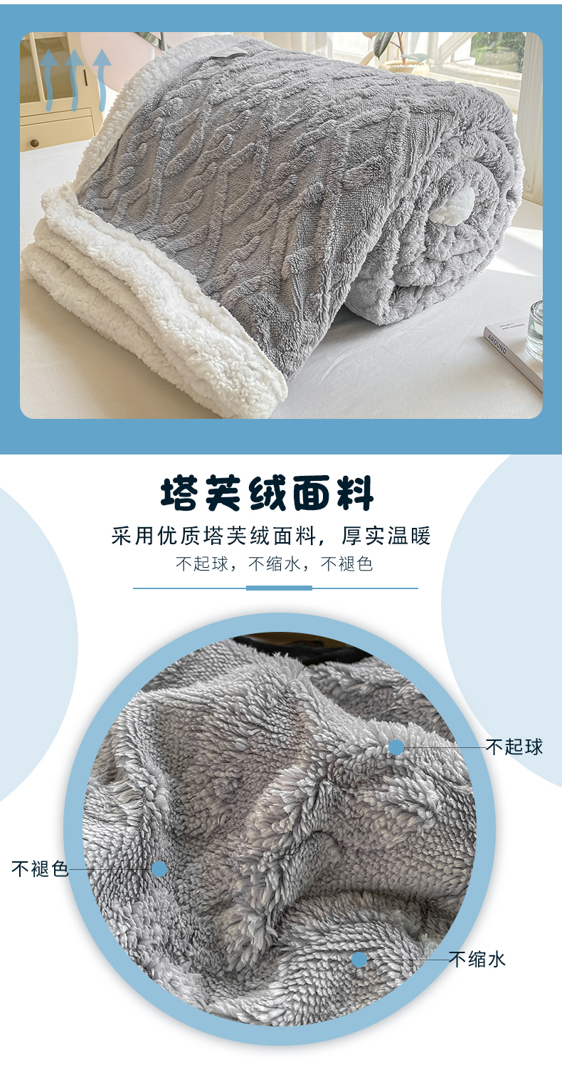 商品名称:悦织湾家纺 2025新款塔芙绒羊羔绒舒棉绒毛毯麻花格系列 麻花格-灰蓝