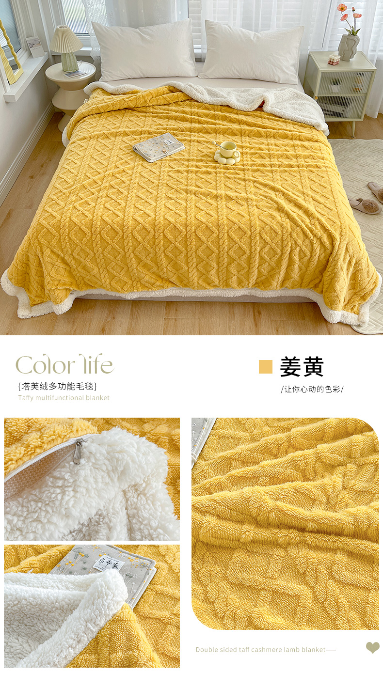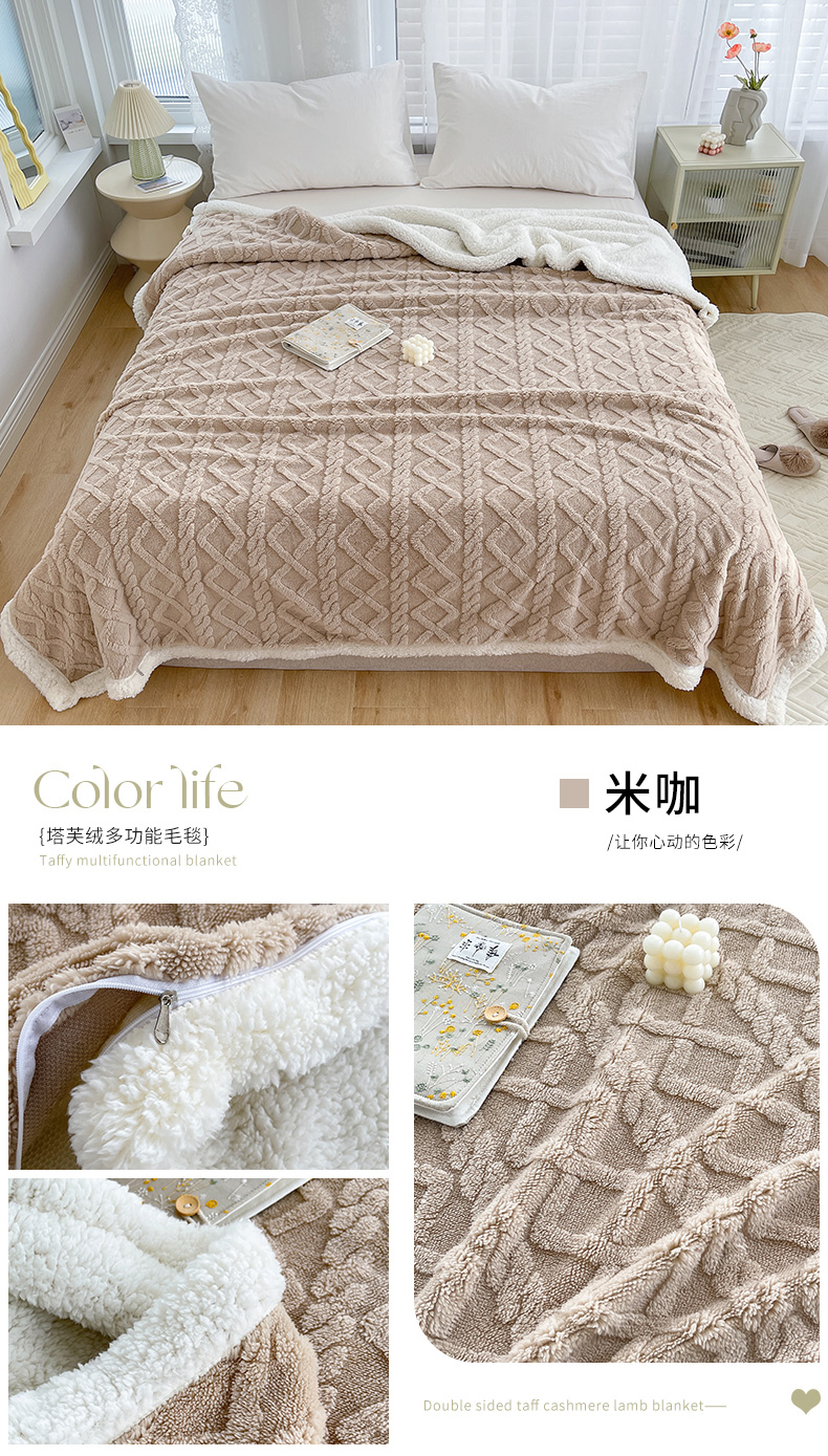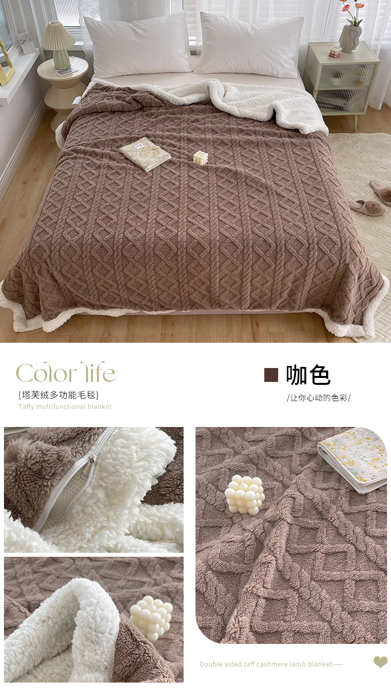 商品名称:悦织湾家纺 2025新款塔芙绒羊羔绒舒棉绒毛毯麻花格系列 麻花格-灰蓝