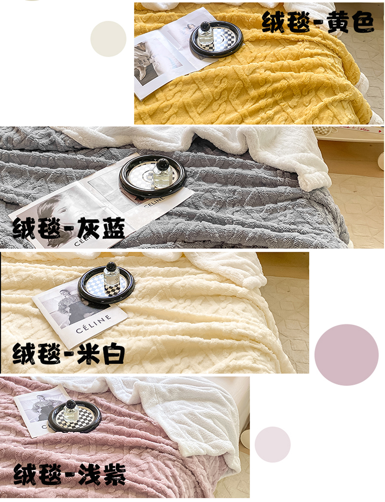 (总)悦织湾家纺 2025炫彩仿兔毛绒泡泡绒牛奶绒法兰绒毛毯休闲毯沙发盖毯跨境外贸出口专供,炫彩粉,炫彩灰,炫彩咖,炫彩绿,炫彩紫