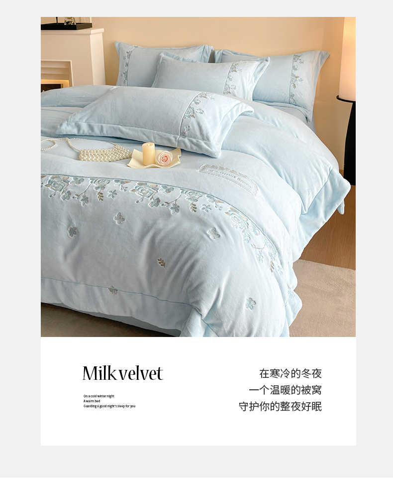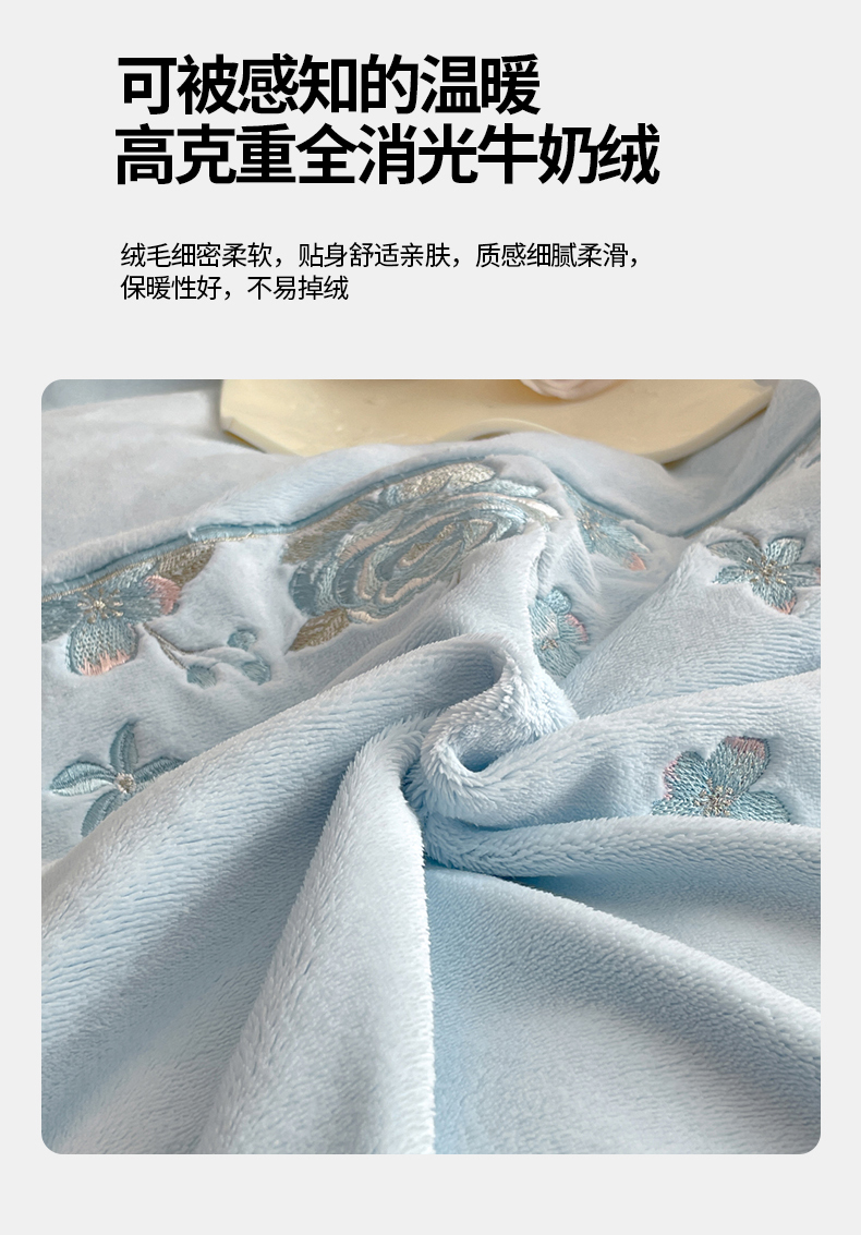 当前位置: 91家纺网 > 商品网购 > 床品套件 > 四件套 > 牛奶绒四件套 > 新方向 2025年 全消光A类刺绣牛奶绒四件套-花意浓 花意浓-星月蓝