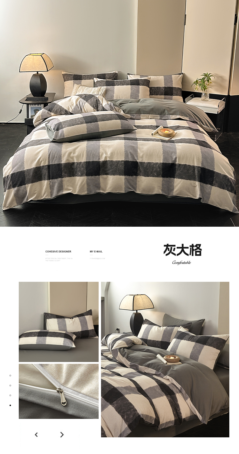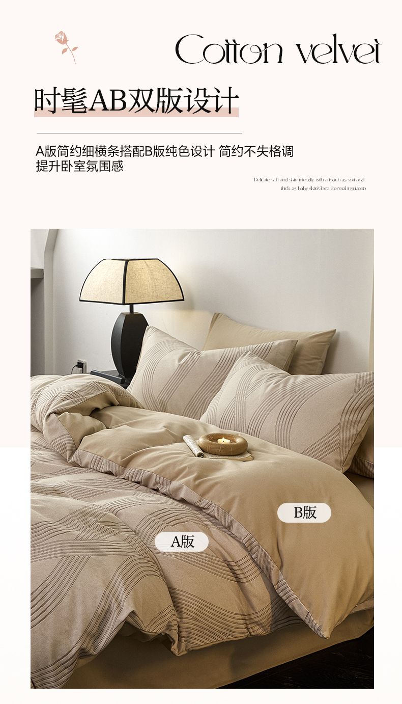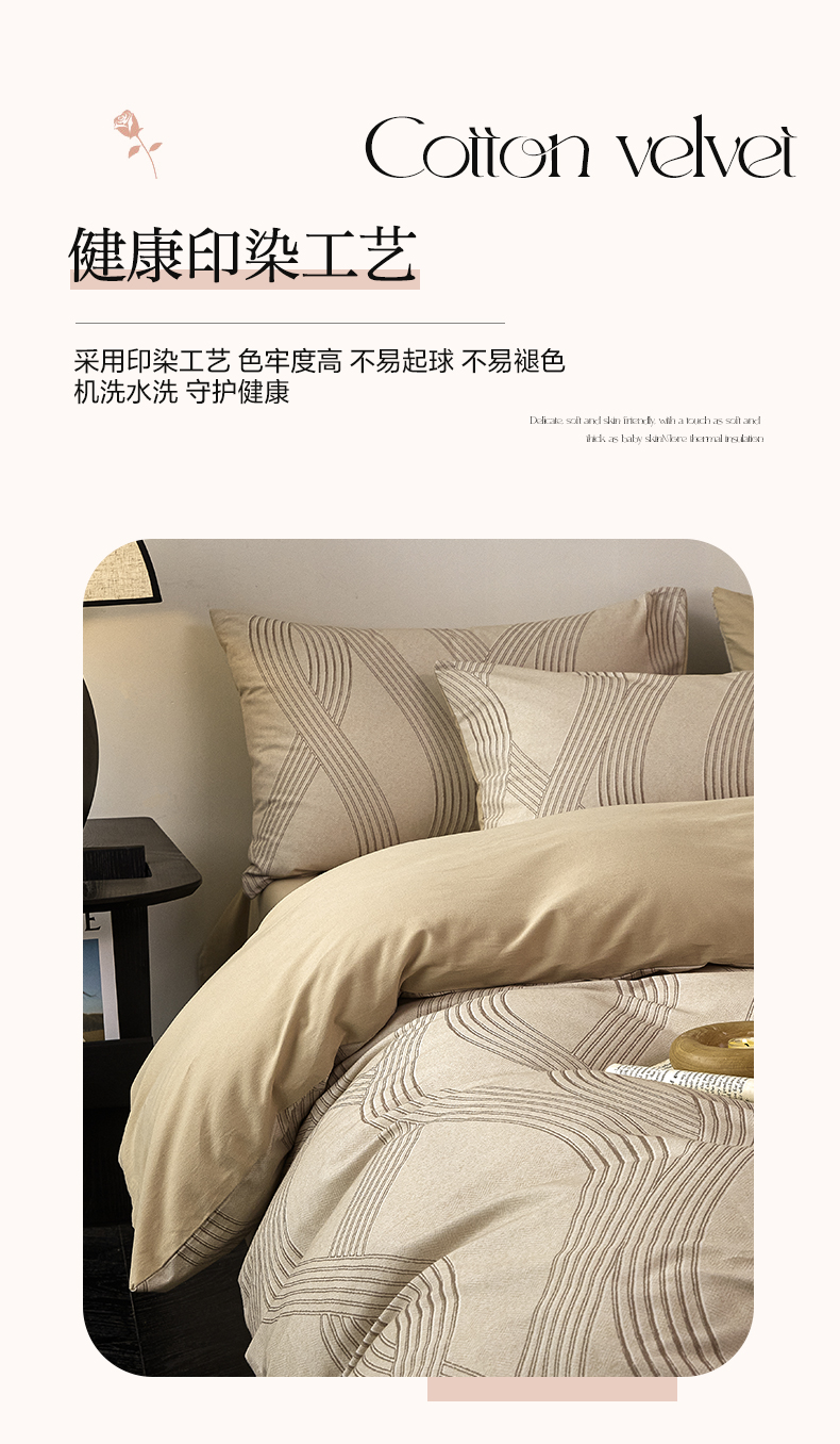 雅居纺家纺 2025新款简约款全棉磨毛四件套 卡米拉