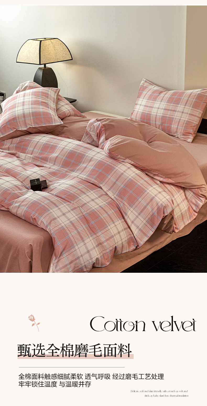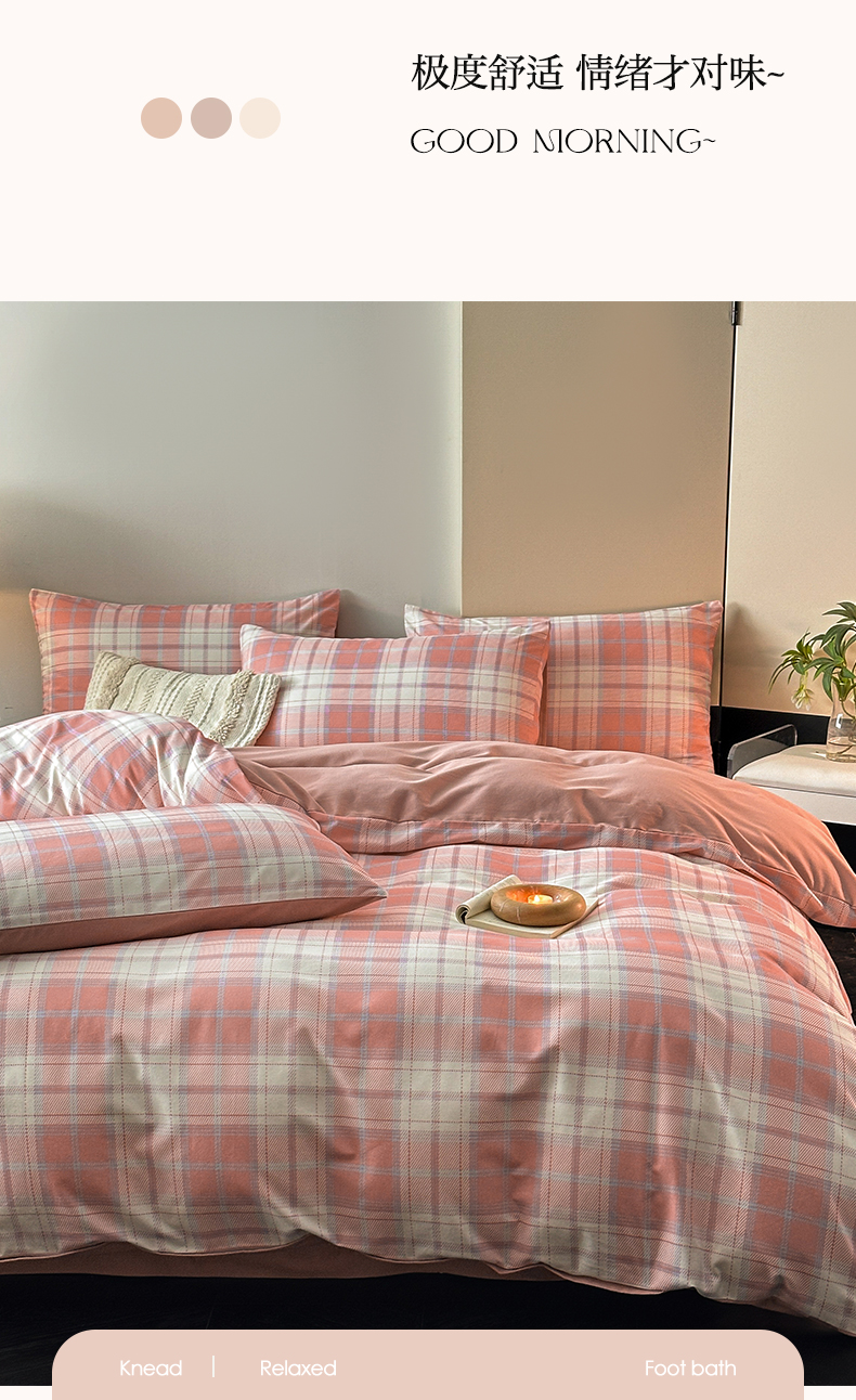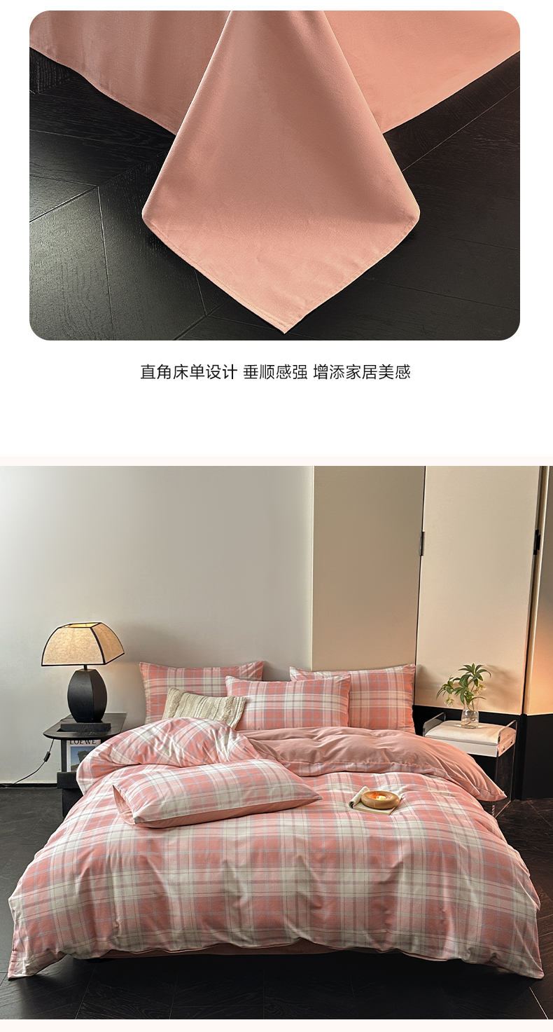 商品名称:雅居纺家纺 2025新款简约款全棉磨毛四件套 旋律-粉格