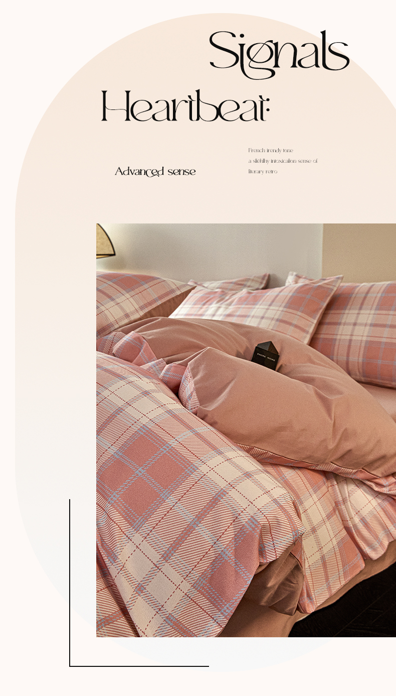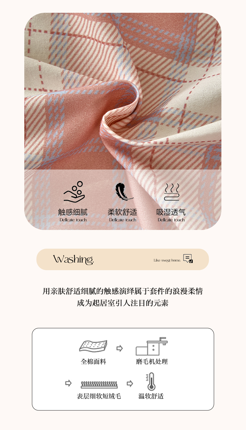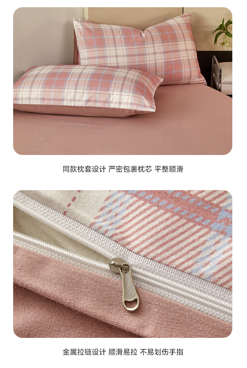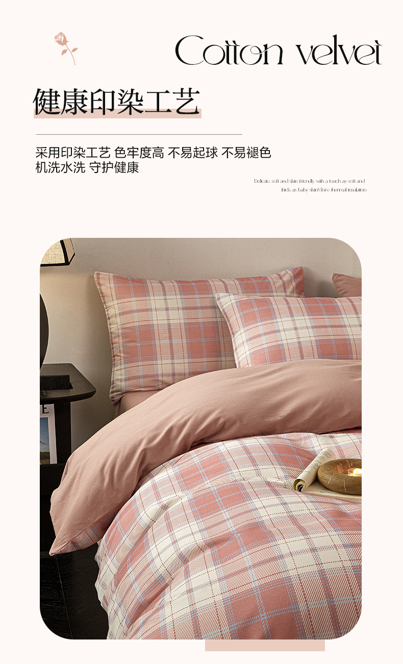 商品名称:雅居纺家纺 2025新款简约款全棉磨毛四件套 旋律-粉格