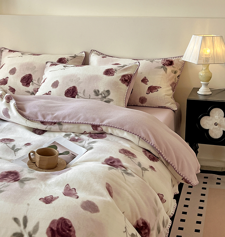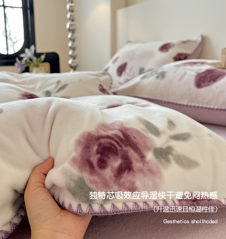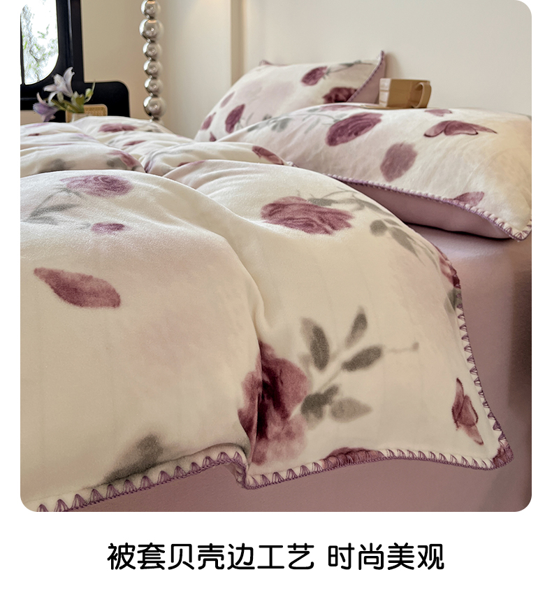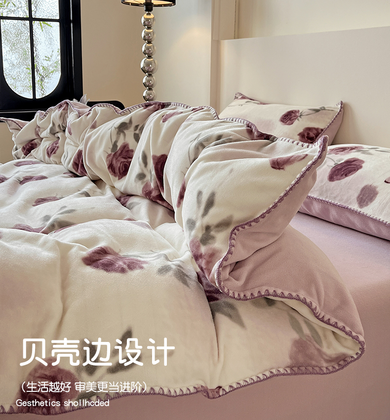 (总)品乐家纺 2025秋冬新款糯米绒缇肤绒印花贝壳边四件套,卡拉-灰,开心熊-米,南笙-咖,南笙-绿,浅夏-咖,素影-酒红,素影-紫,小樱桃-酒红,叶茂-驼