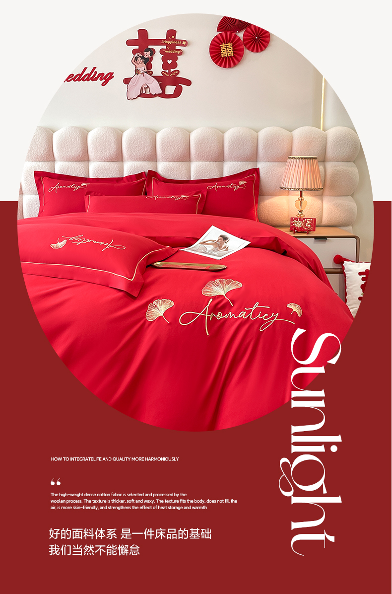 商品名称:花愿(原花纪) 2026新款水洗棉刺绣婚庆四件套系列 喜爱