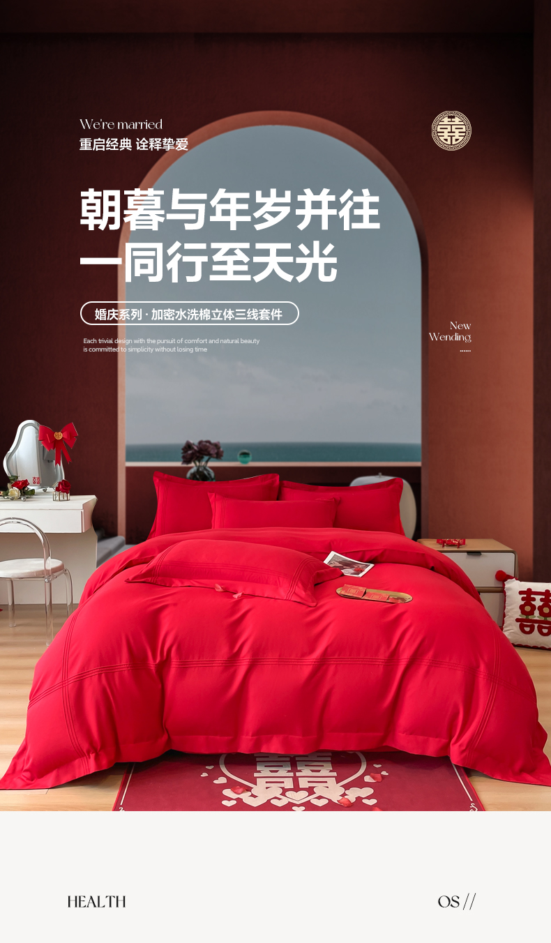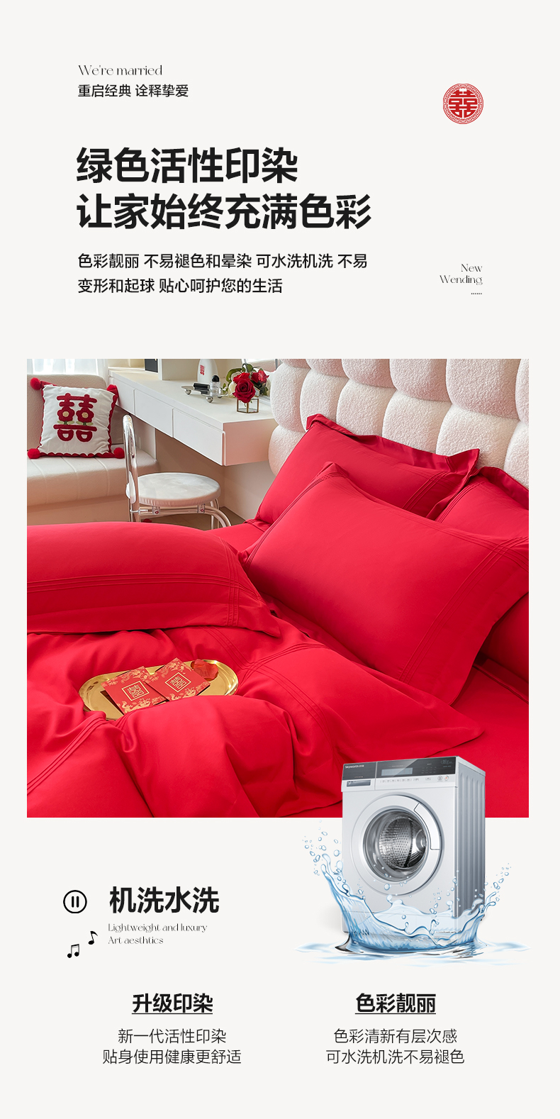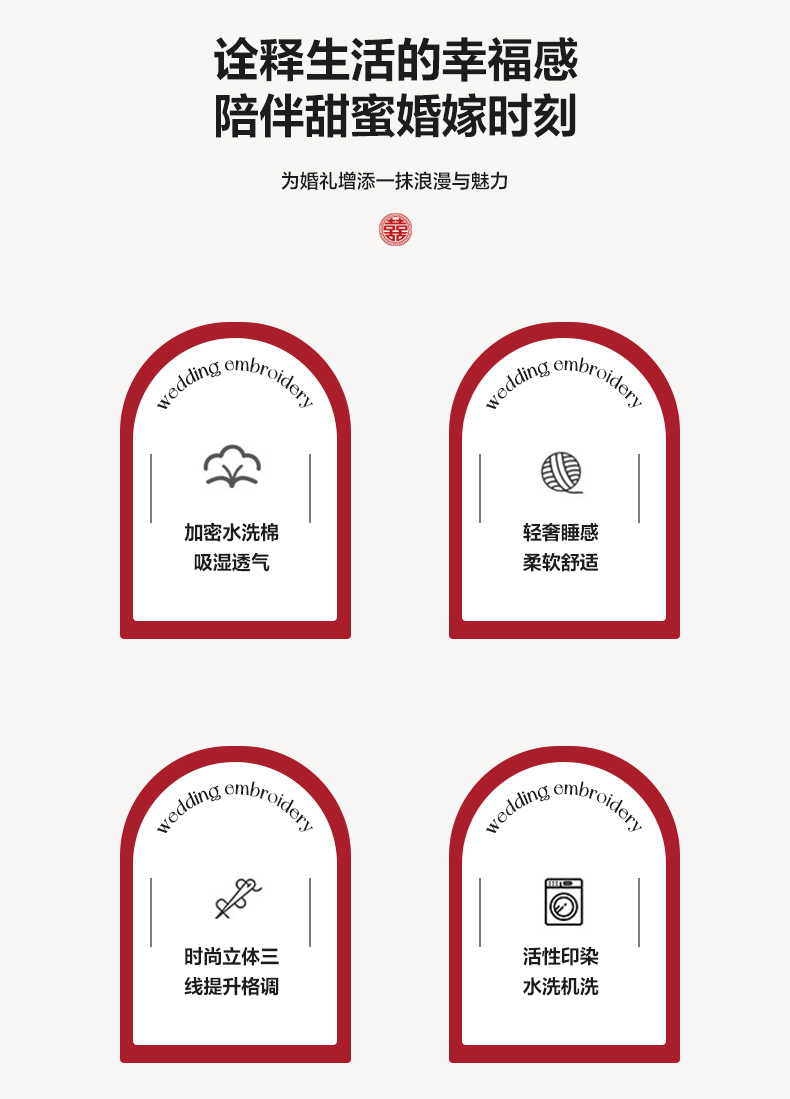 商品名称:花愿(原花纪) 2026新款婚庆刺绣四件套(礼盒款) 喜气洋洋
