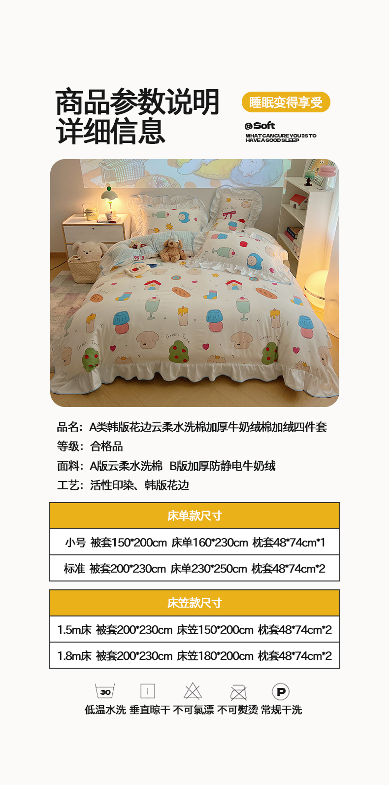 【床笠款】1.8四件套-被套200x230 | ¥95.00 |