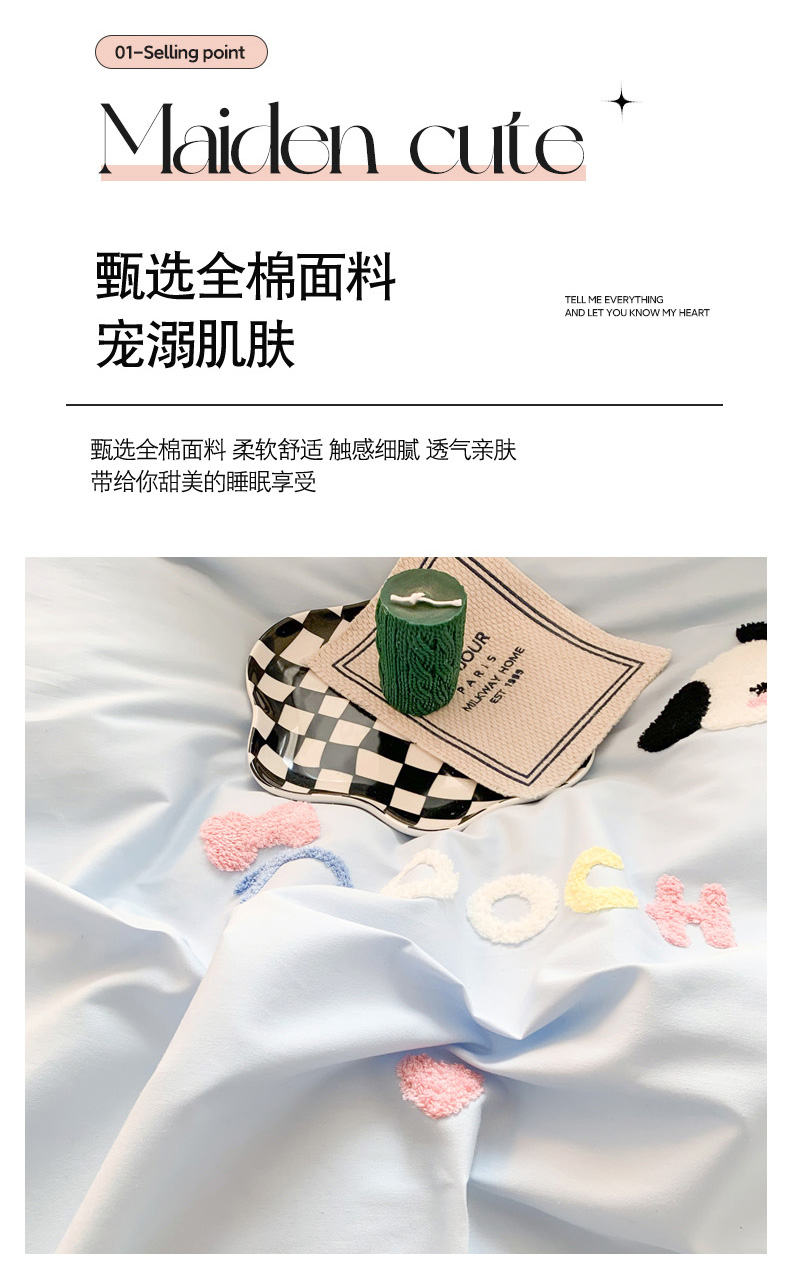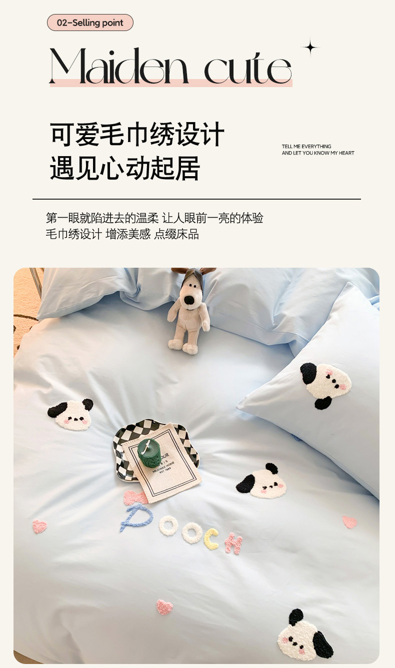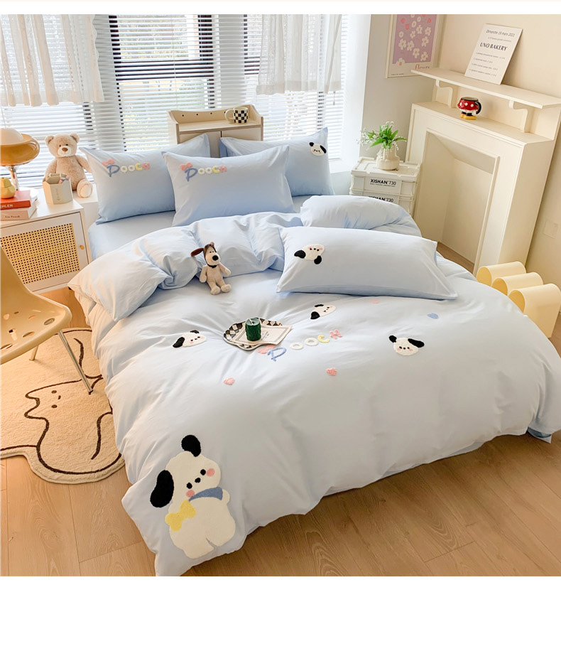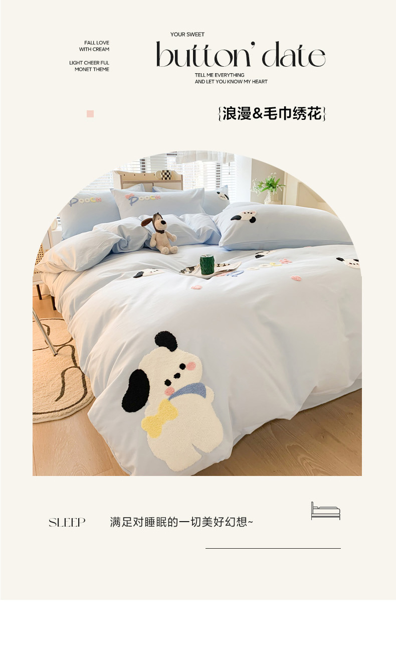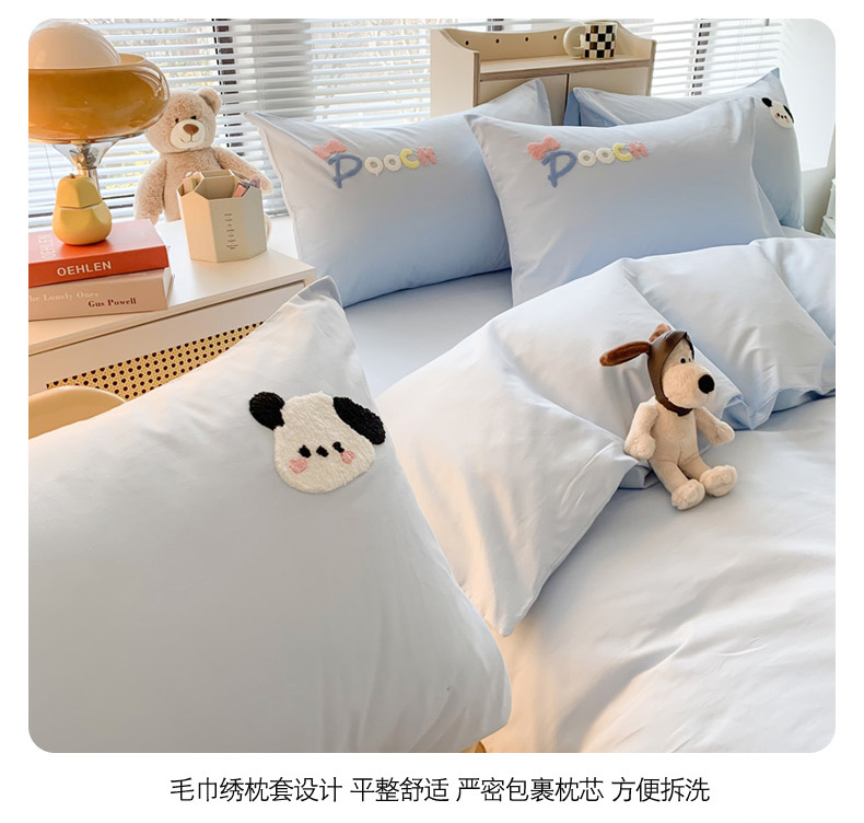 当前位置: 91家纺网 > 商品网购 > 床品套件 > 四件套 > 全棉普通四件套 > 如意朵 2025新款全棉纯棉小清新印花加绣花四件套 俏皮狗狗蓝