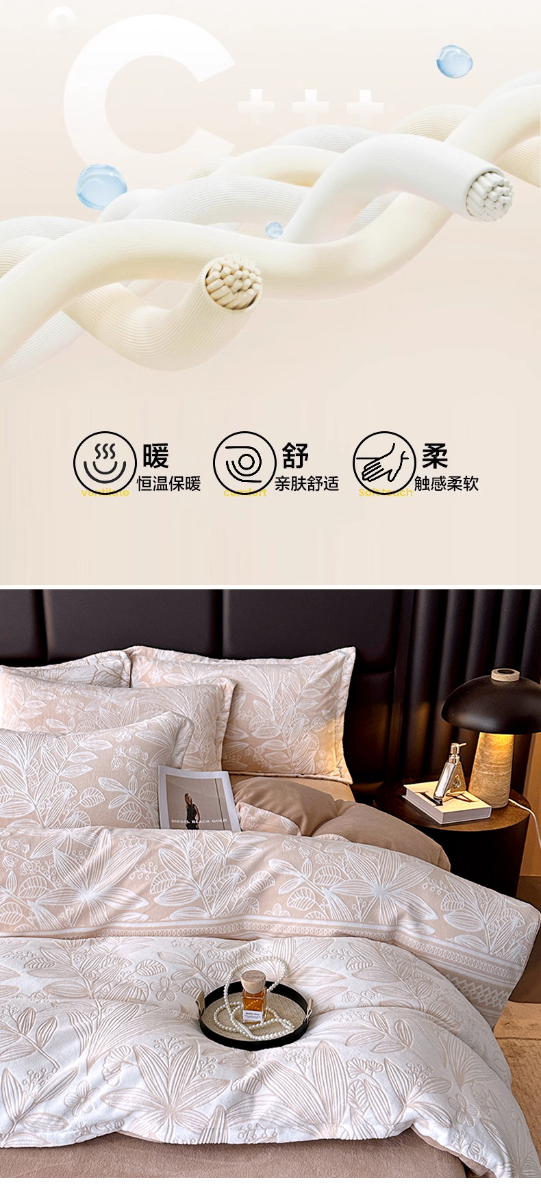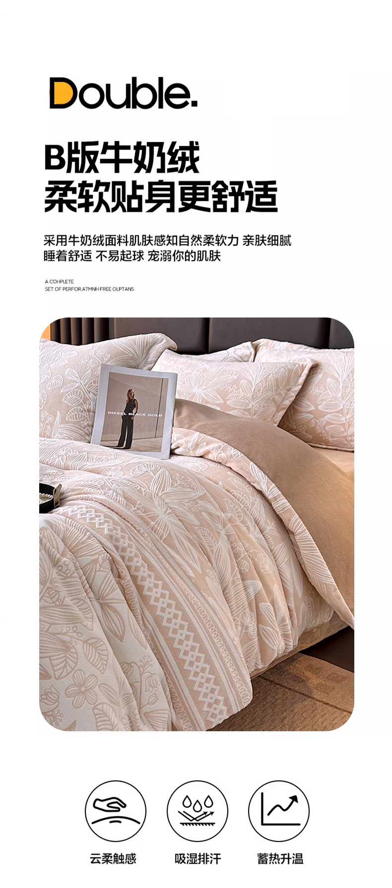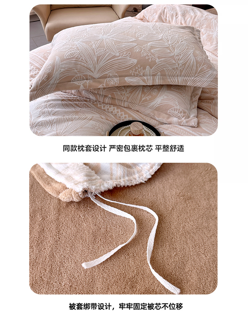 当前位置: 91家纺网 > 商品网购 > 床品套件 > 四件套 > 牛奶绒四件套 > 家贝爱 2025新款230克烂花雕花牛奶绒四件套 叶繁咖