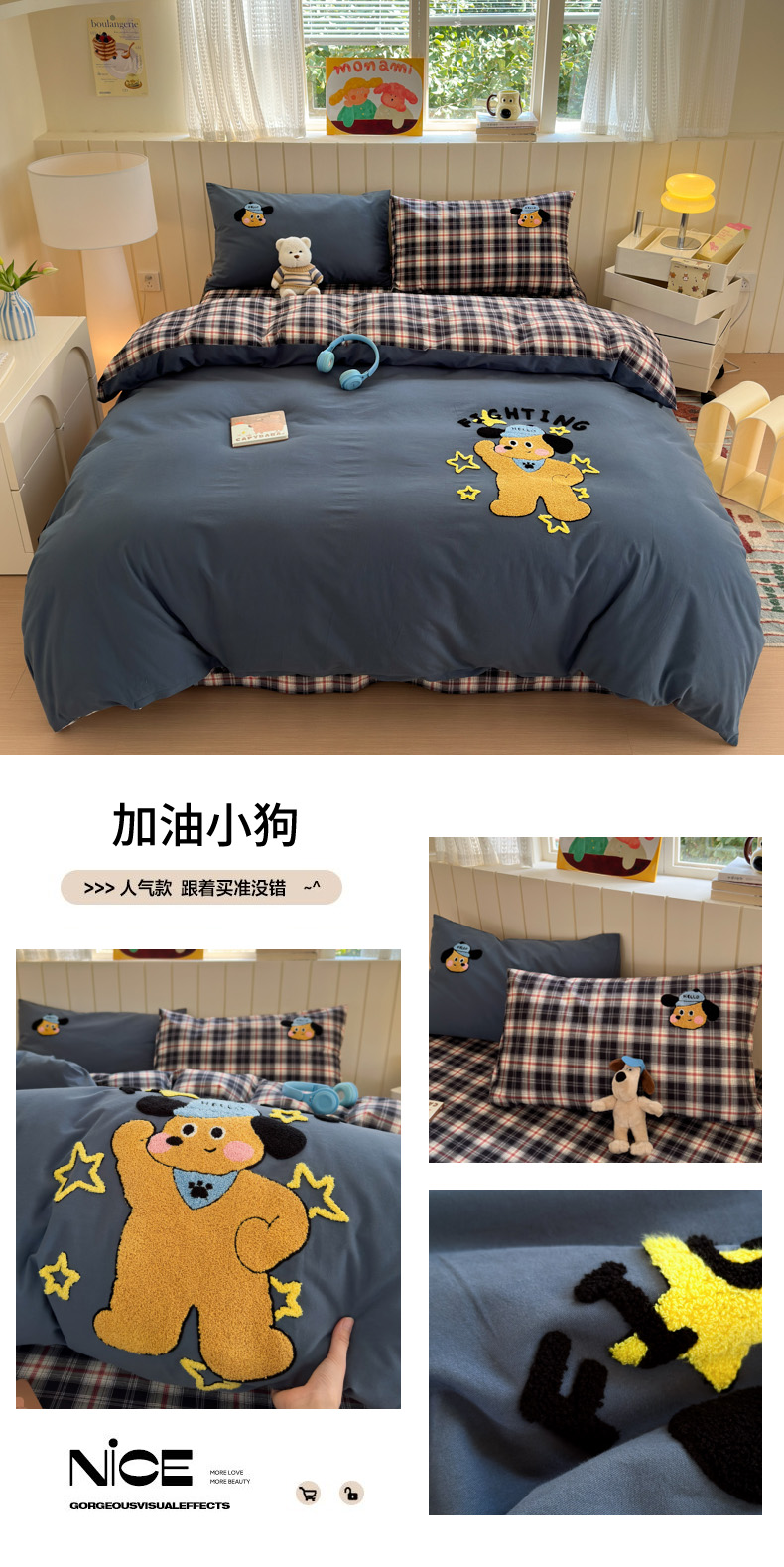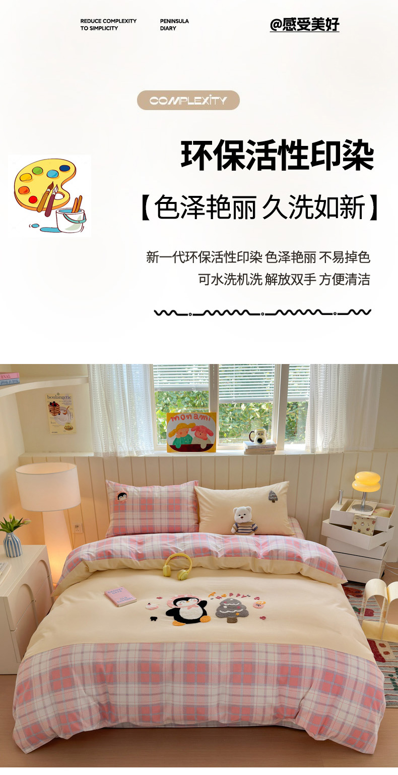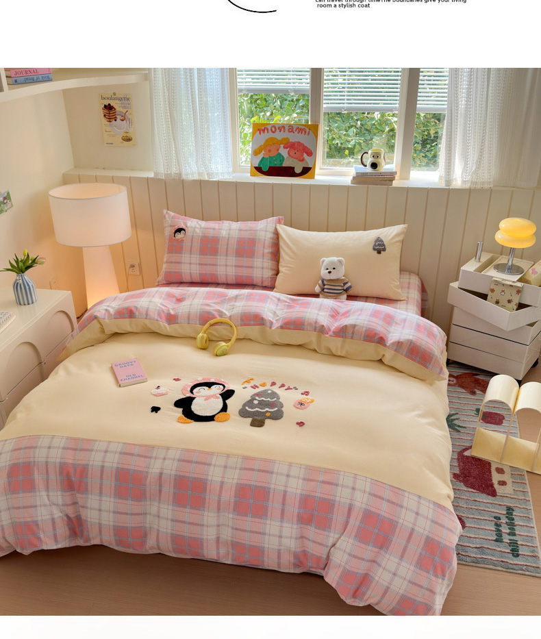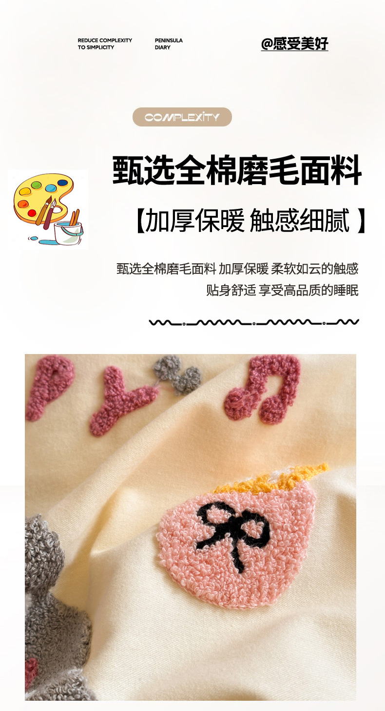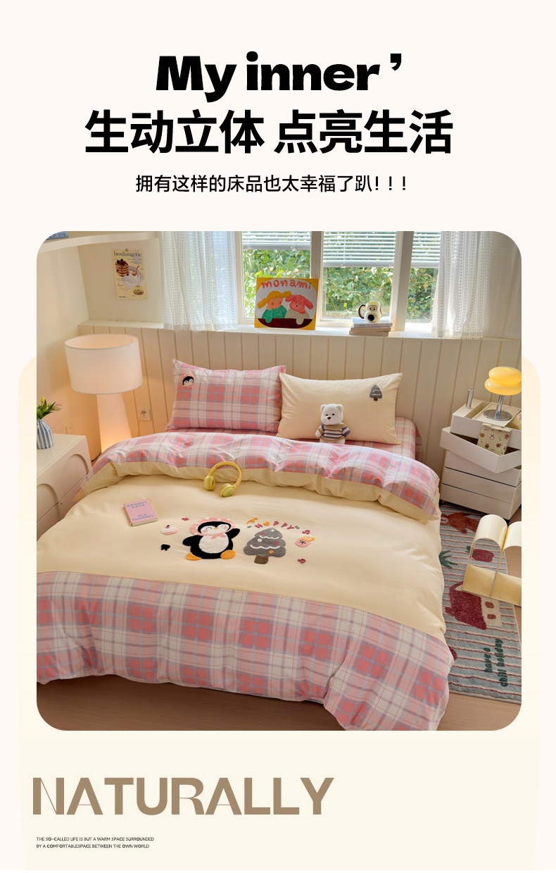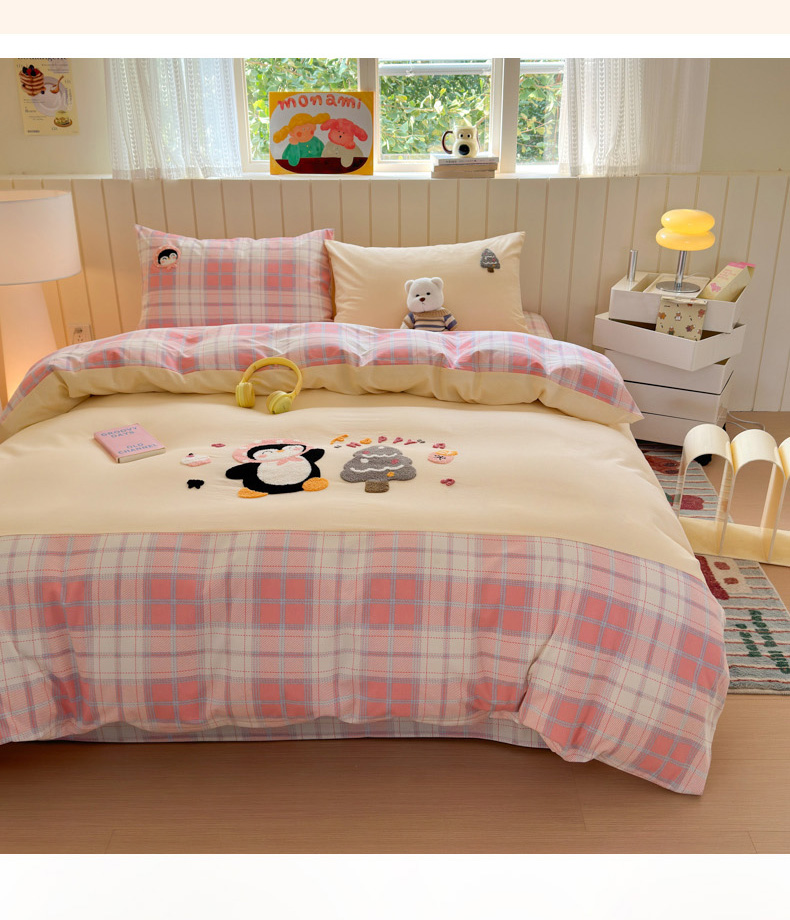当前位置: 91家纺网 > 商品网购 > 床品套件 > 四件套 > 毛巾绣四件套 > 如意朵 2025新款全棉磨毛卡通毛巾绣四件套(专版花型)-场景二 音乐企鹅