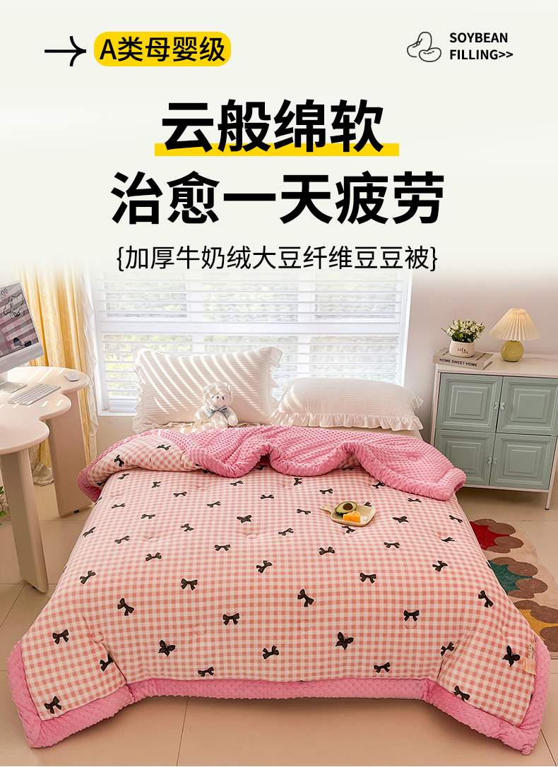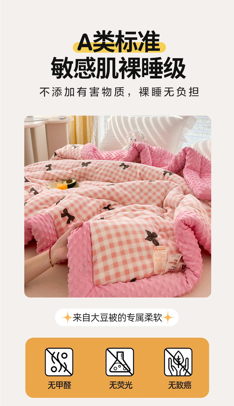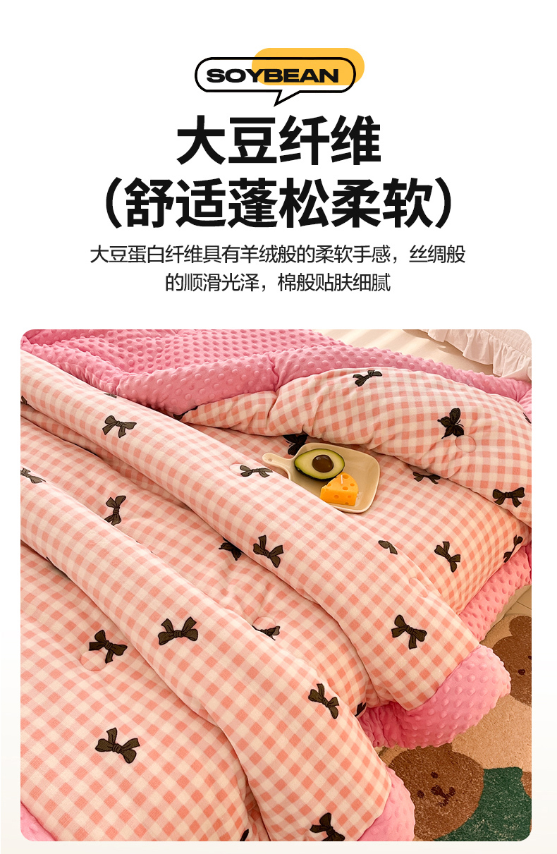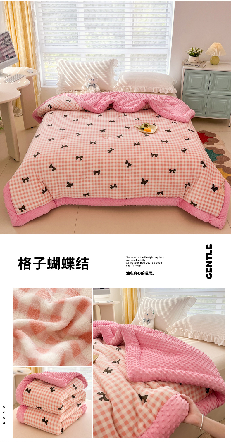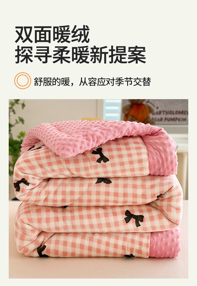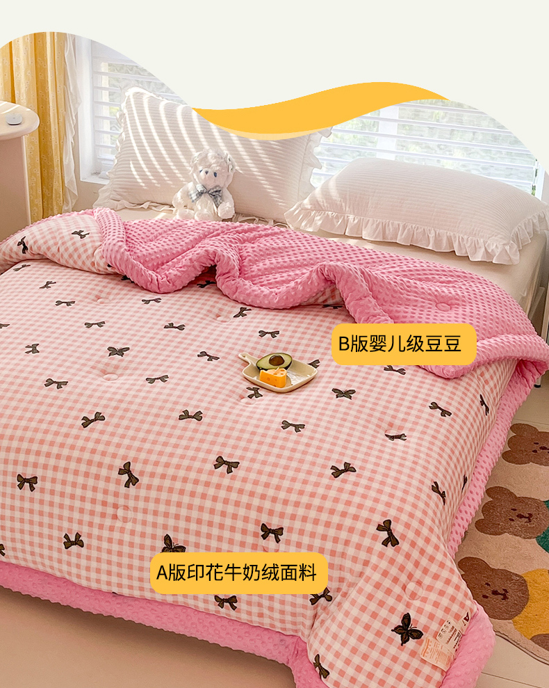 • 91家纺网 家纺一手货源 找家纺 默忆 2025新款牛奶绒豆豆被被子被芯 格子蝴蝶结