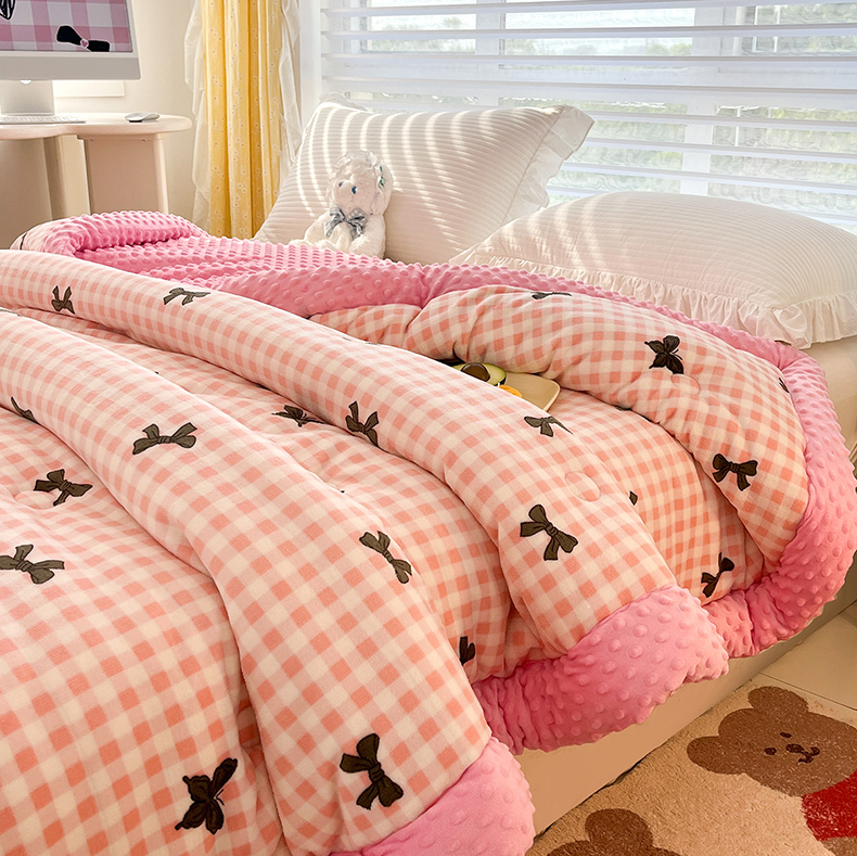 默忆 2025新款牛奶绒豆豆被被子被芯 格子蝴蝶结