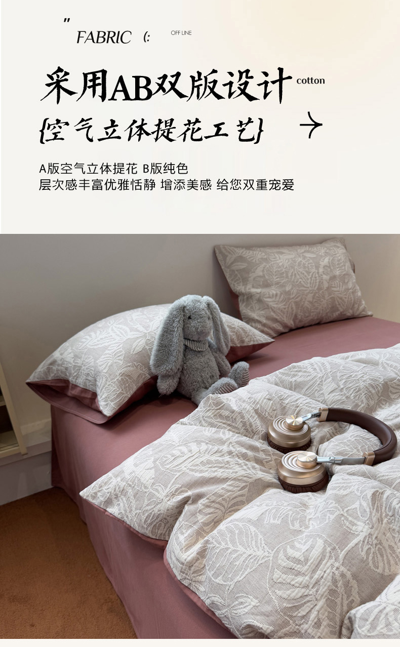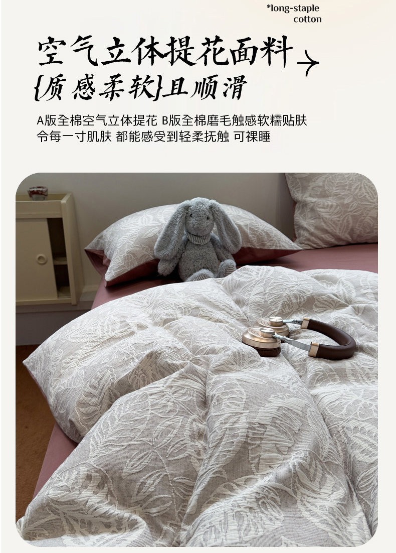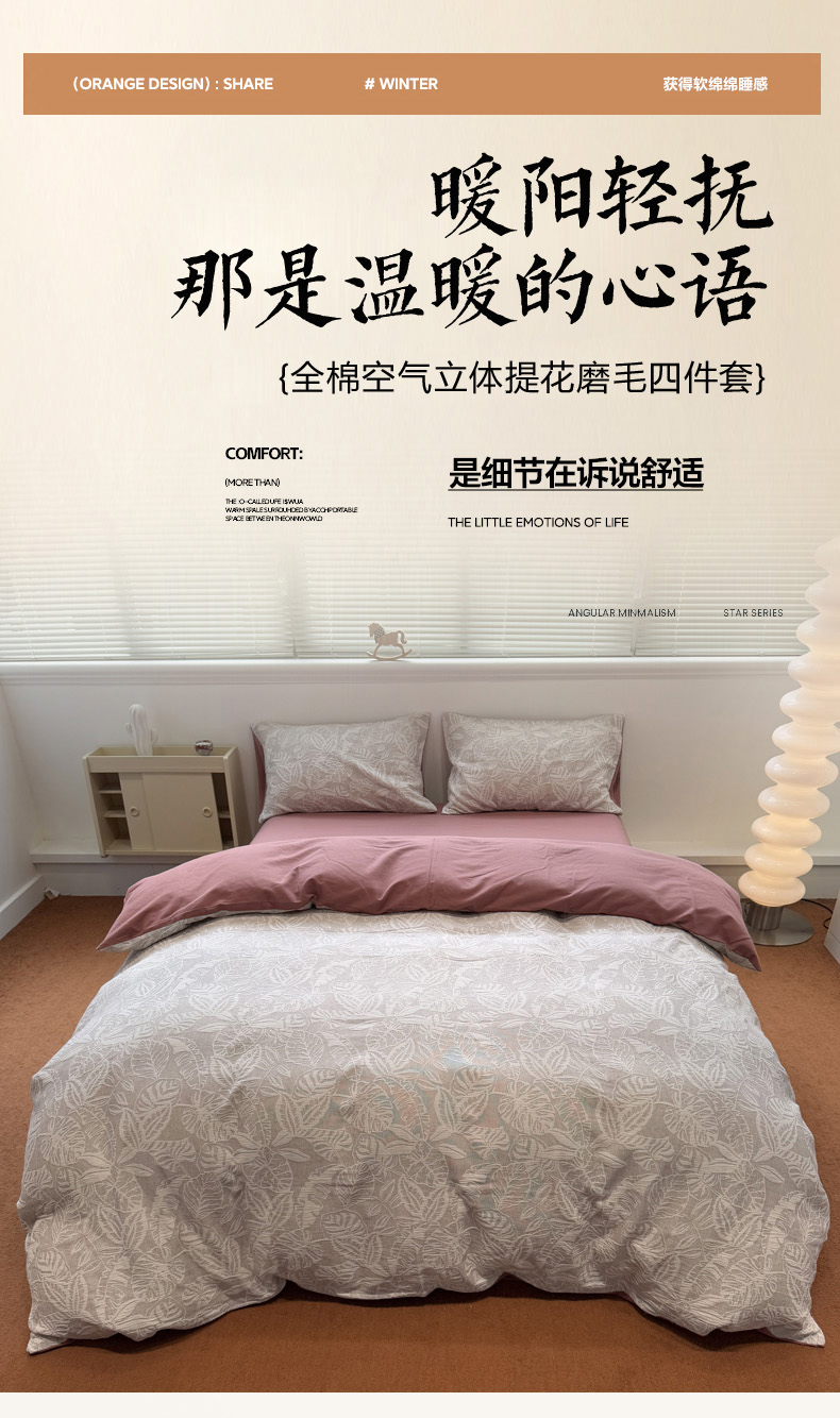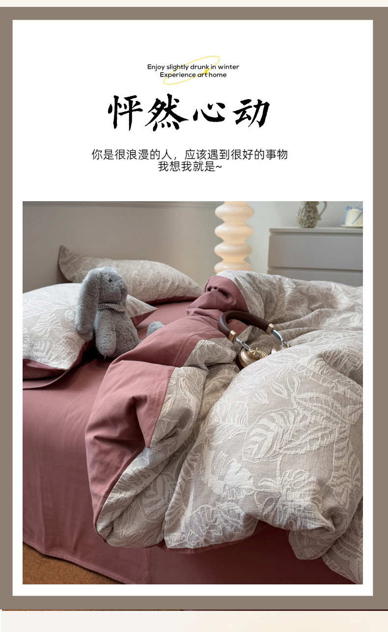 当前位置: 91家纺网 > 商品网购 > 床品套件 > 四件套 > 普通磨毛四件套 > 慕尚家纺 2025新款全棉空气立体提花磨毛四件套 繁花似锦-豆沙