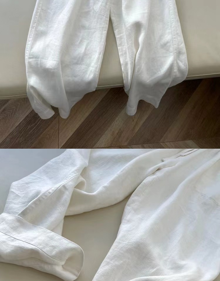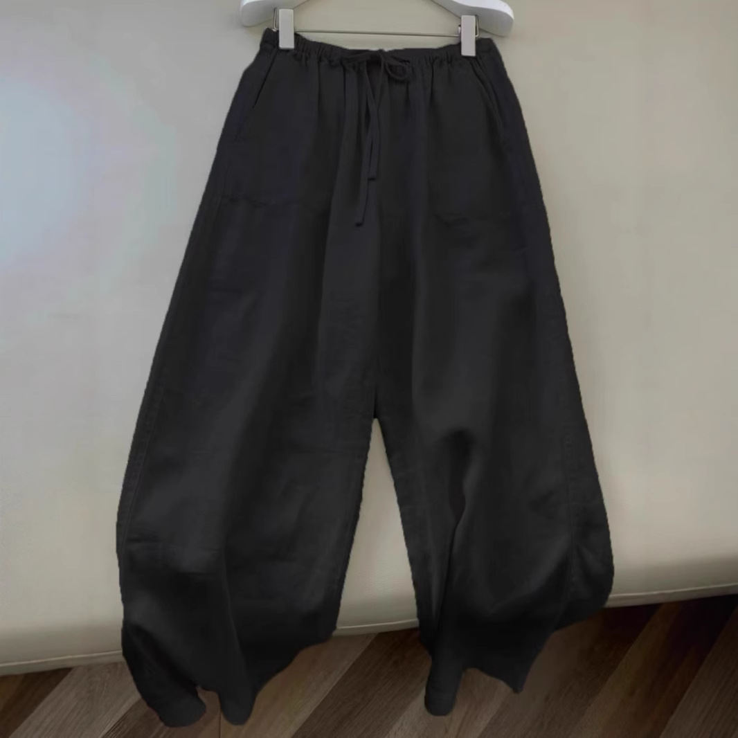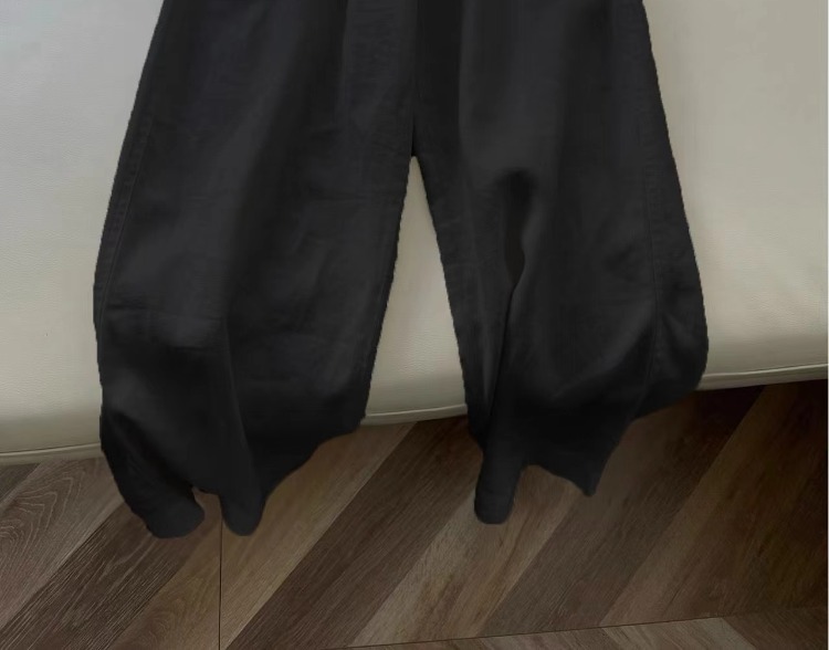 洛兰沙家居馆【只代发】【只代发】 日韩系纯棉麻阔腿直筒裤女宽松垂感大码百搭棉麻九分裤潮实拍图 黑色