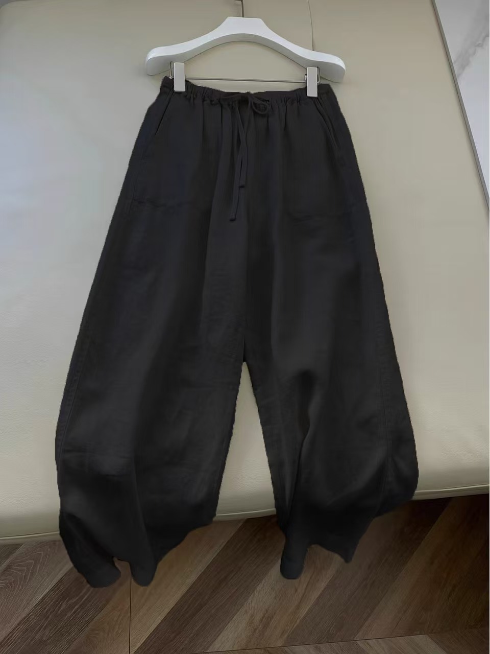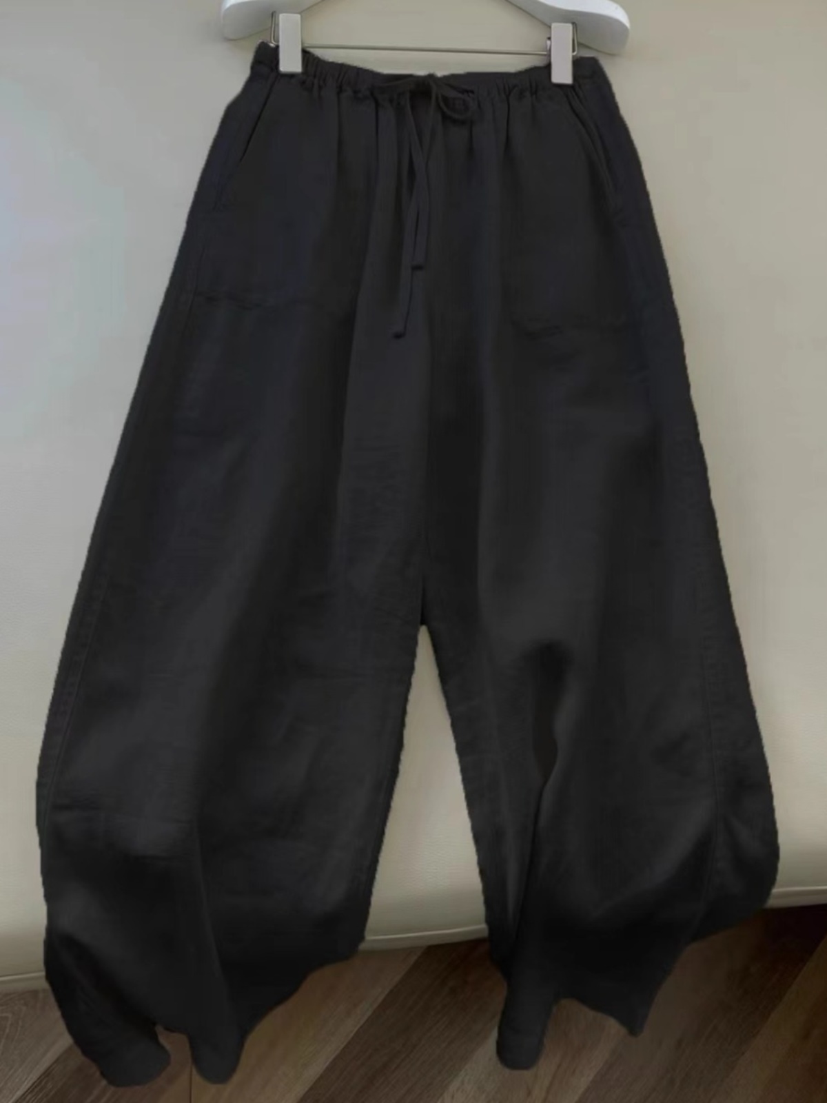 商品名称:洛兰沙家居馆【只代发】【只代发】 日韩系纯棉麻阔腿直筒裤女宽松垂感大码百搭棉麻九分裤潮实拍图 黑色