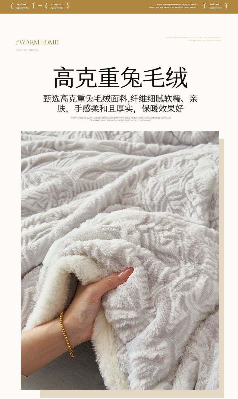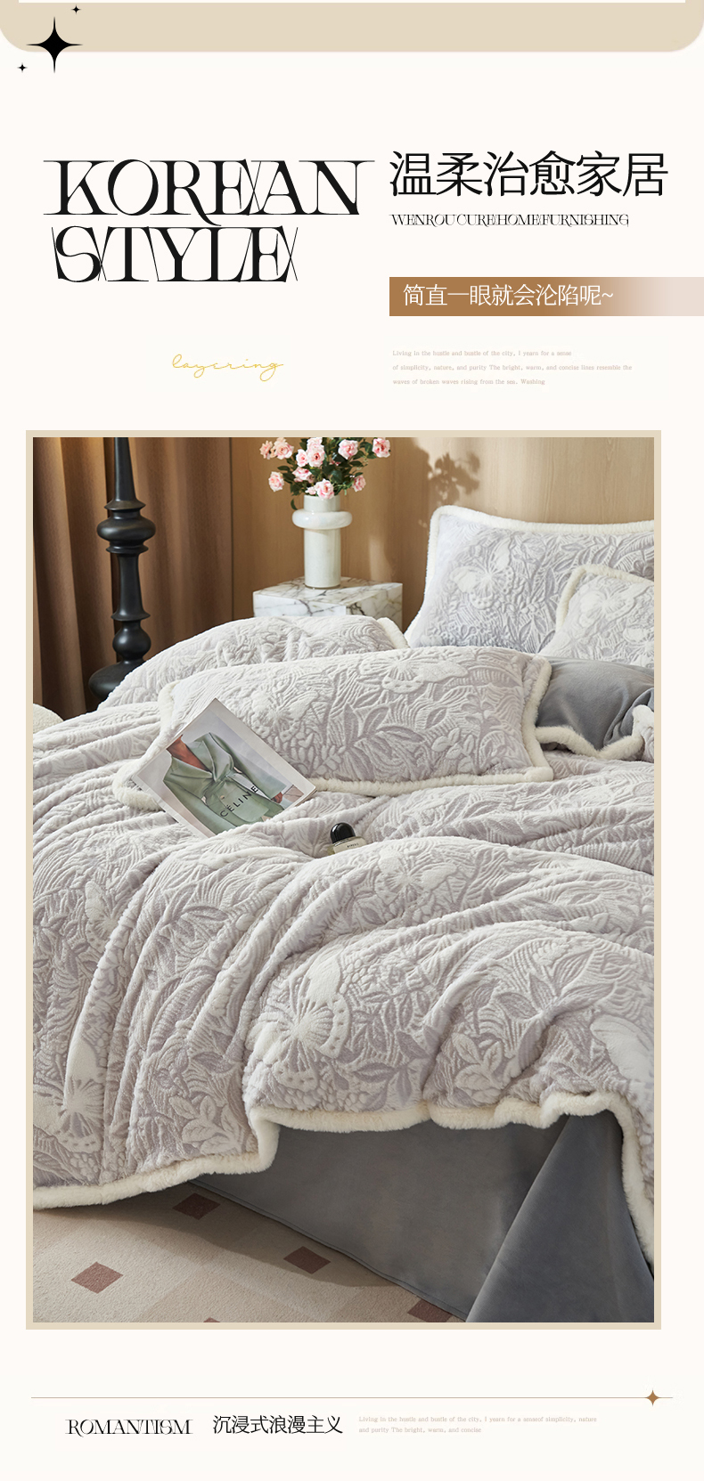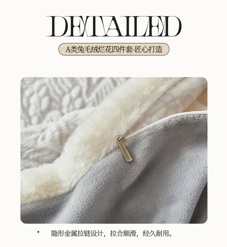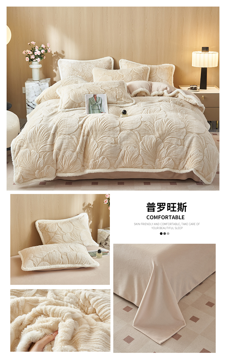 (总)金鹰 2025新款A类雕花牛奶绒烂花兔毛包边四件套,羽毛,波澜壮阔,繁花,蝴蝶梦,简爱,兰花,玫瑰物语,梦幻森林,清晨玫瑰,羽叶,仲夏晨歌