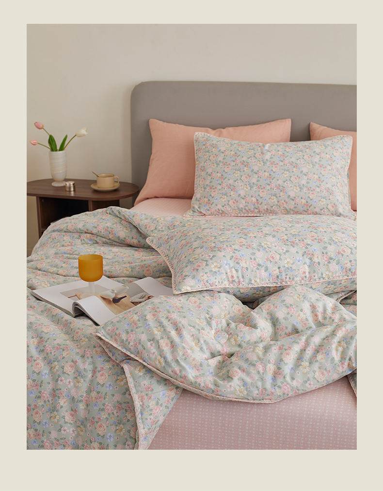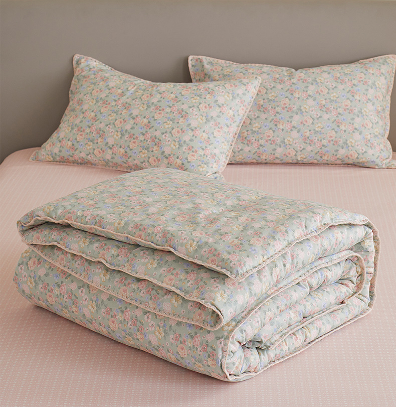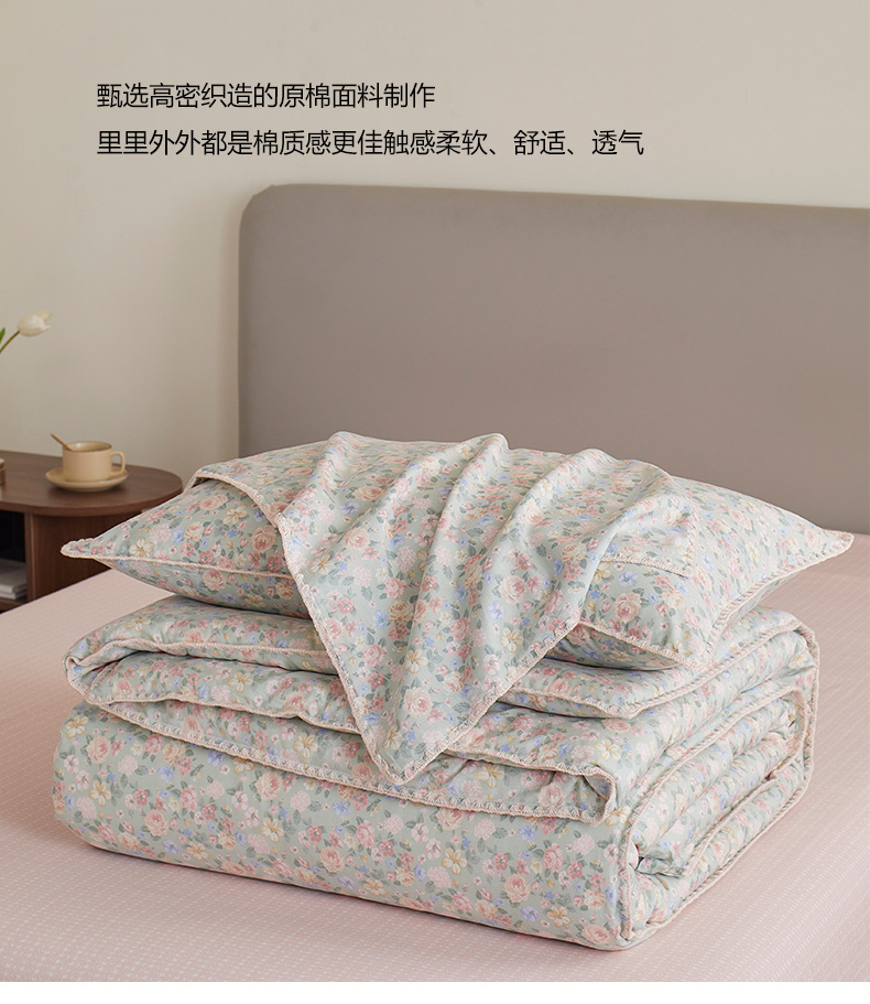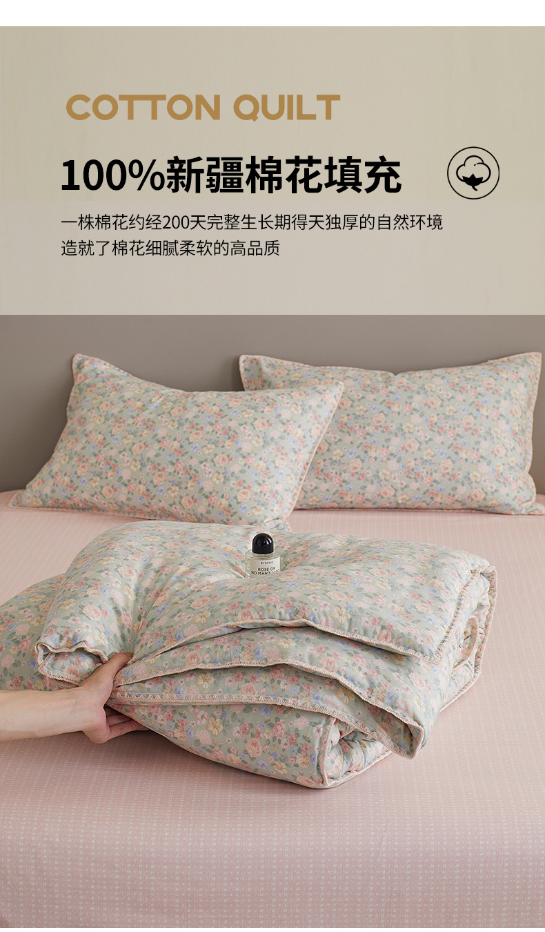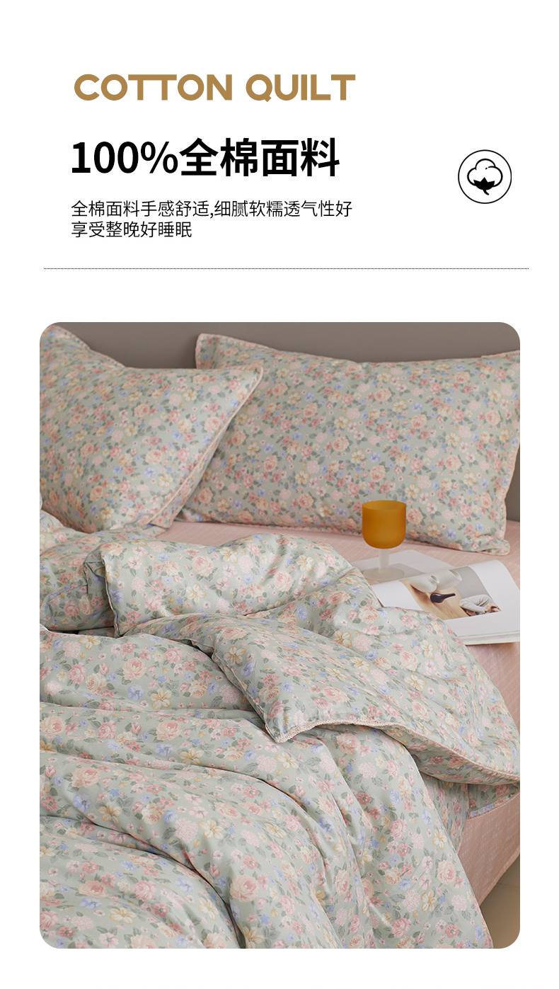 商品名称:暖阳 2025新款全棉A类里外贝壳三角针包边冬被被子被芯 柏林梦境绿