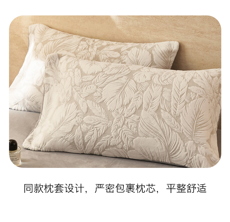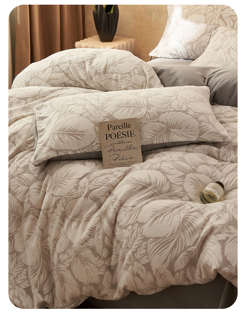 商品名称:金鹰 2025新款亲肤烂花牛奶绒四件套牛奶绒四件套 叶影