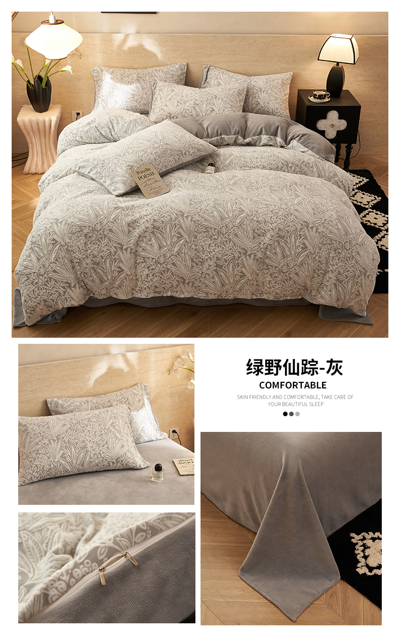 (总)金鹰 2025新款雕花烂花牛奶绒四件套,梦回唐朝,爱丽丝,蝴蝶结,花朝梦,浪漫人生,流年花束,绿野仙踪-灰,绿野仙踪-驼,玫瑰恋情,叶茂,叶叶生辉,叶影