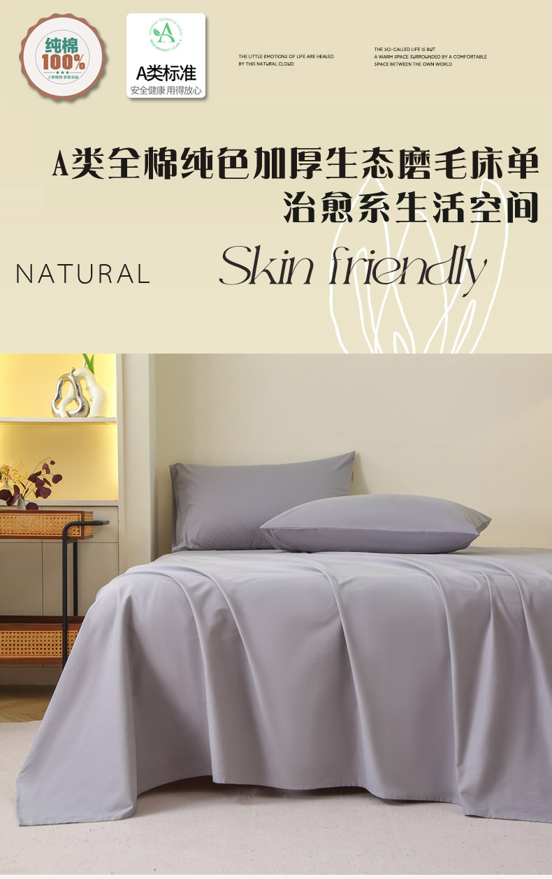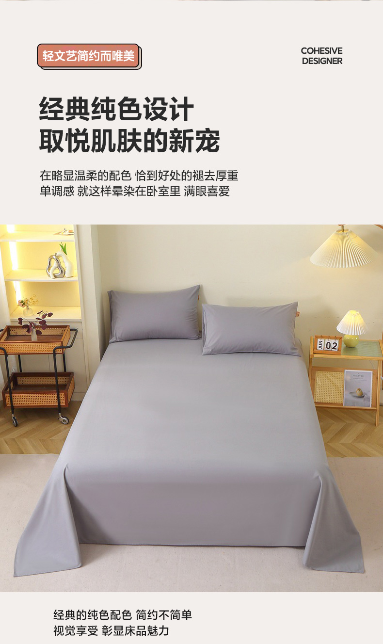 当前位置: 91家纺网 > 商品网购 > 跨境商品 > 床上用品(Bedding) > 床单床罩(Bedspreads Coverlets & Set > 晶缦家纺 2025新款100%纯棉13376纯色喷气全棉磨毛四件套和单品被套床单床笠枕套-单床单 暖芸馨-浅青灰