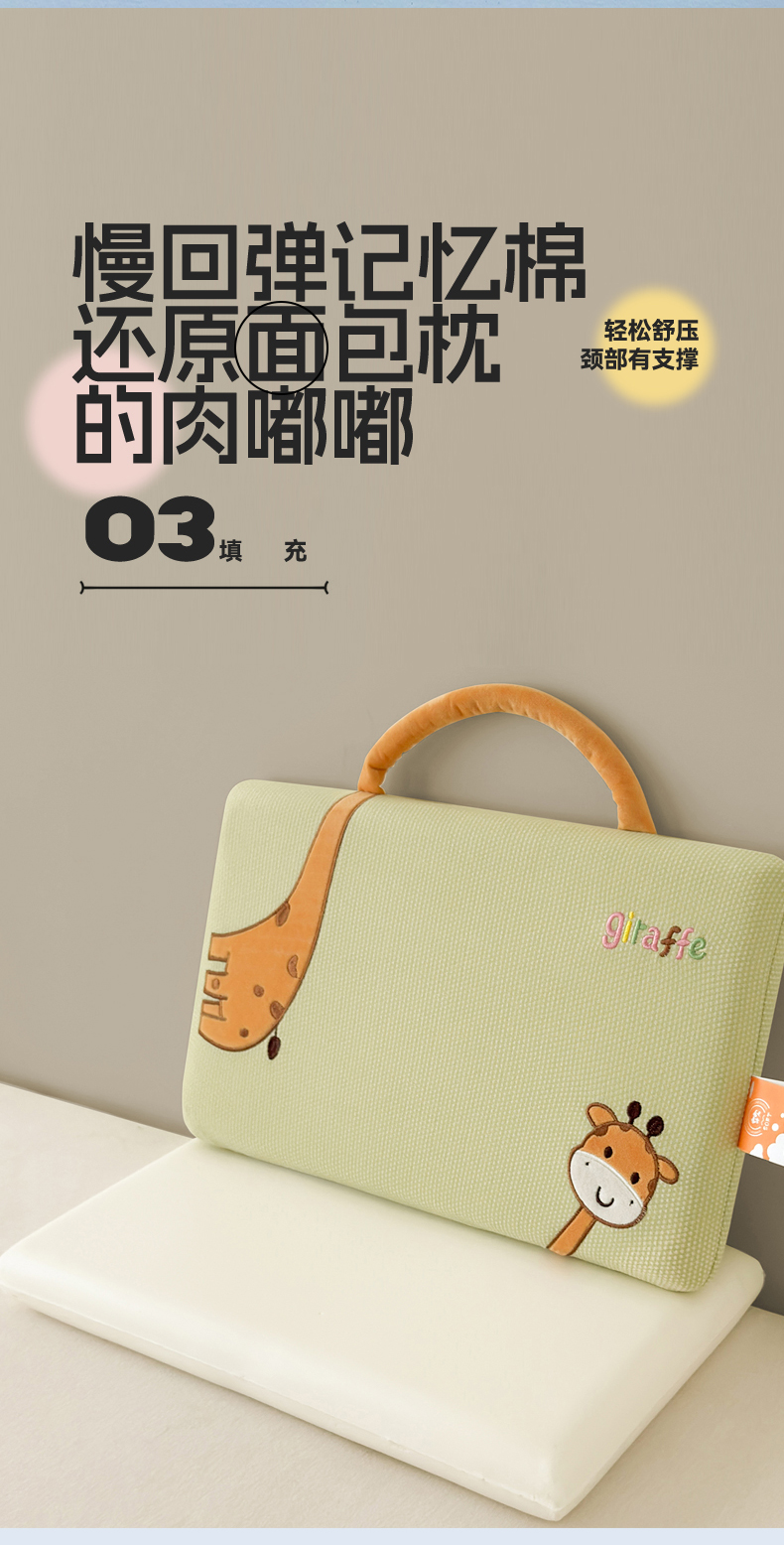 当前位置: 91家纺网 > 商品网购 > 枕头/枕芯/保健枕/颈椎枕 > 枕头枕芯 > 麦肯锡 2025新款长颈鹿面包儿童记忆枕 枕头枕芯 绿色/只