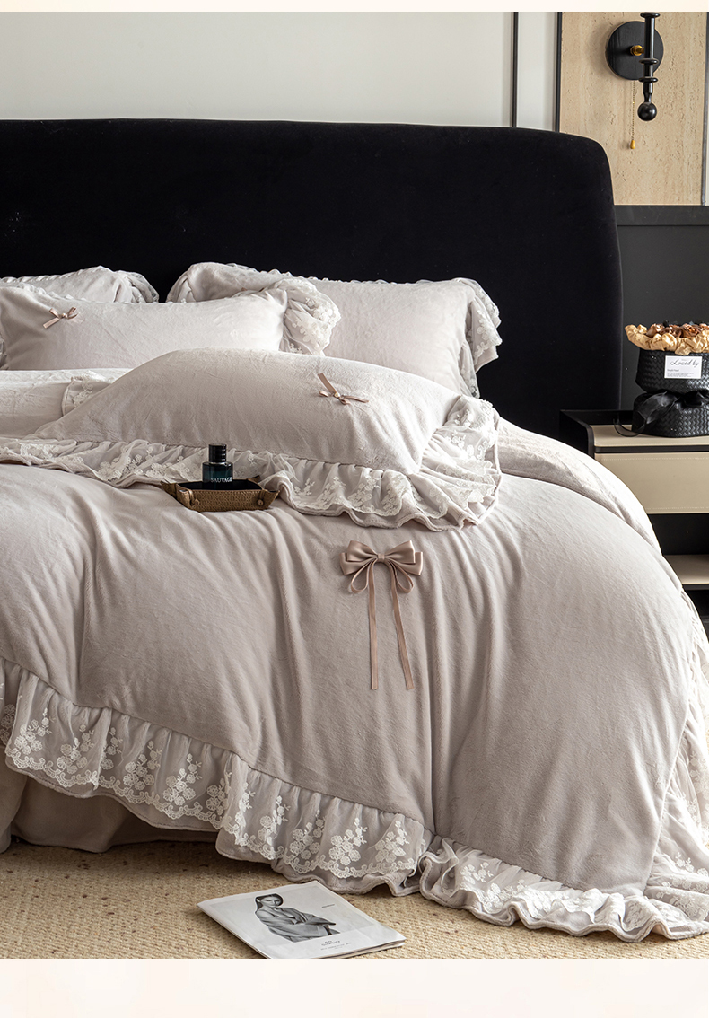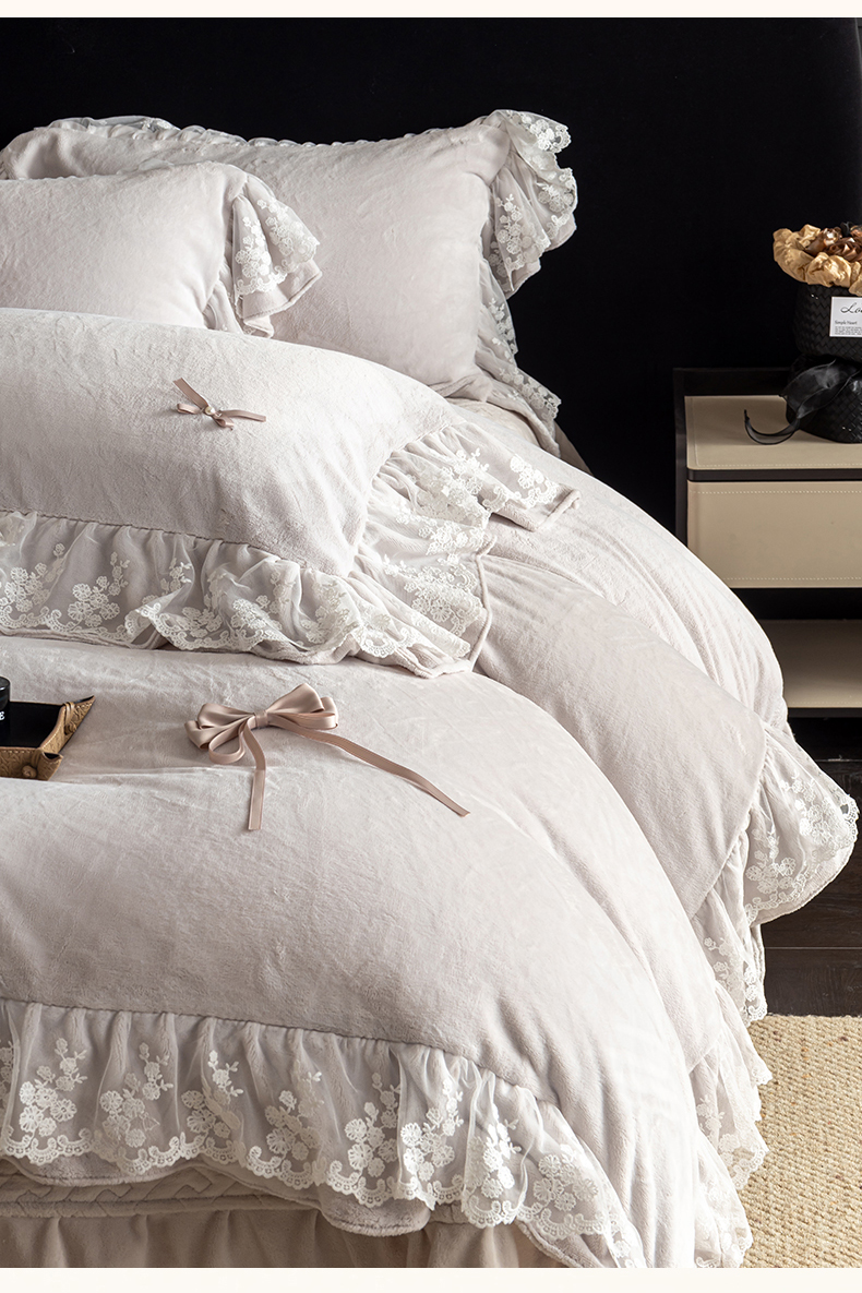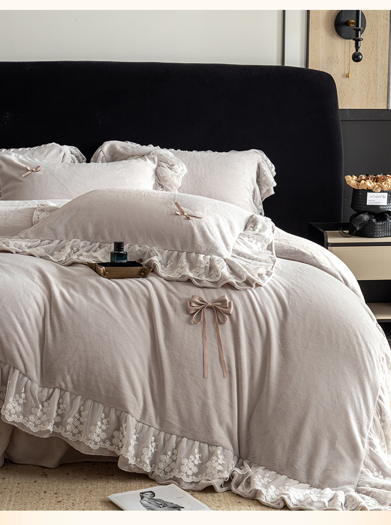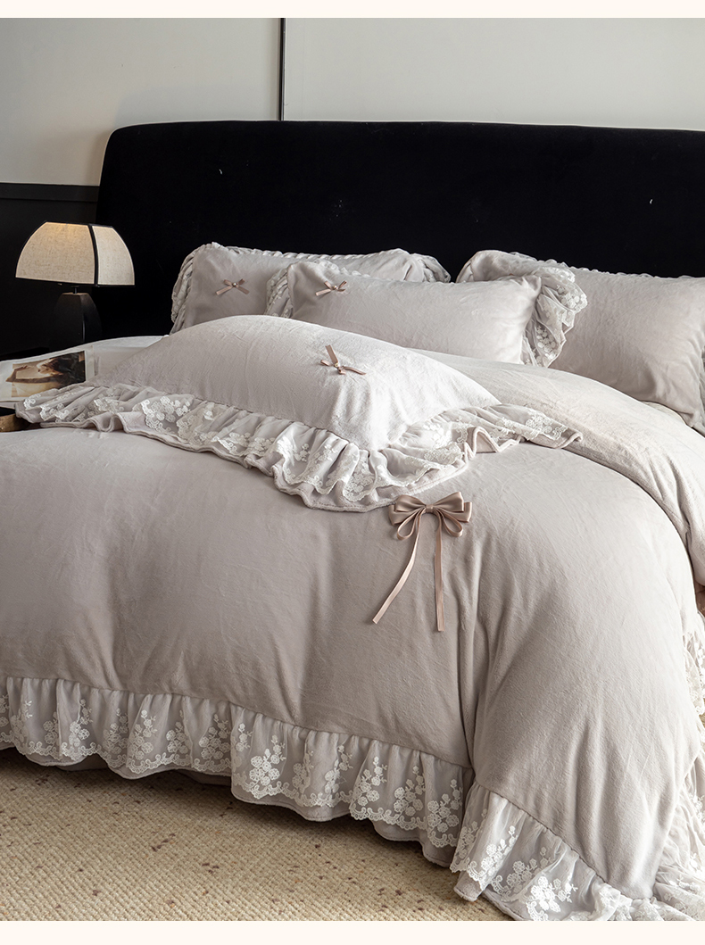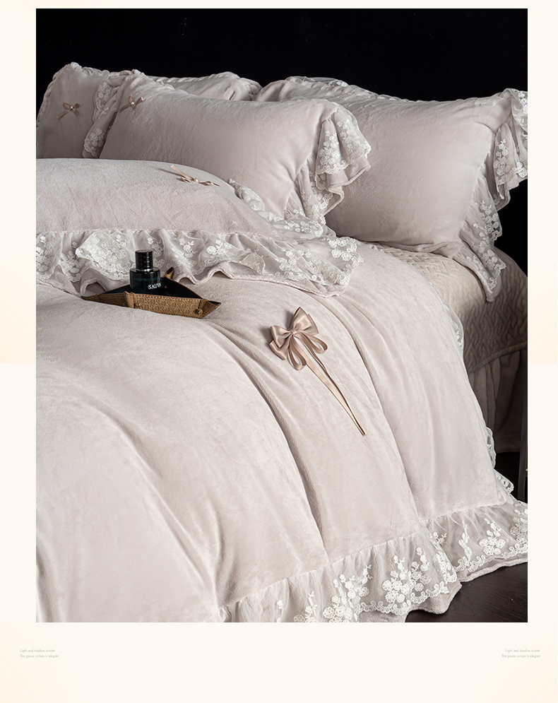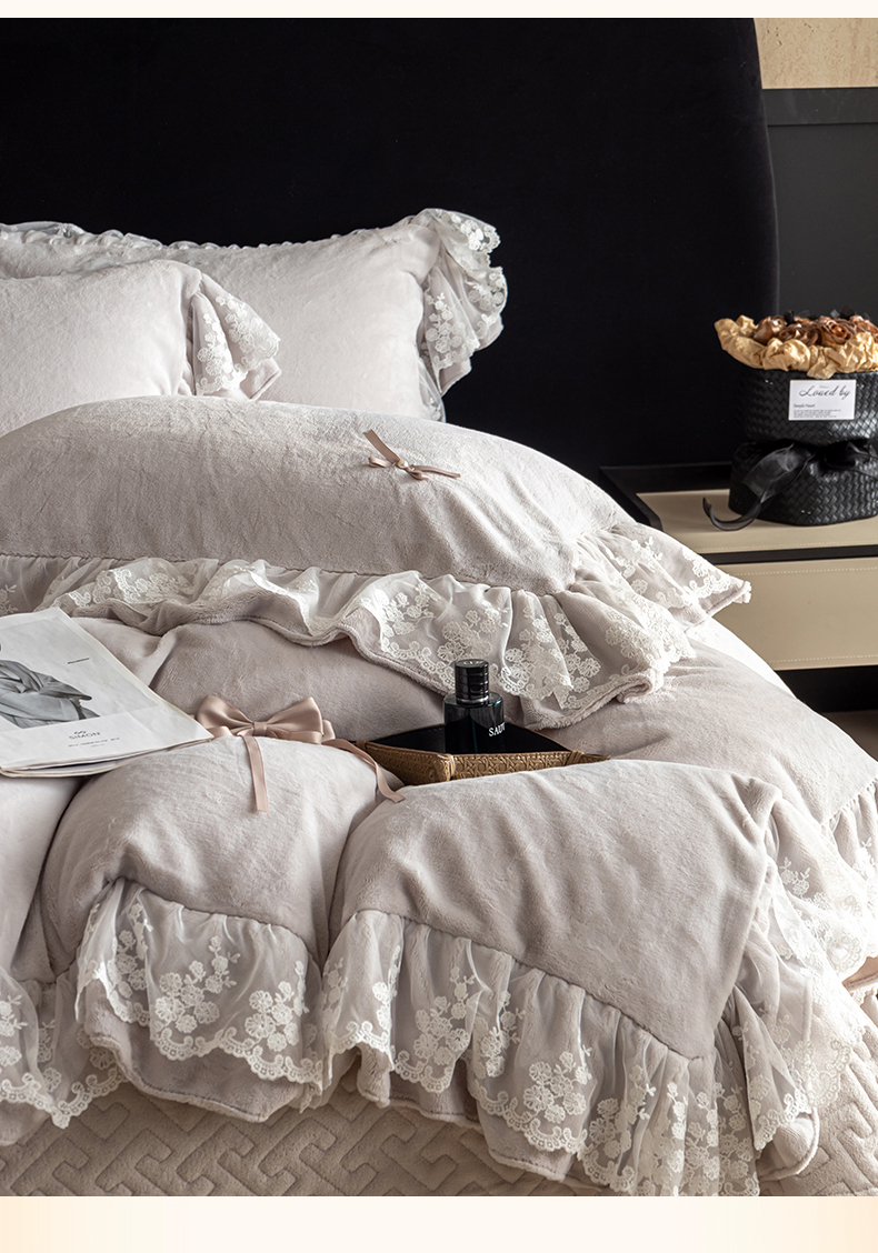商品名称:罗优家纺 2025新款柔梦花边款暖绒四件套 柔雅灰