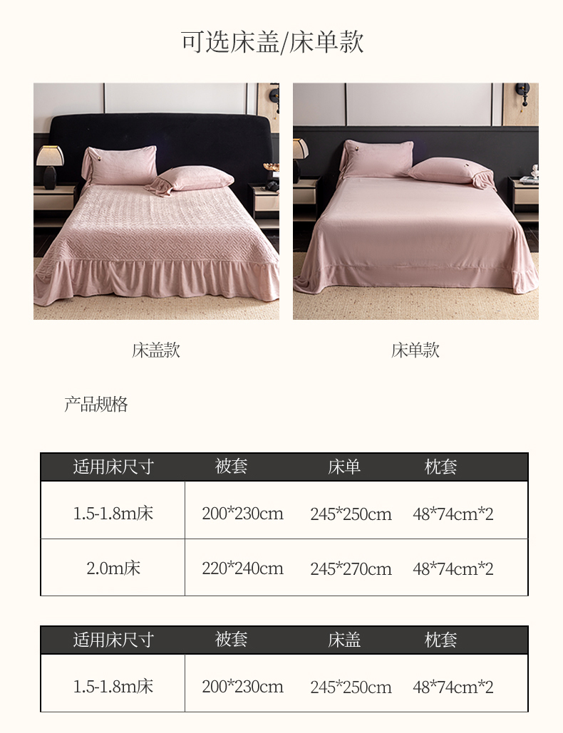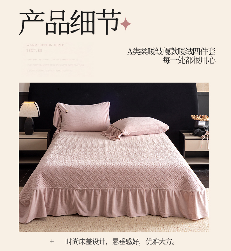 (总)罗优家纺 2025新款柔暖皱幔款暖绒四件套,浅粉,浅灰,浅蓝,浅杏