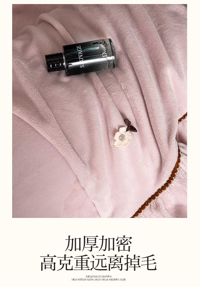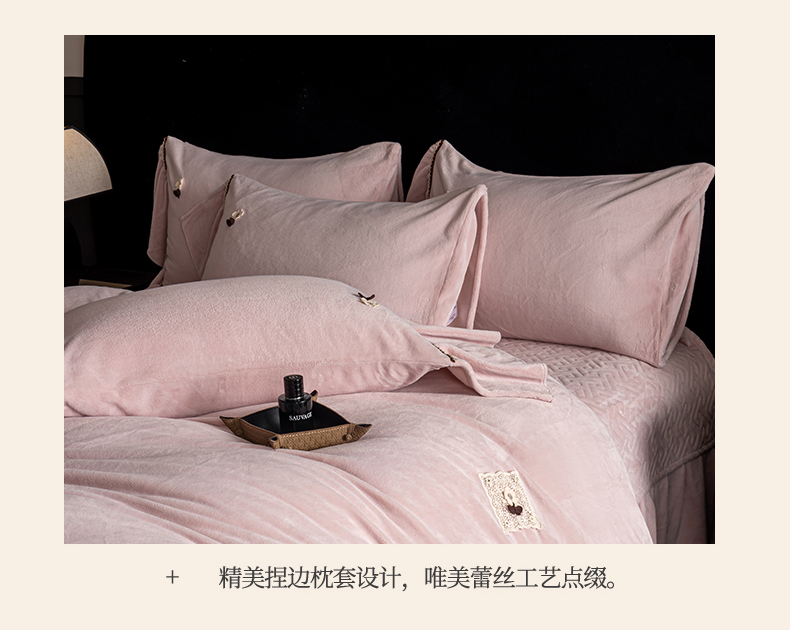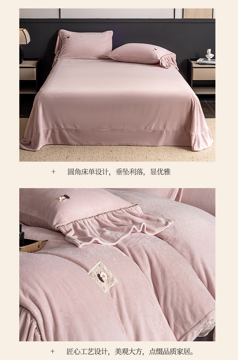 商品名称:罗优家纺 2025新款柔暖皱幔款暖绒四件套 浅粉
