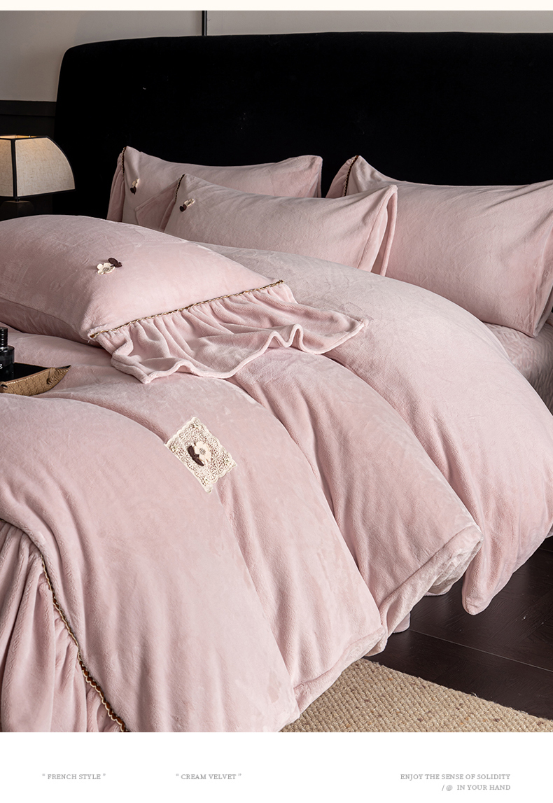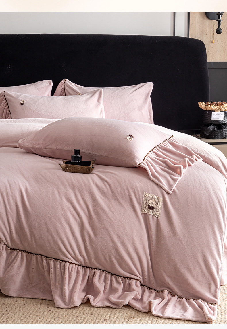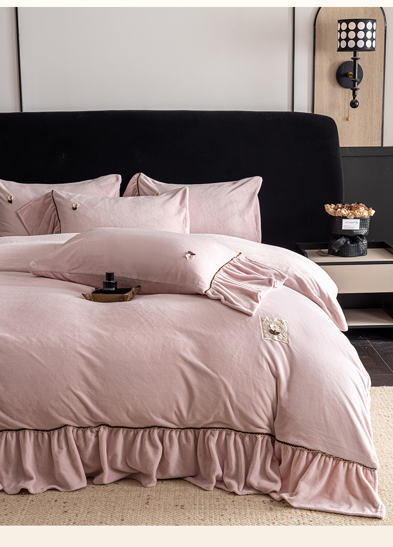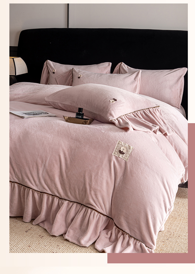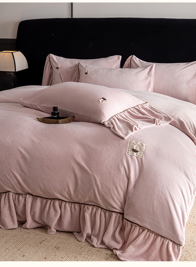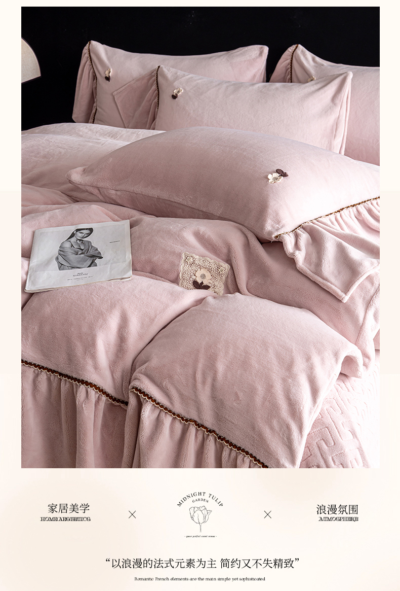 罗优家纺 2025新款柔暖皱幔款暖绒四件套 浅粉