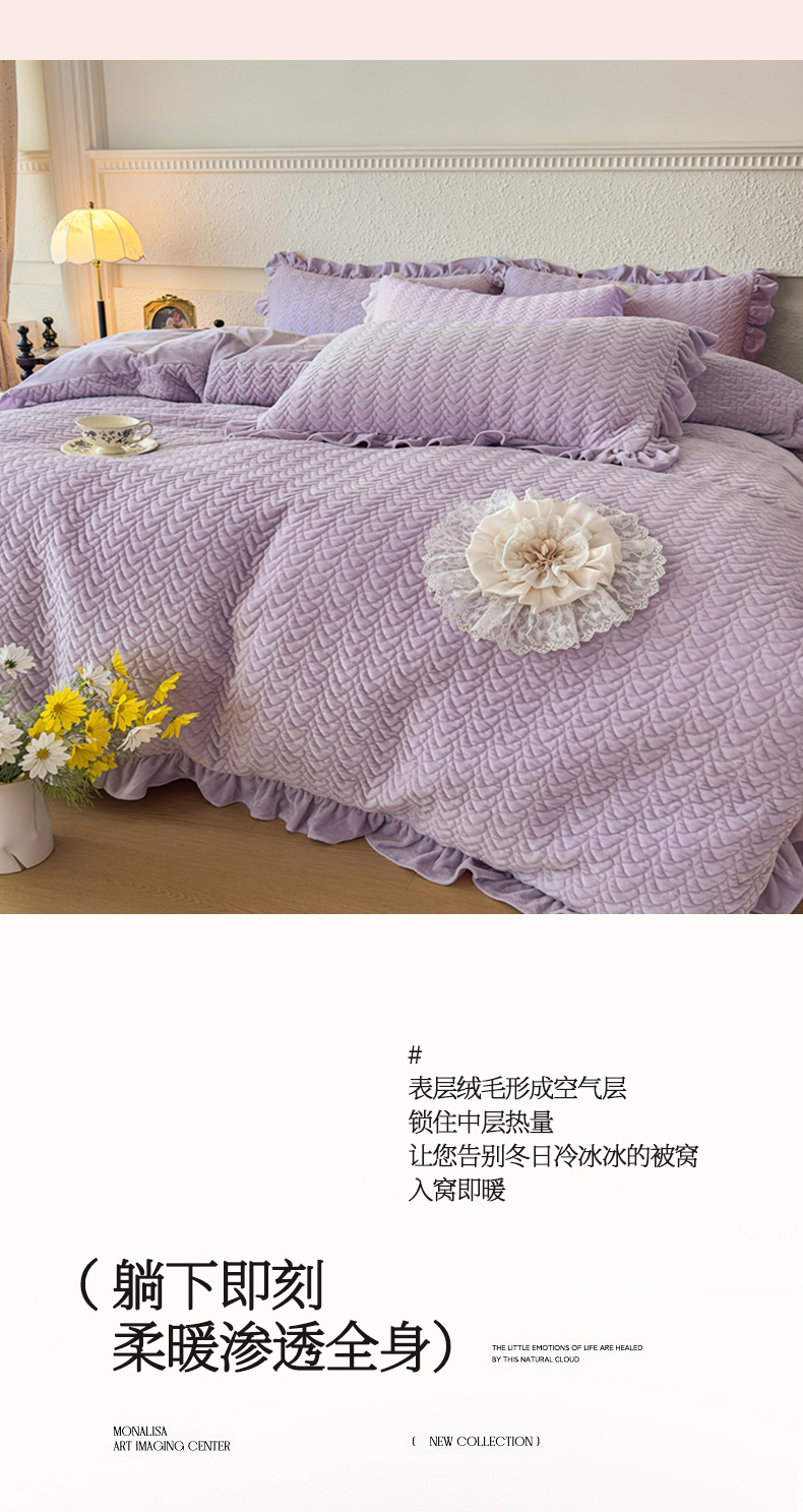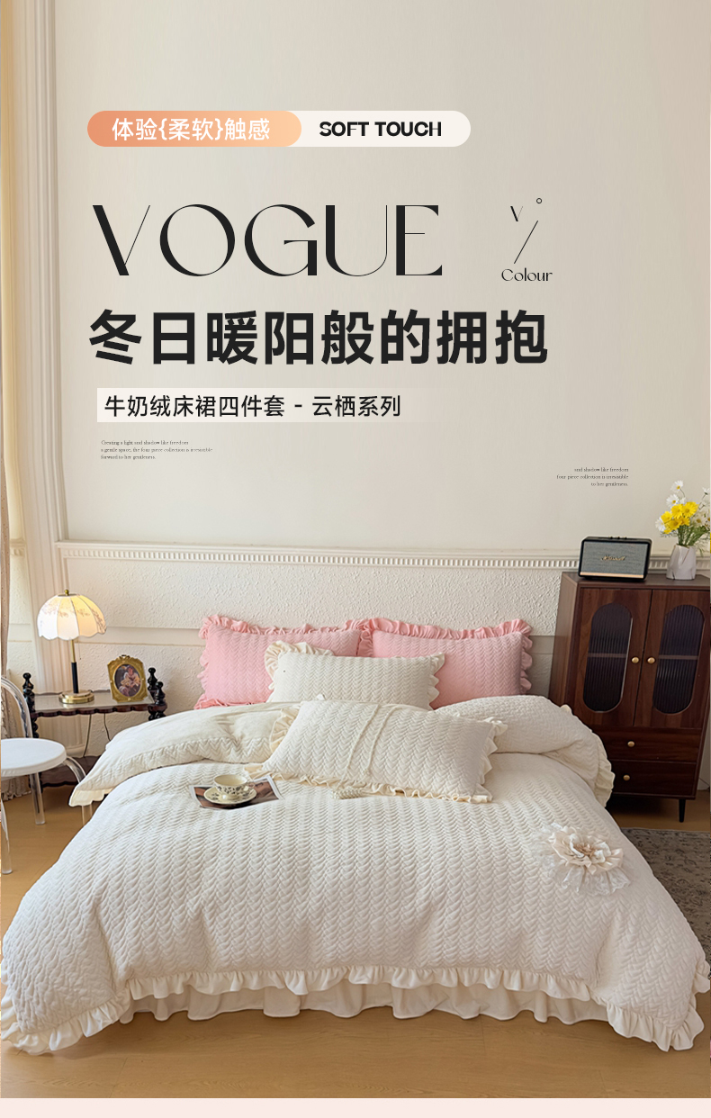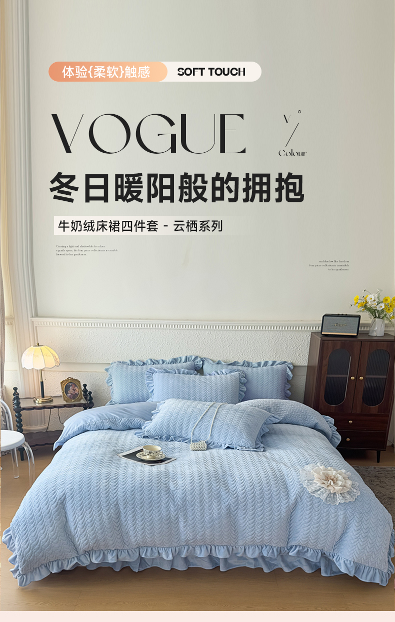 (总)乐嘉盈2025年新款纯色刺绣床裙款牛奶绒四件套-云栖