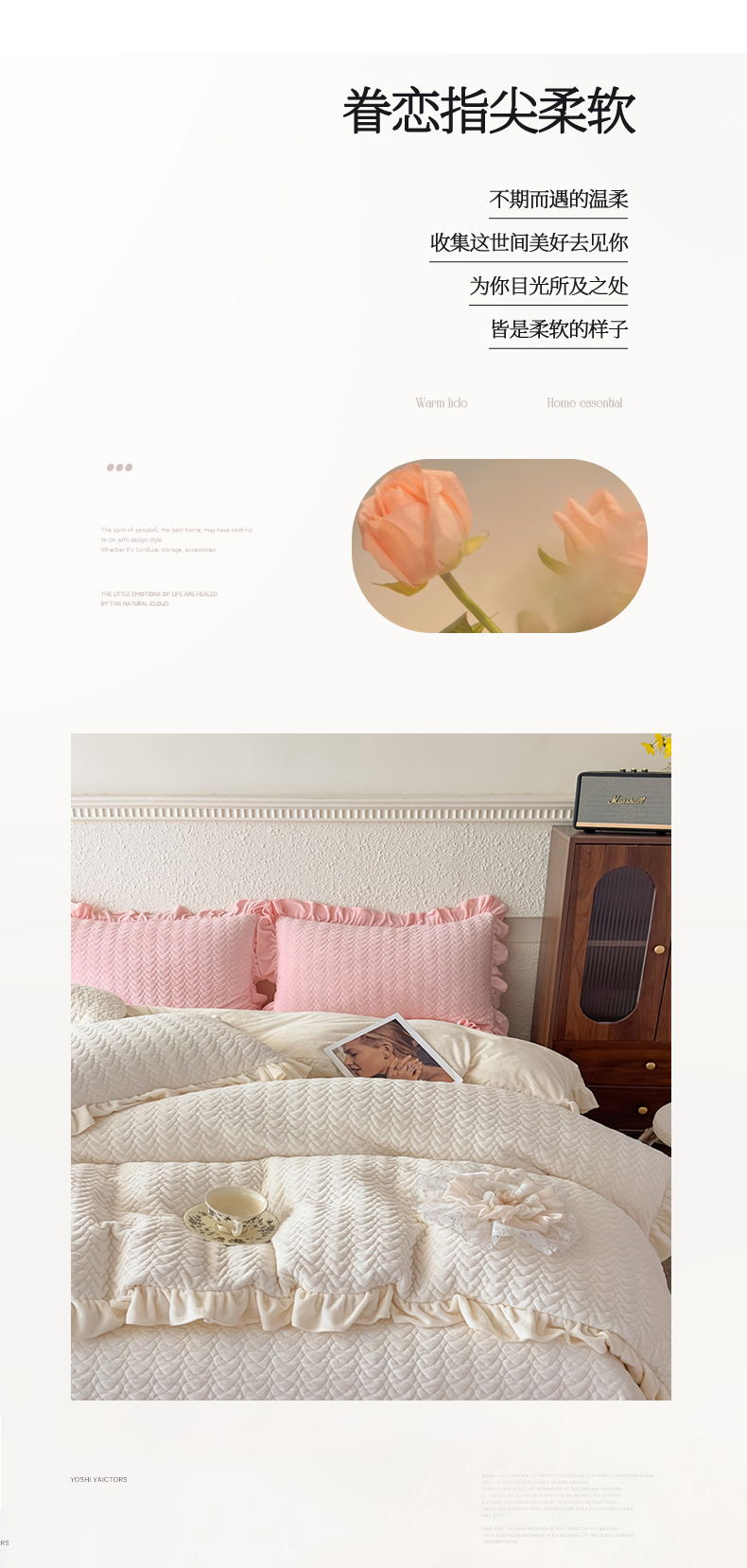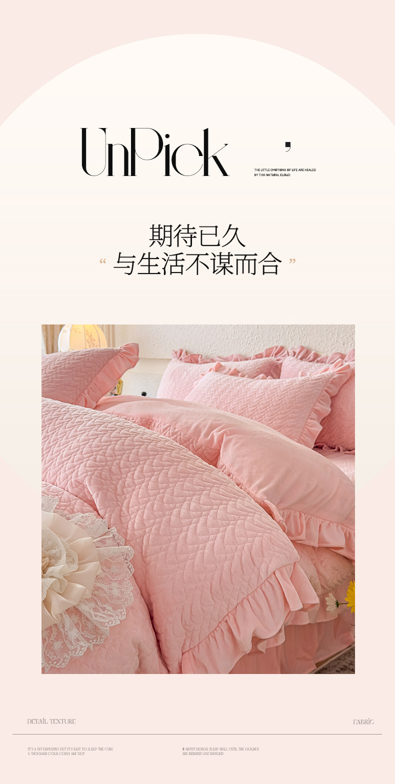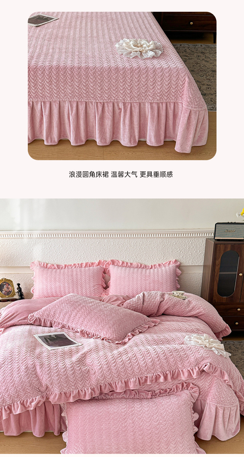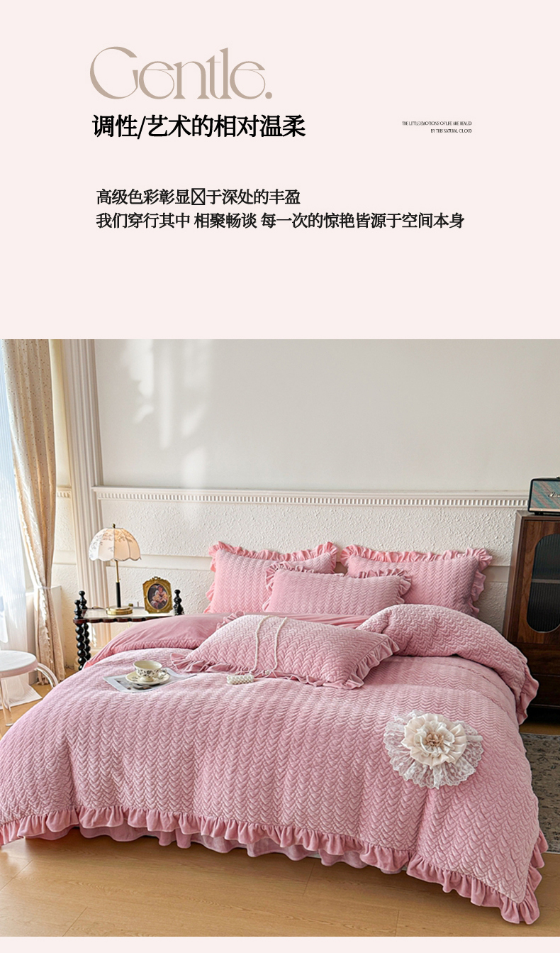 (总)乐嘉盈 2025年新款纯色雕花牛奶绒四件套,粉色