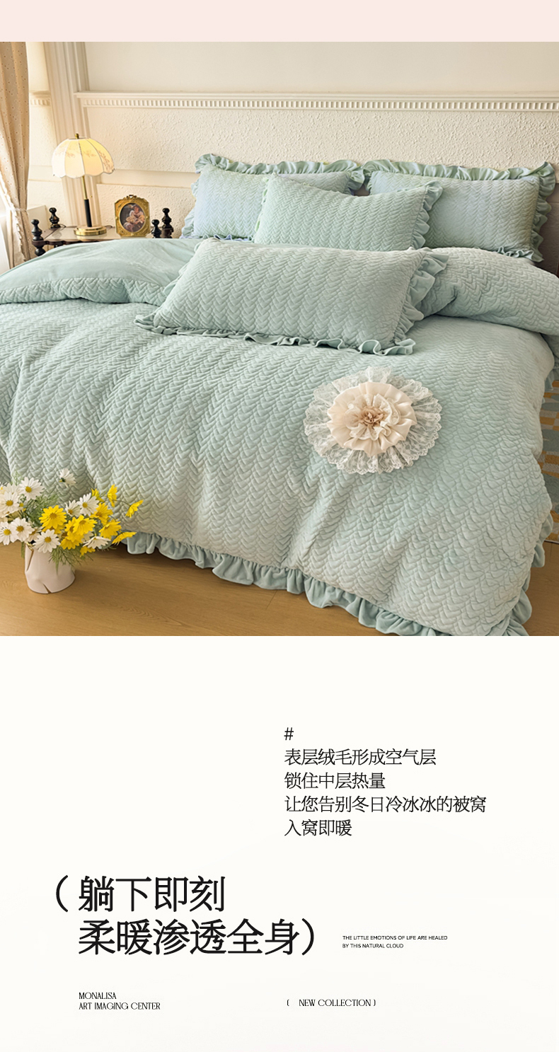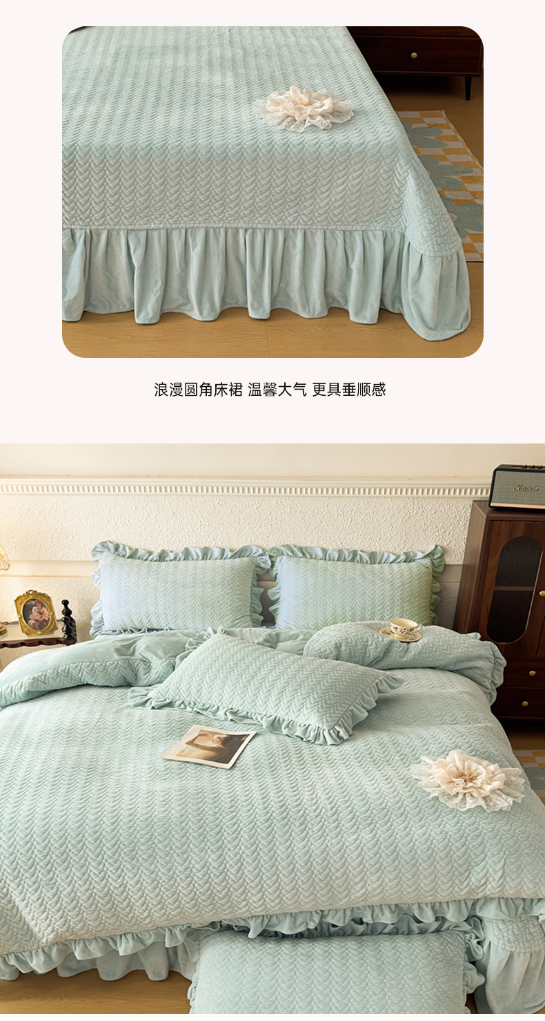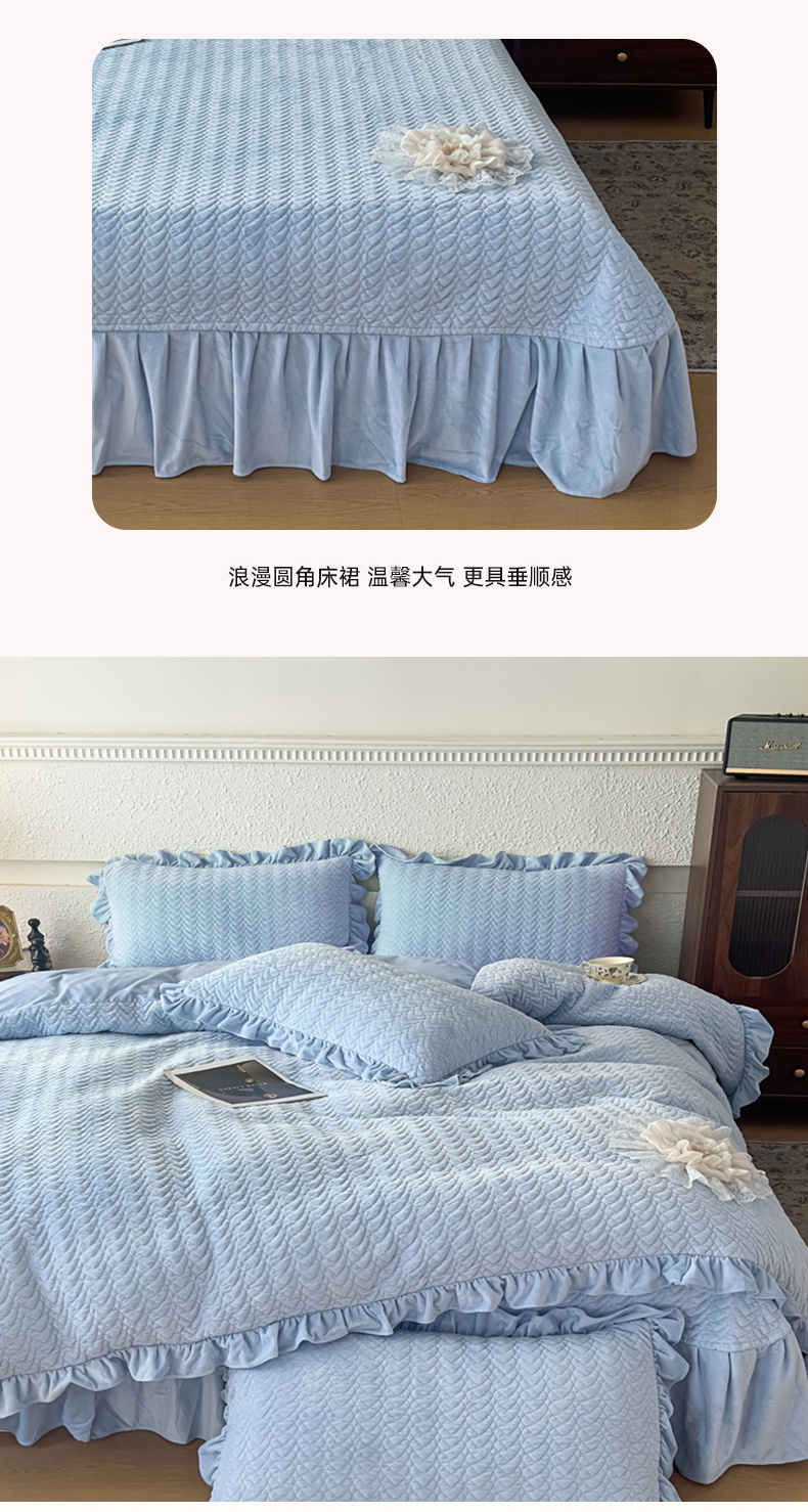 商品名称:(总)乐嘉盈2025年新款纯色刺绣床裙款牛奶绒四件套-云栖