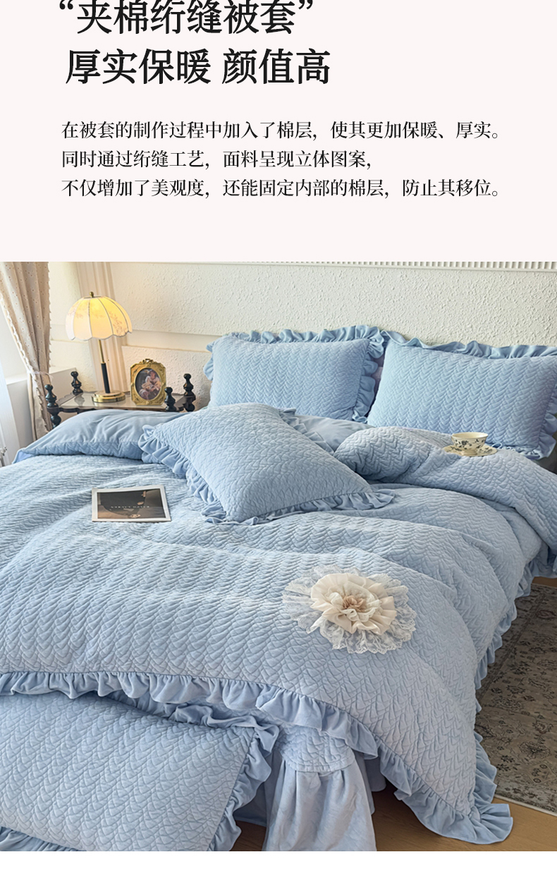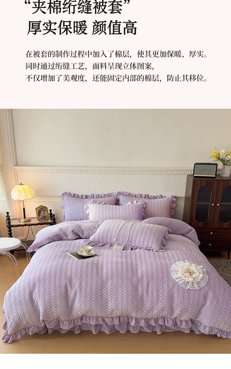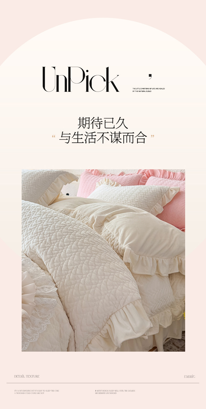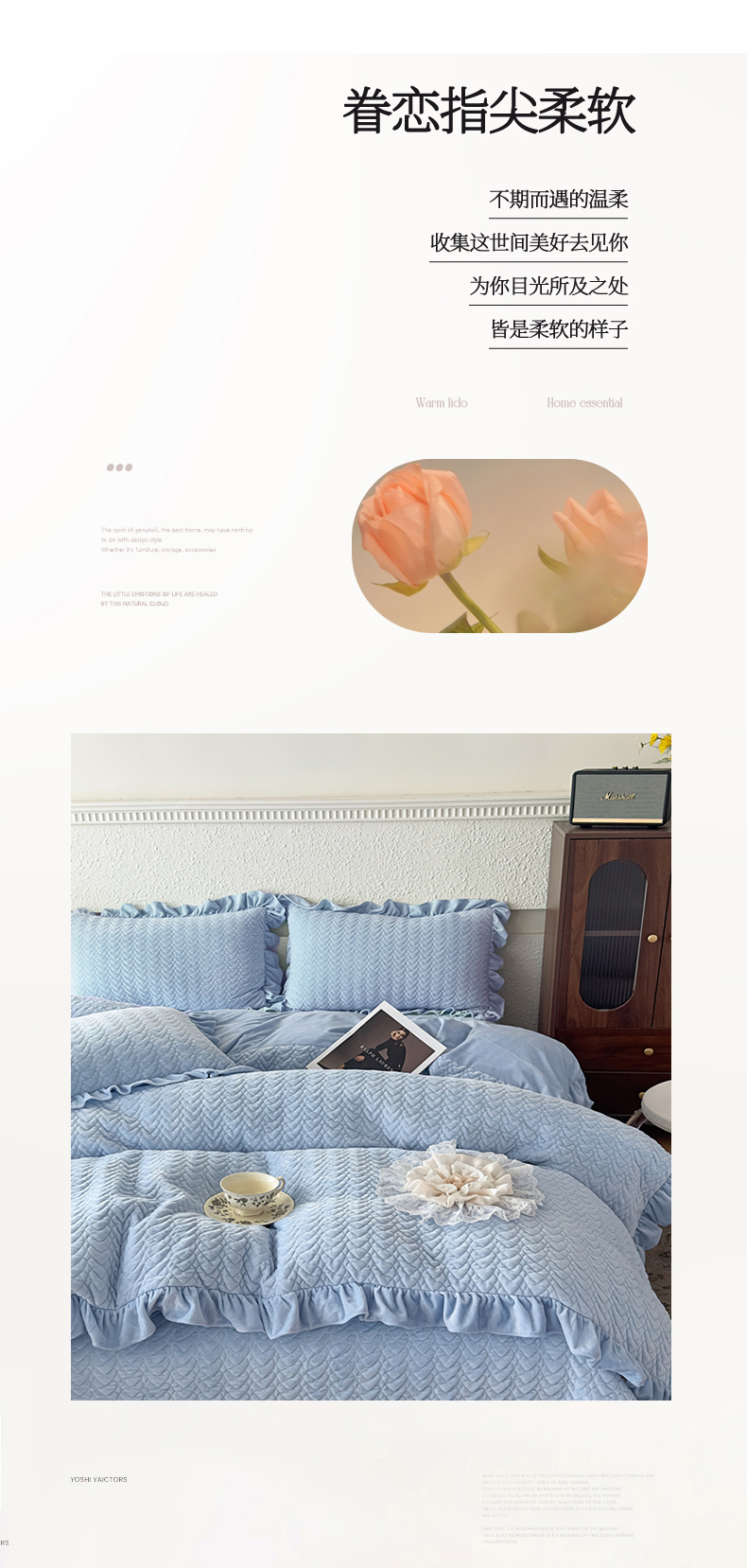 商品名称:(总)乐嘉盈2025年新款纯色刺绣床裙款牛奶绒四件套-云栖
