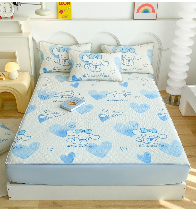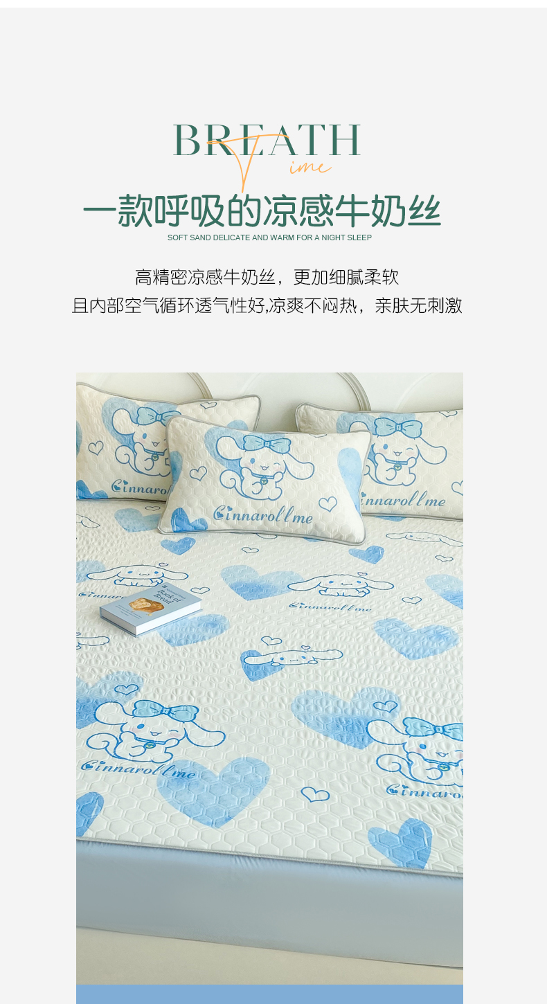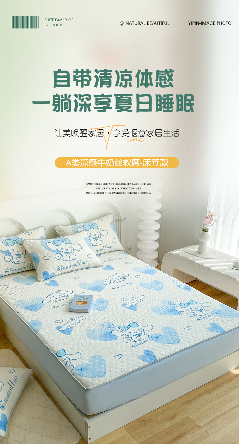 • 91家纺网 家纺一手货源 找家纺 一电 2025新款牛奶丝凉席床笠可水洗凉感丝凉席学生宿舍单人裸睡空调席-系列一 爱心玉桂狗