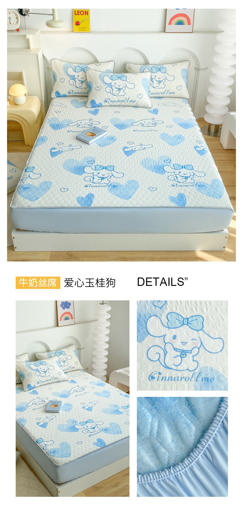 一电 2025新款牛奶丝凉席床笠可水洗凉感丝凉席学生宿舍单人裸睡空调席-系列一 爱心玉桂狗