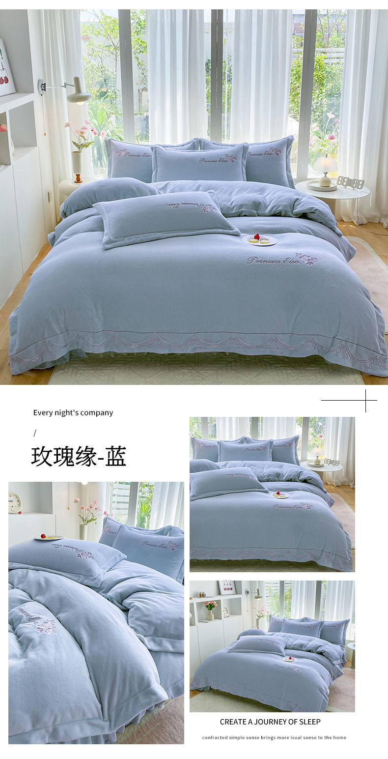当前位置: 91家纺网 > 商品网购 > 床品套件 > 四件套 > 牛奶绒四件套 > 乐嘉盈 2025年新款纯色刺绣牛奶绒四件套-玫瑰缘 玫瑰缘-蓝