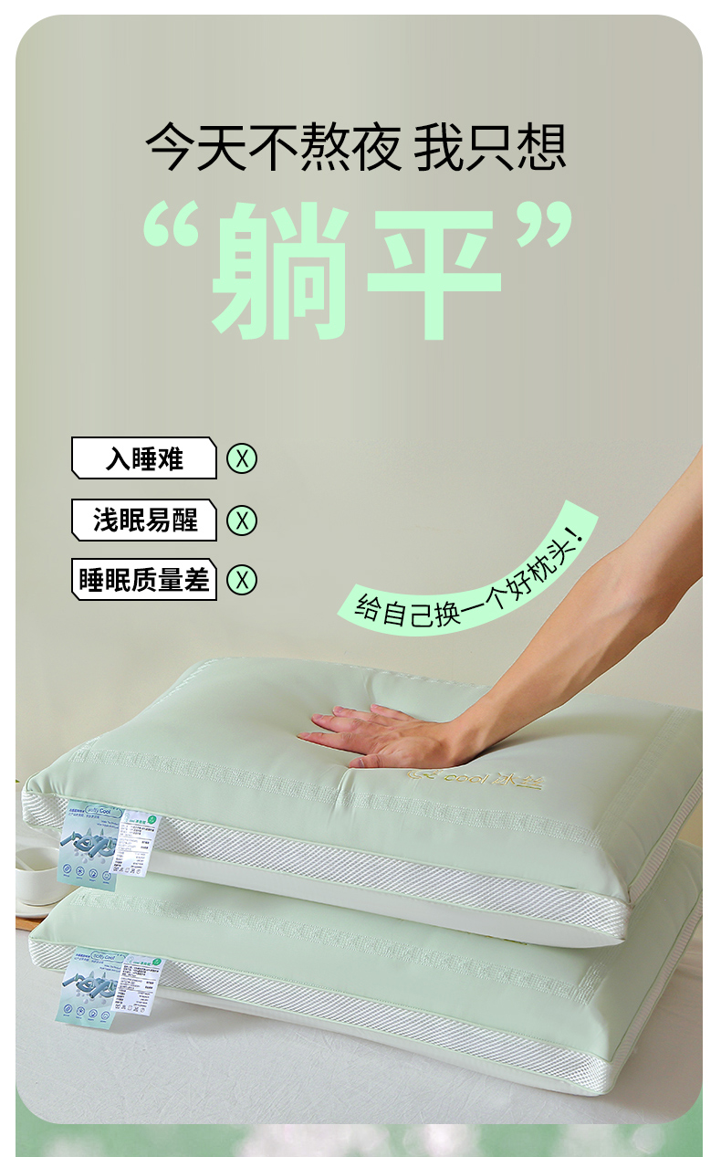 十仟家纺 2025新款亲肤柔软凉感冰丝枕零度冰丝乳胶枕 零度冰丝乳胶枕-浅黄