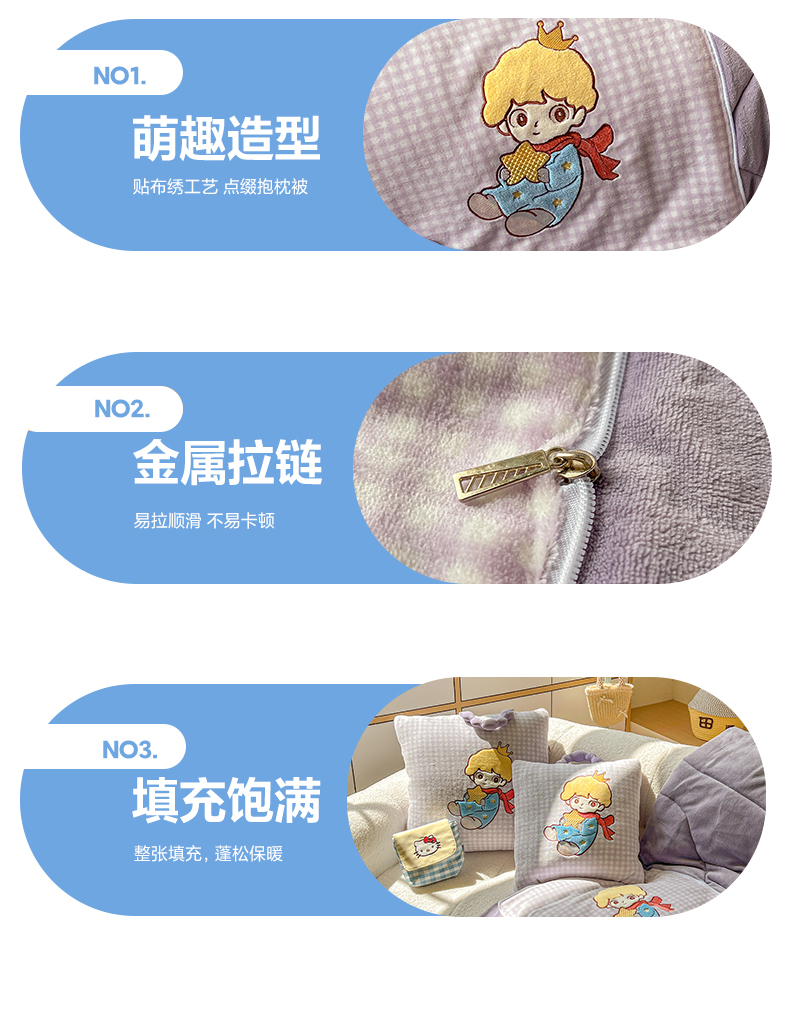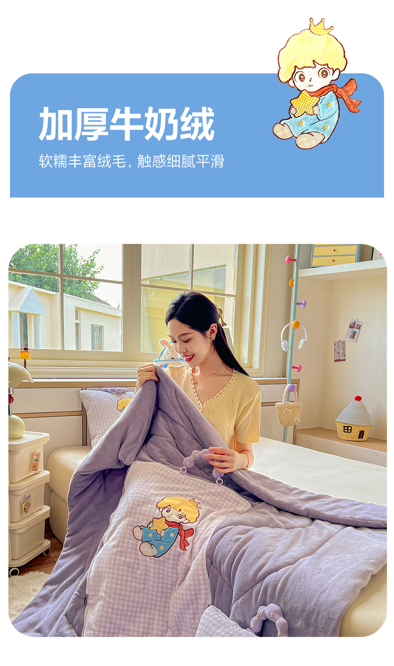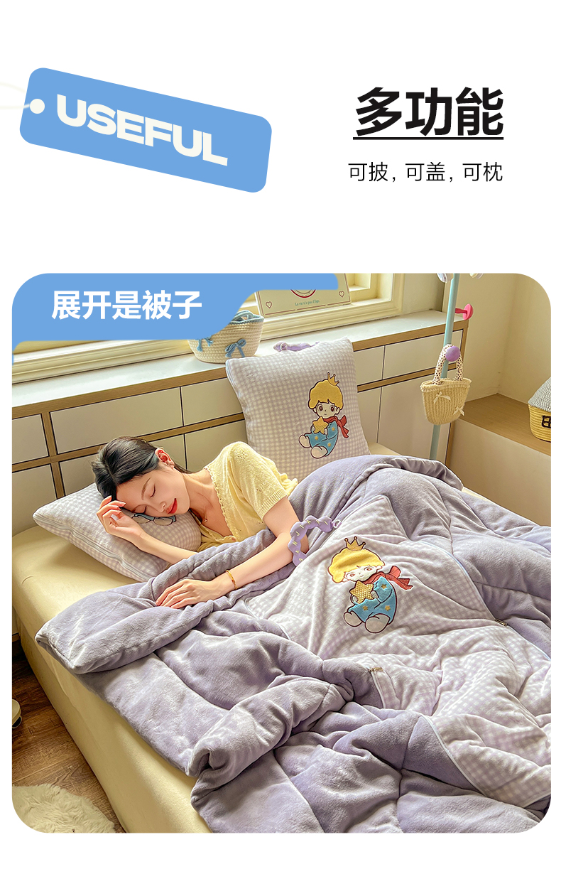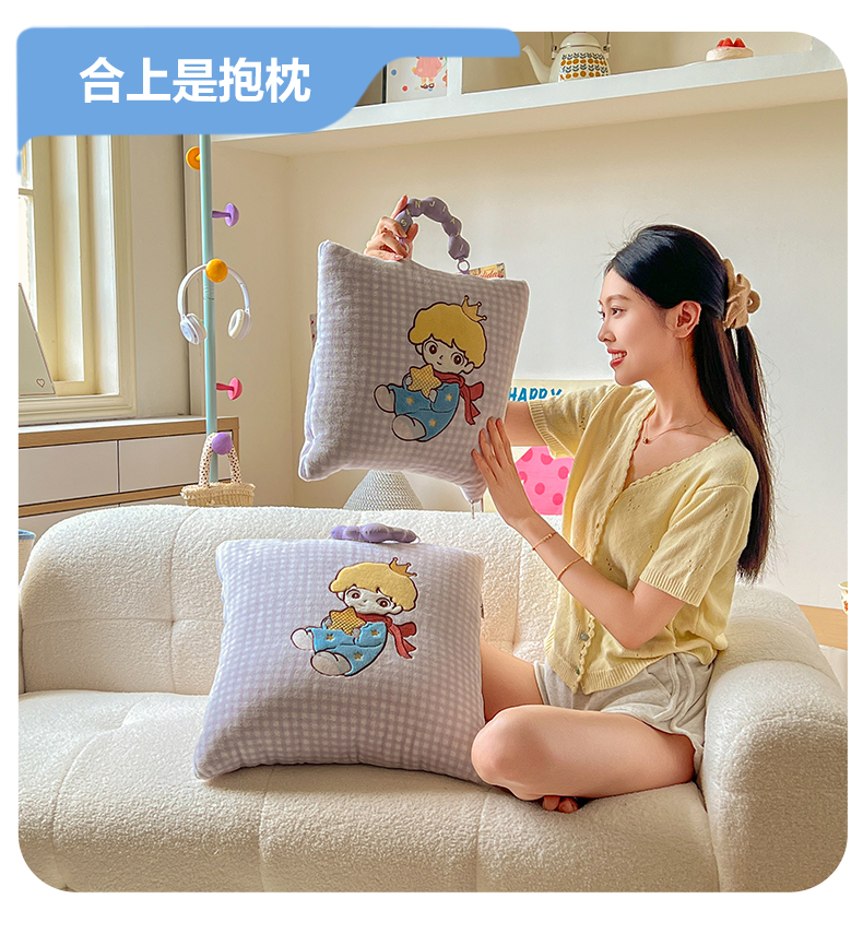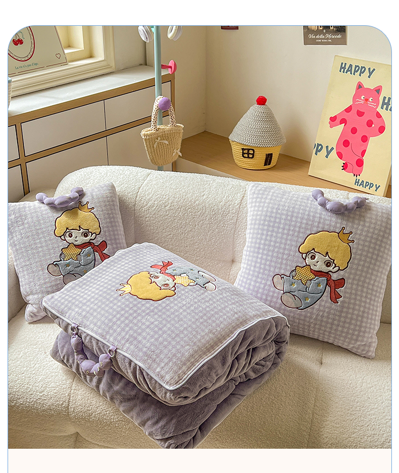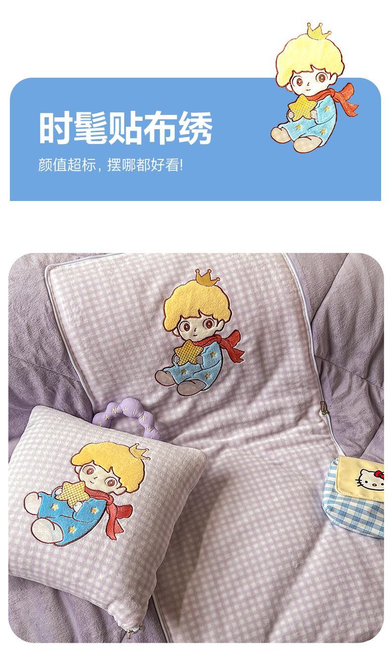 商品名称:番茄+ 2025新款加厚牛奶绒小王子抱枕 格子紫