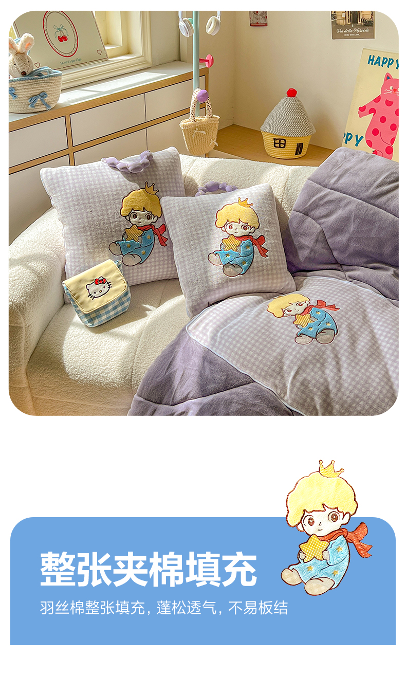 番茄+ 2025新款加厚牛奶绒小王子抱枕 格子紫