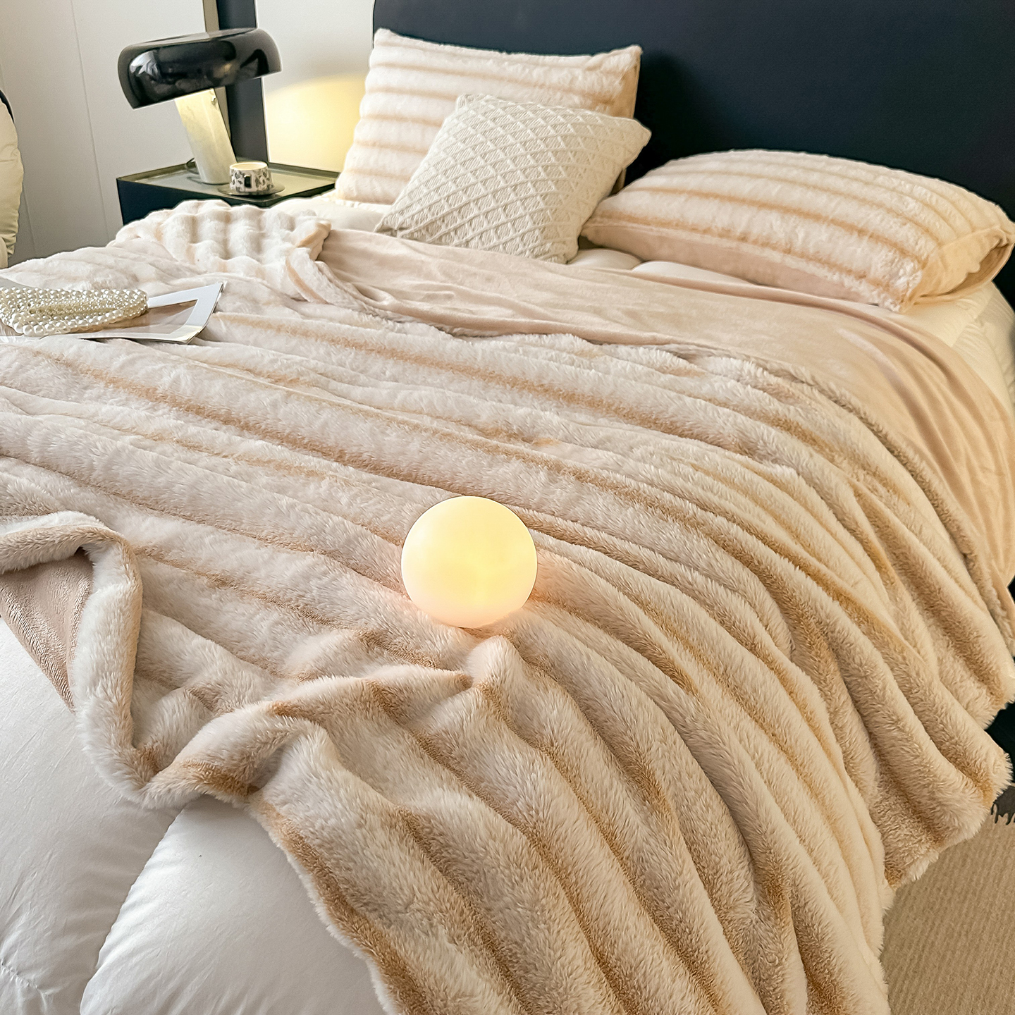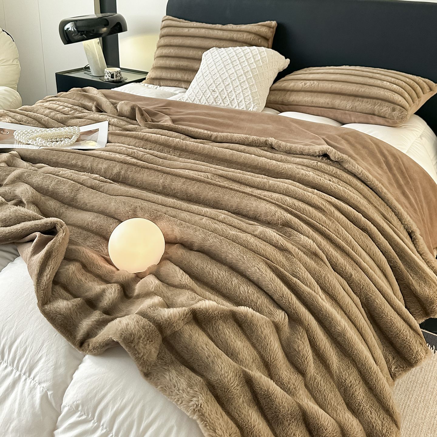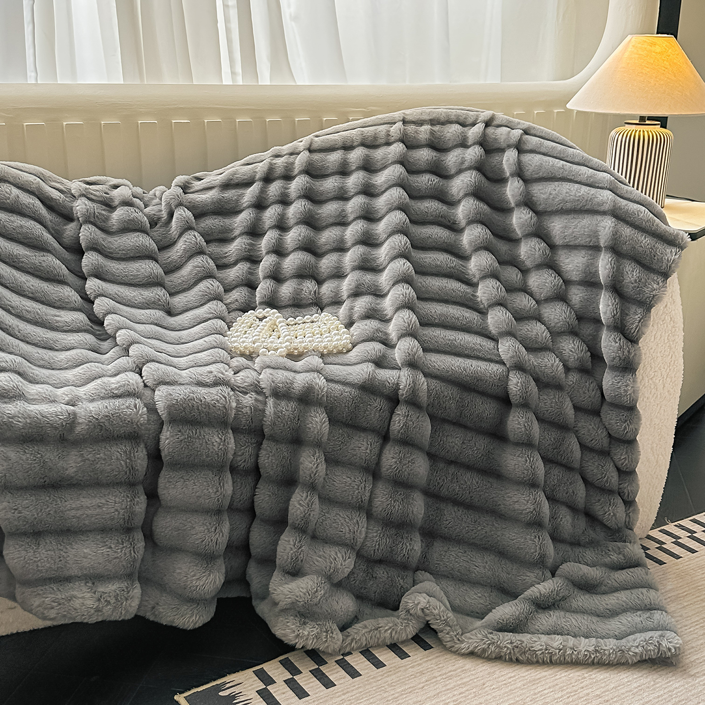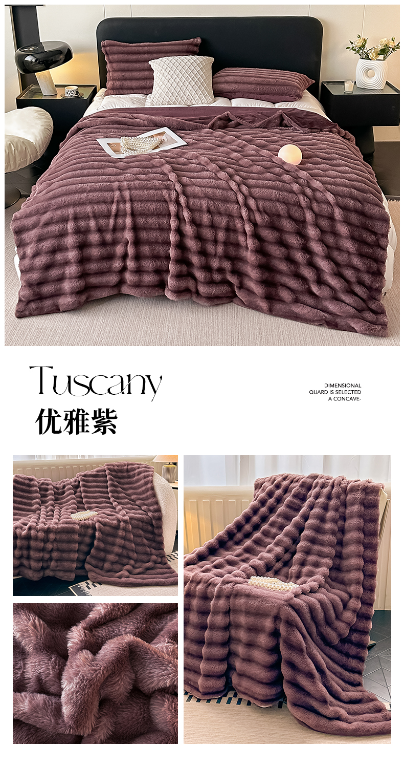 商品名称:梵克保罗 2025新款加厚美拉德抽条兔毛绒毛毯毛毯毯子 支持跨境外贸 紫色