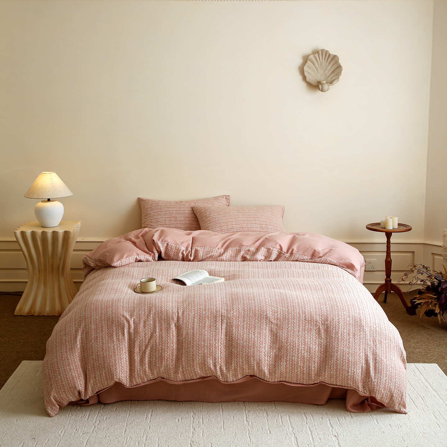 商品名称:梵克保罗 2025秋冬新款全棉色织大提花四件套 安迪-奶油粉
