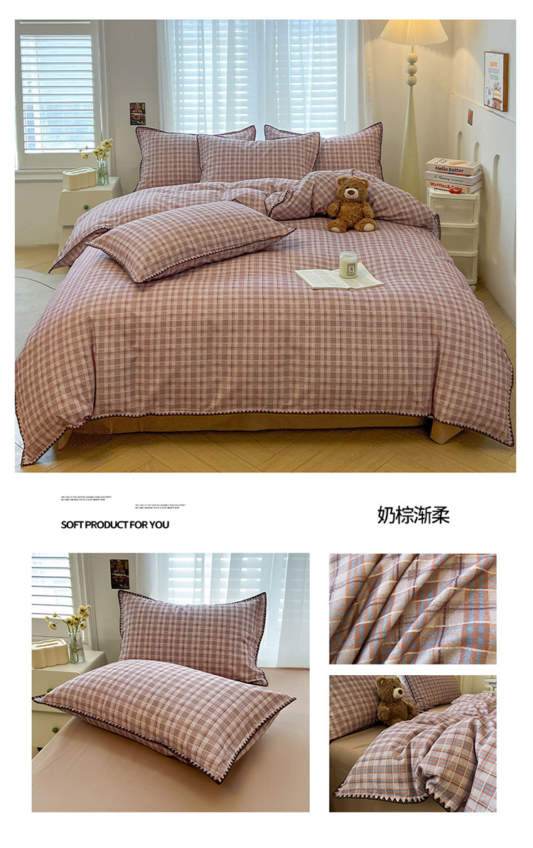 商品名称:良品汇馆 2025【全棉磨毛四件套格纹】英伦格纹复古风贝壳边套件 粉豆沙絮